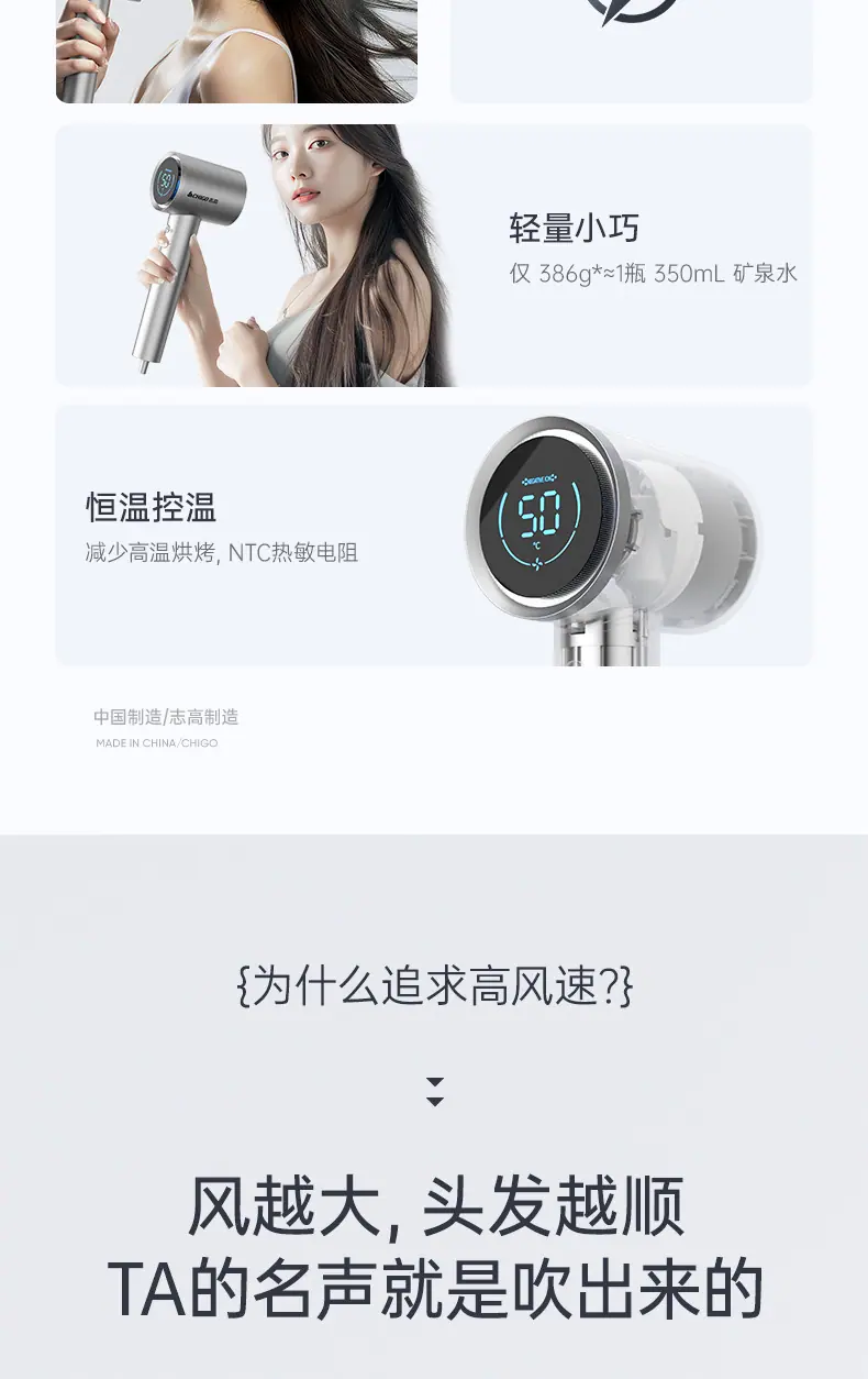 Secador de pelo eléctrico Chigo para el hogar, iones negativos, temperatura constante, cuidado del cabello, bajos, viento fuerte, alta velocidad.