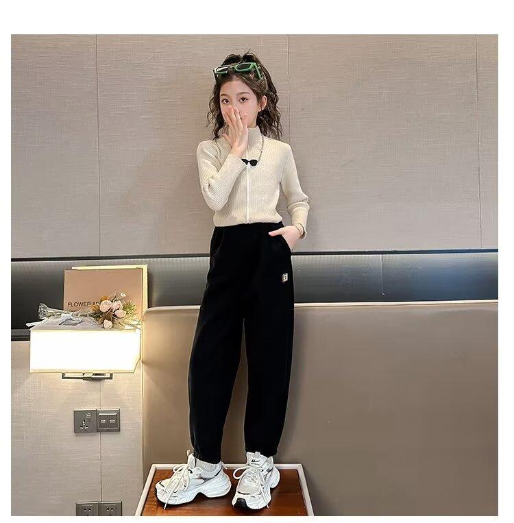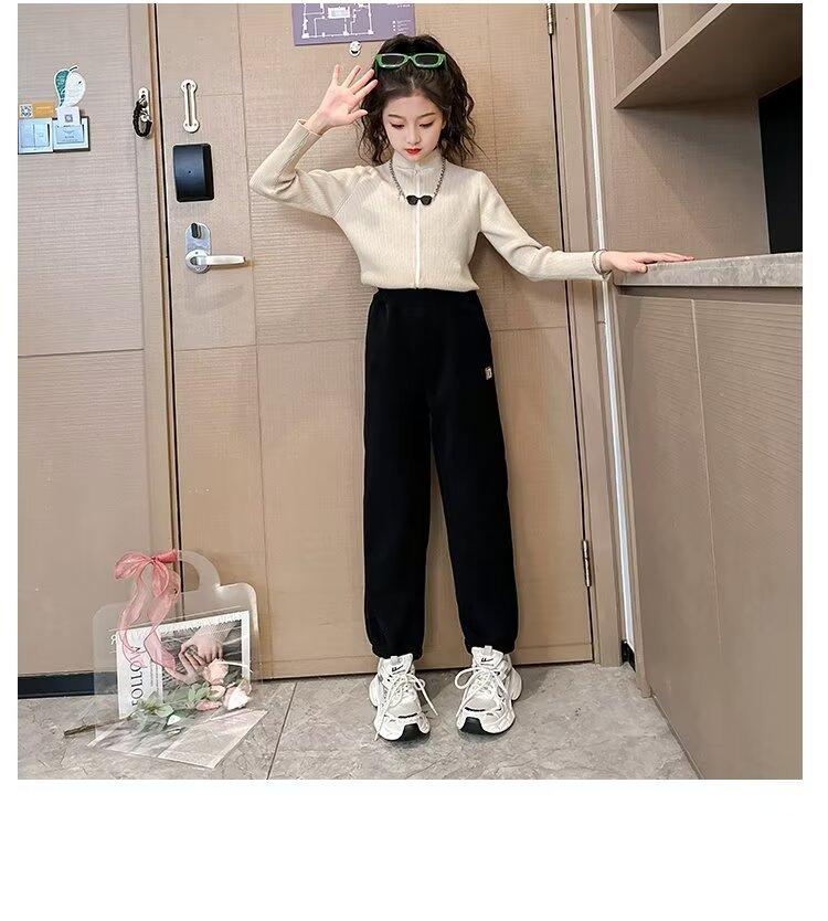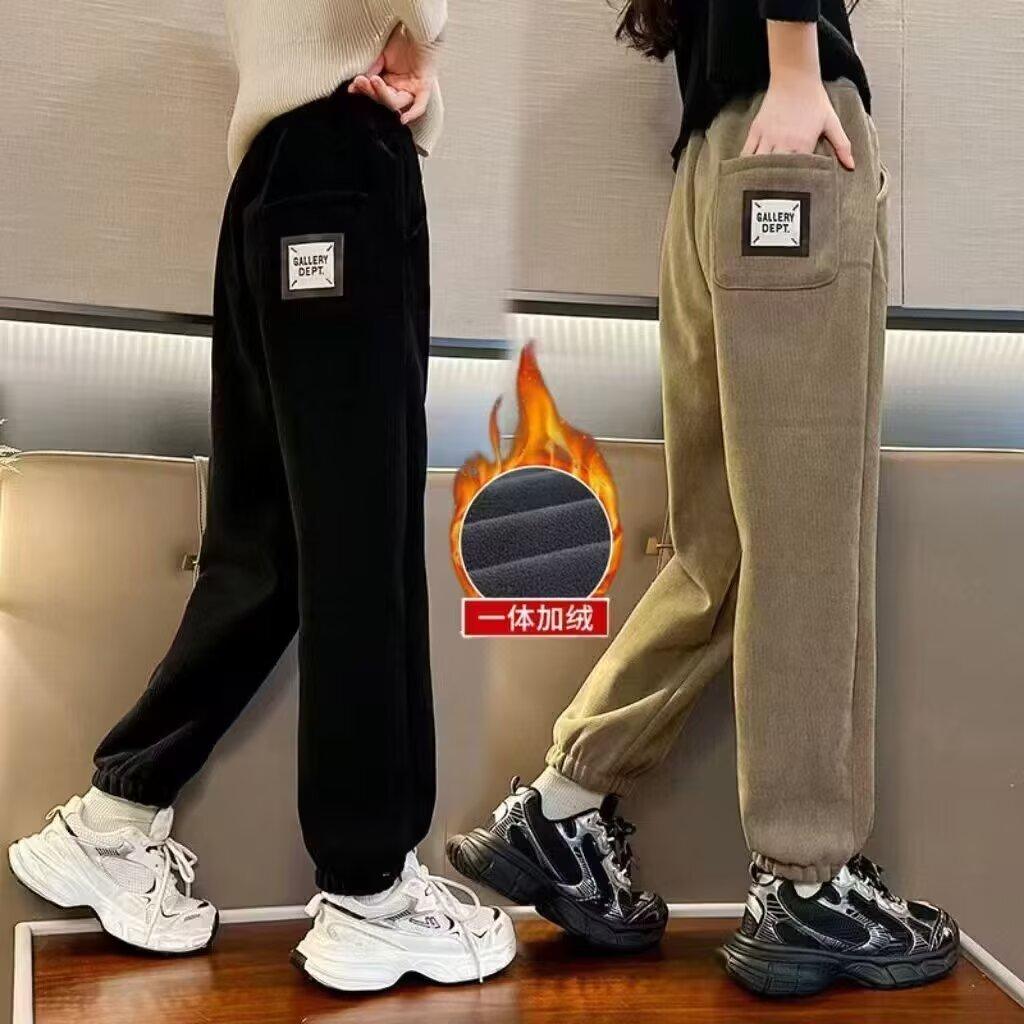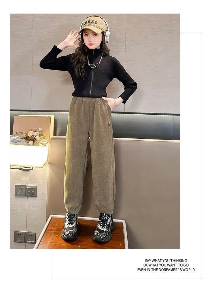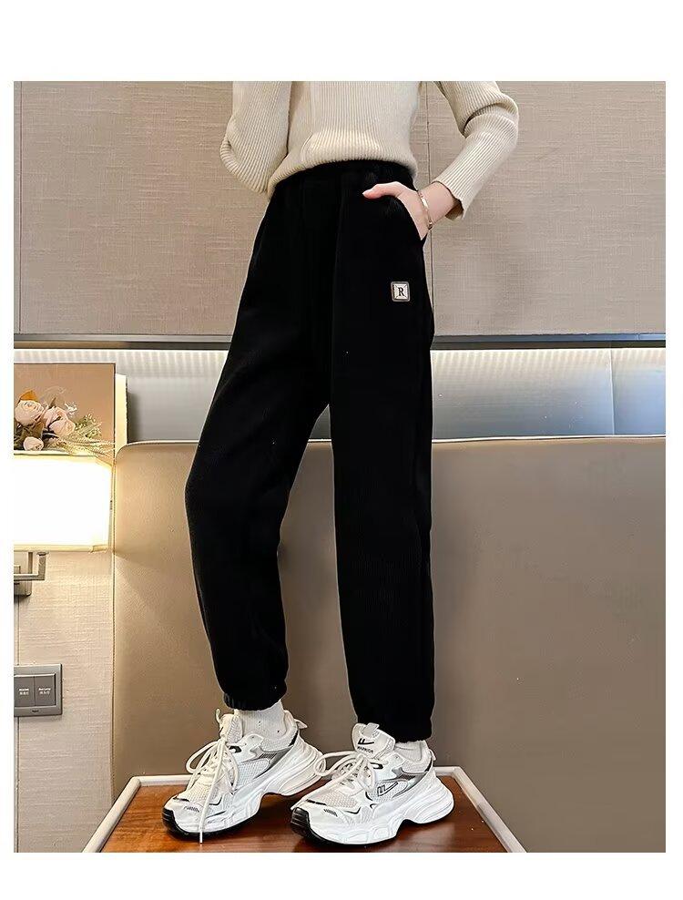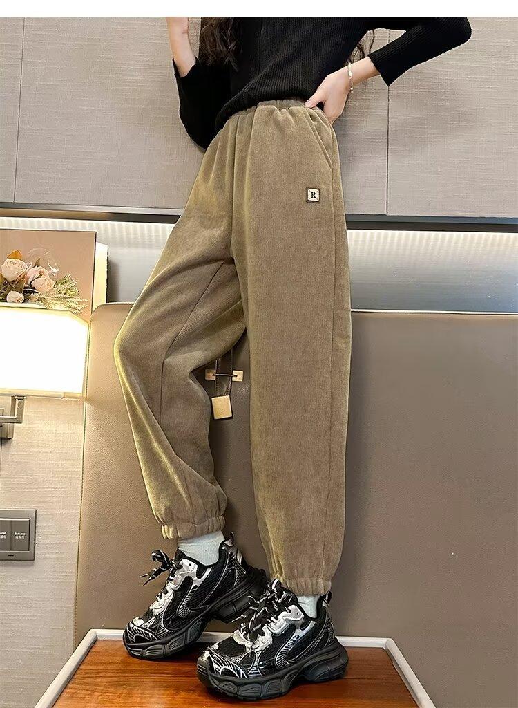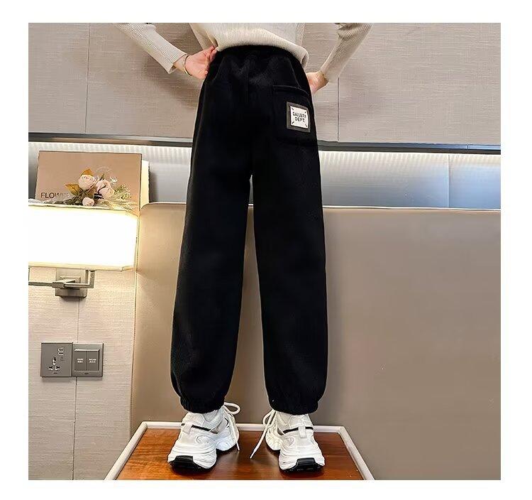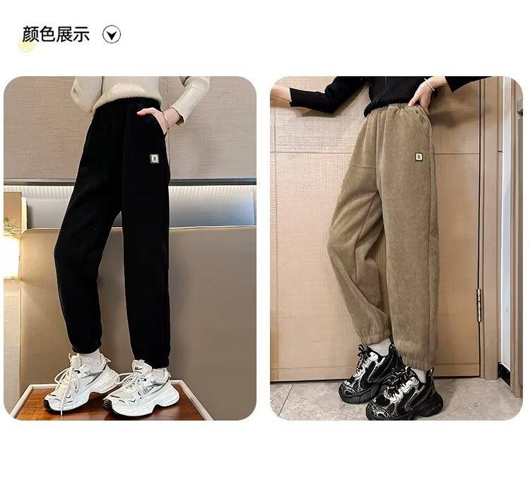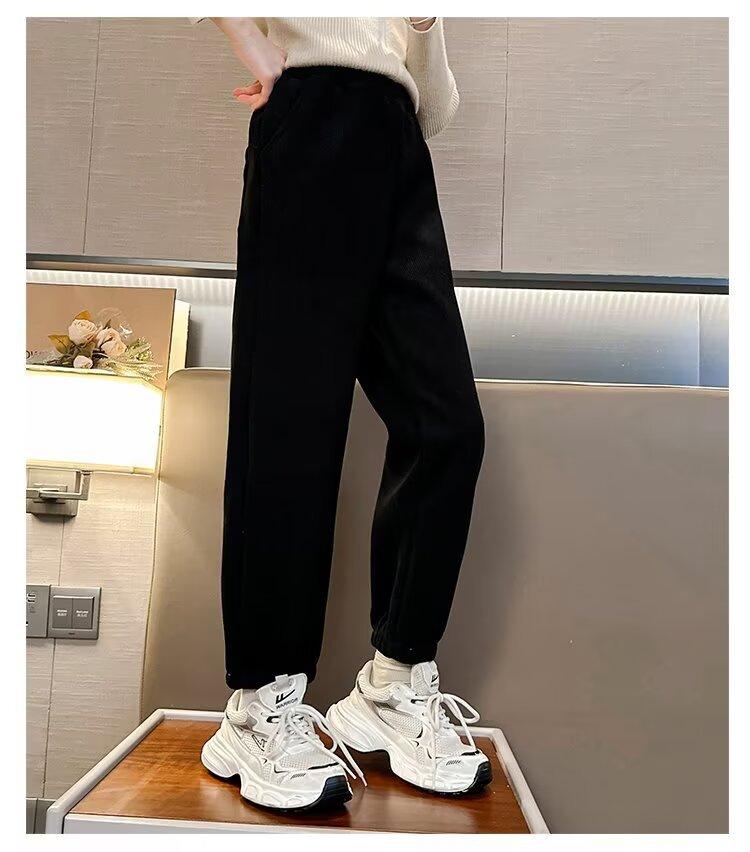 Pantalones de Terciopelo para Niñas Otoño e Invierno 2024 Nuevos Pantalones de Terciopelo Gruesos de una Pieza para Niños Grandes Pantalones de Algodón Cálidos de Invierno
