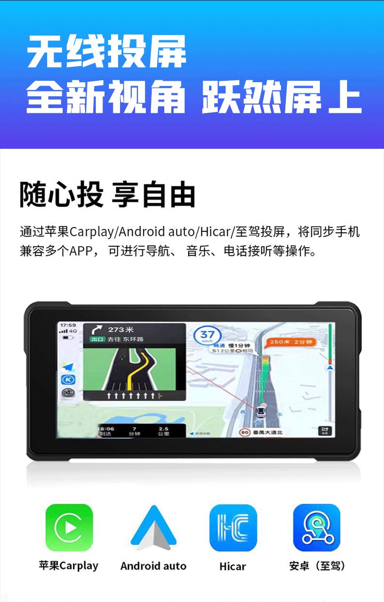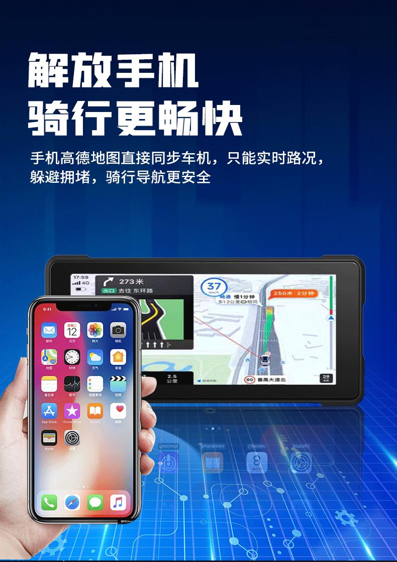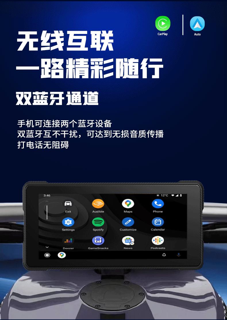 Motocicleta Transfronteriza Portátil Impermeable 6.86 pulgadas Inalámbrico Carplaygps Navegador Grabación Dual Reproductor de Coche
