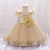 Nuevo vestido de actuación infantil transfronterizo, vestido de princesa con lentejuelas y mangas voladoras, vestido de un año, vestido de poni festivo, vestido con velo