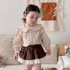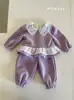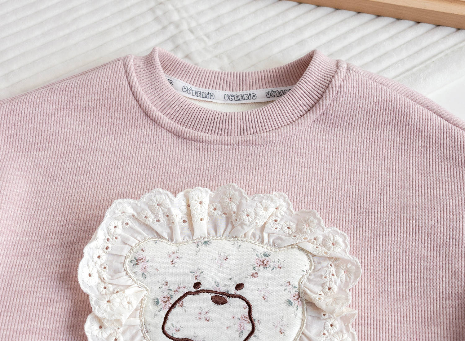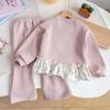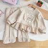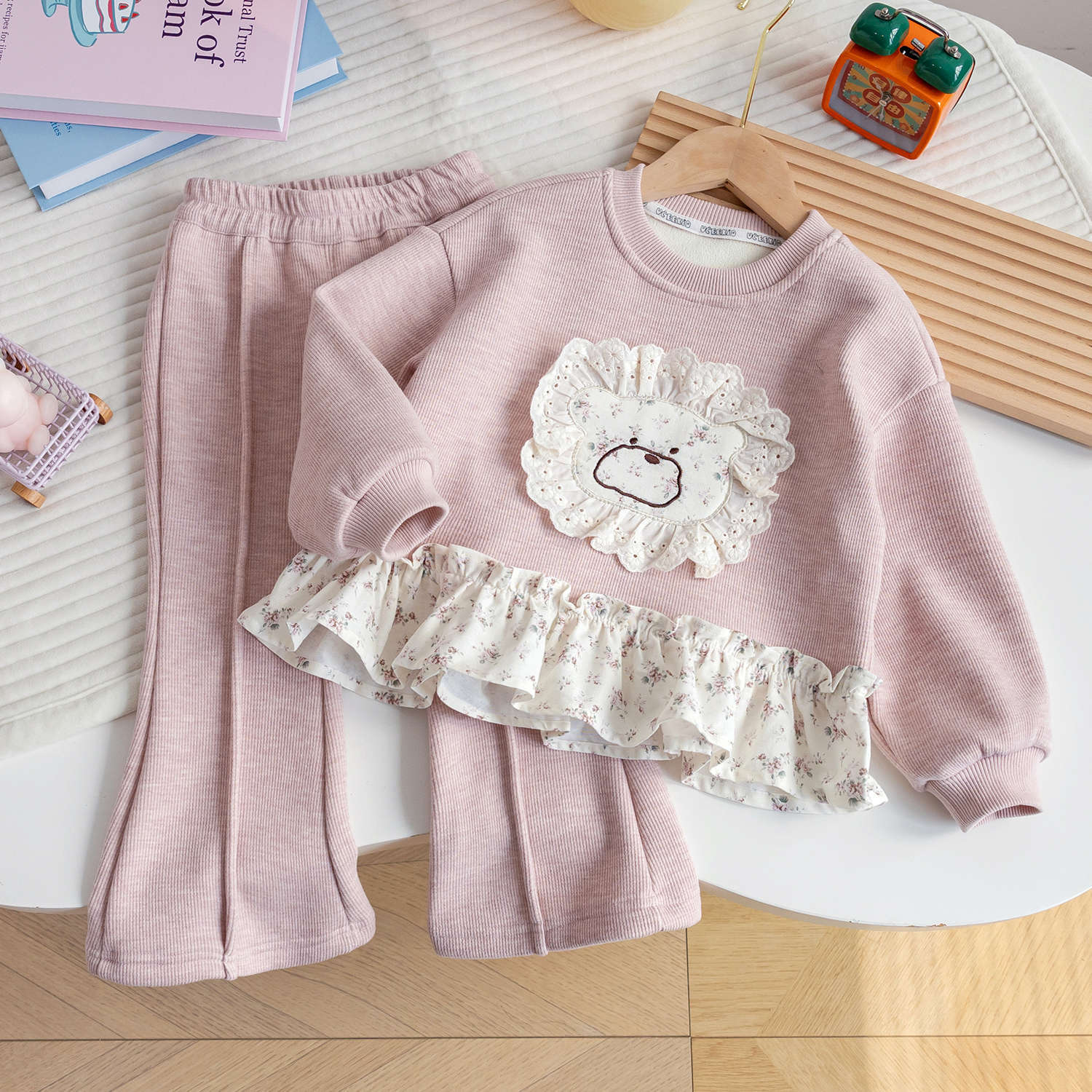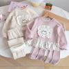 Conjunto de 24 prendas de invierno nuevas de encaje de dibujos animados para niña de estilo coreano, sudadera con forro polar y retazos, falda y pantalones acampanados