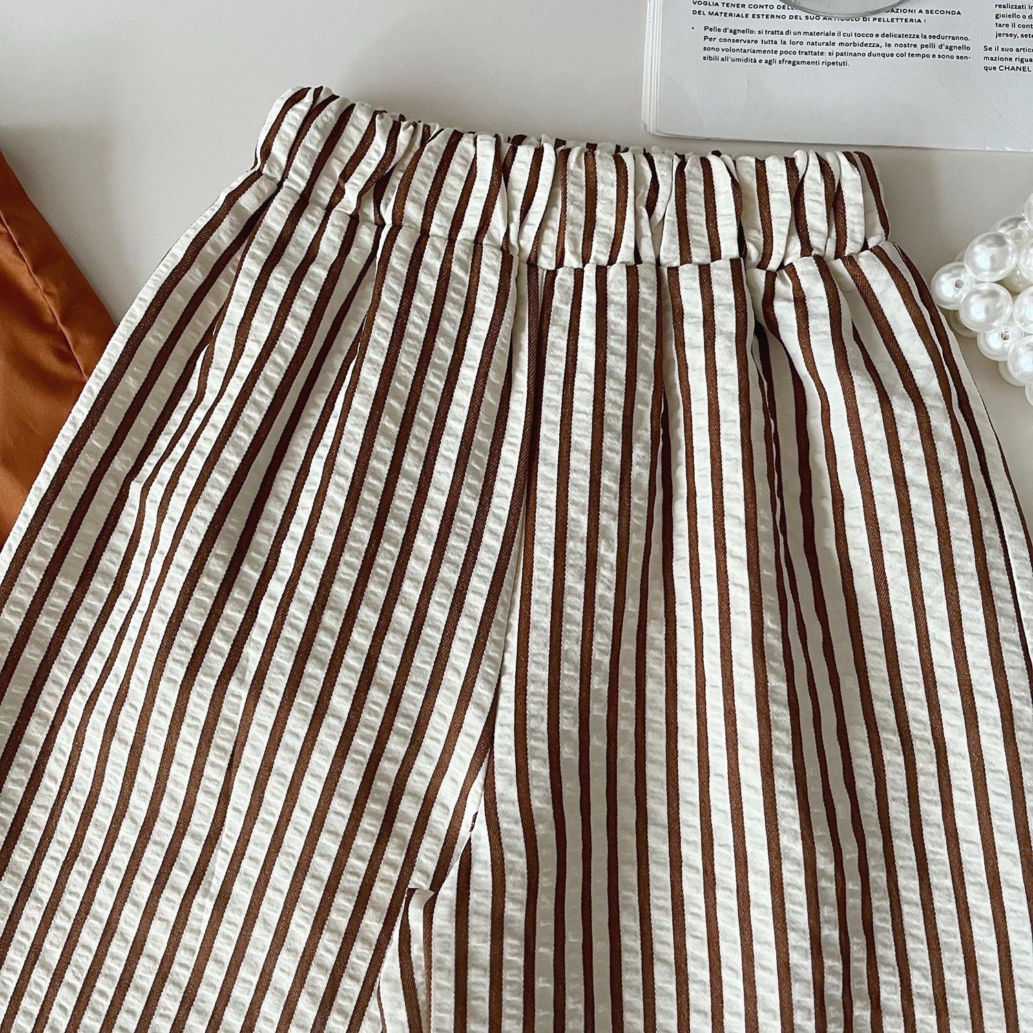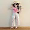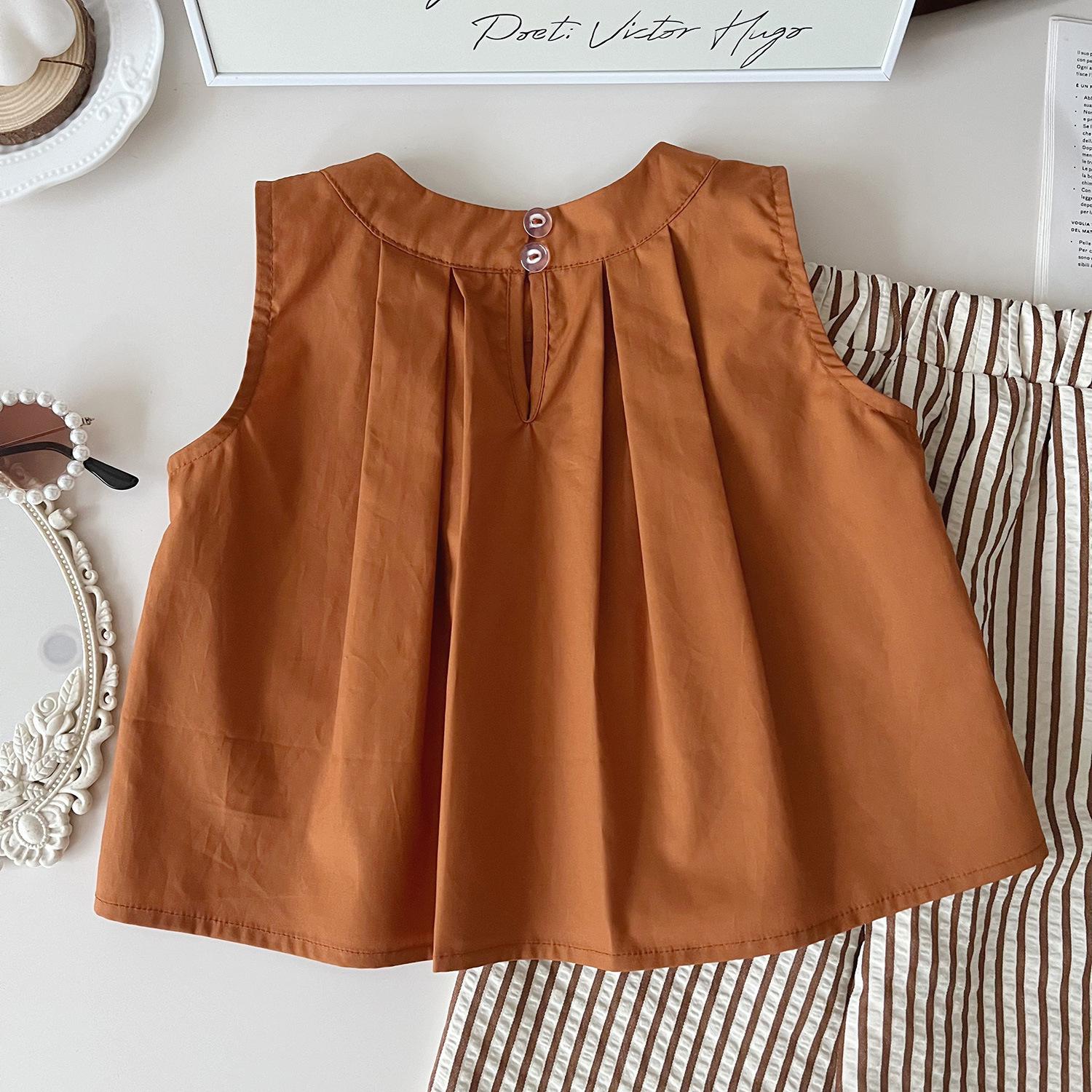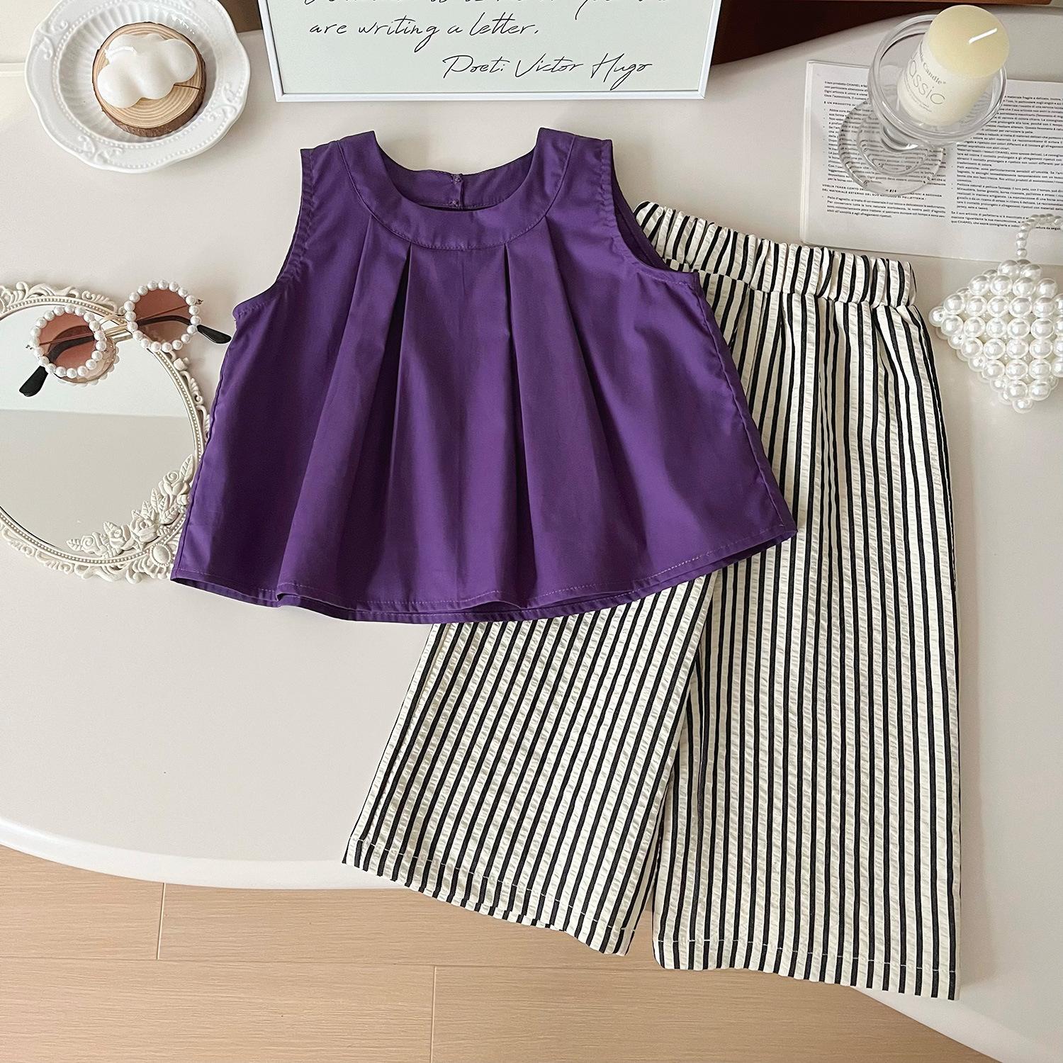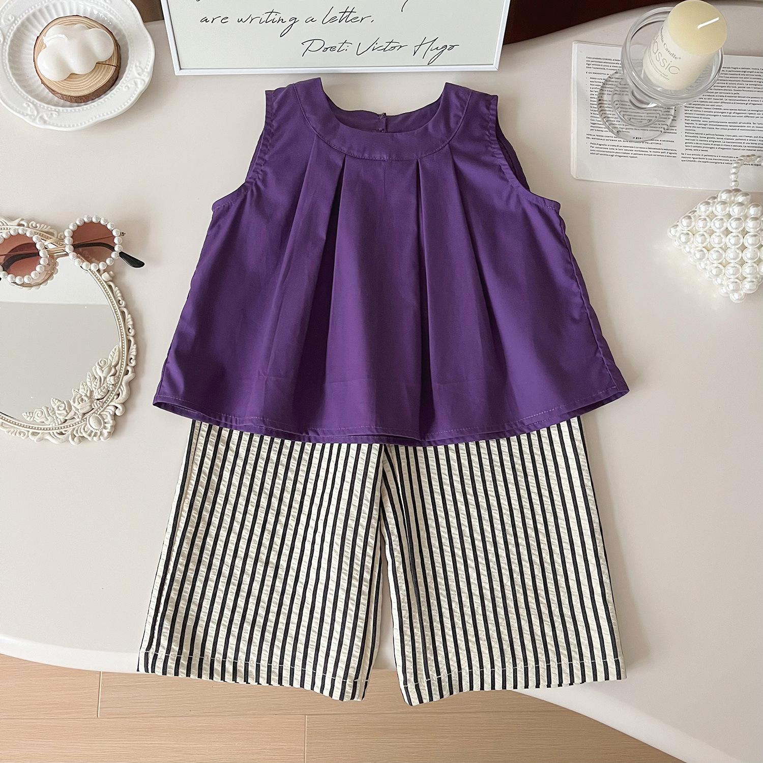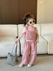 Traje de niña, novedad de verano 2024, estilo coreano, top sin mangas para niños, pantalones anchos a rayas, conjunto de dos piezas para el cabello