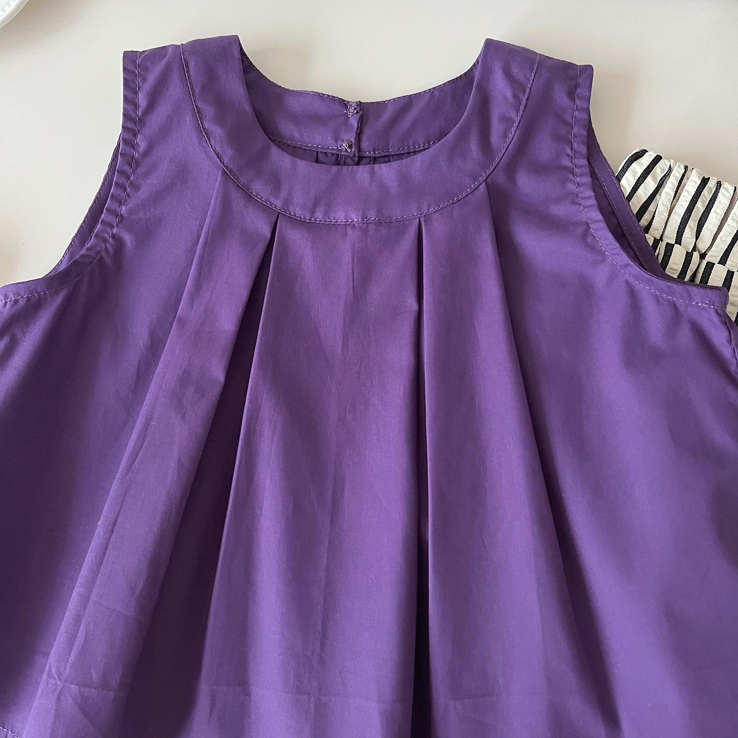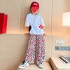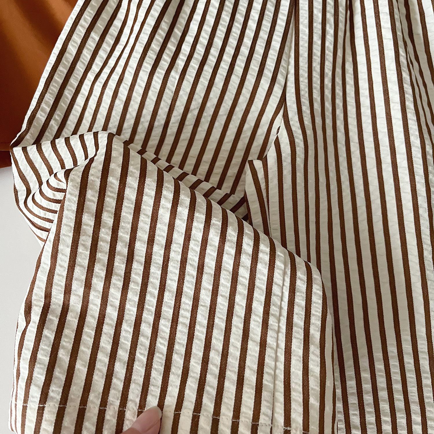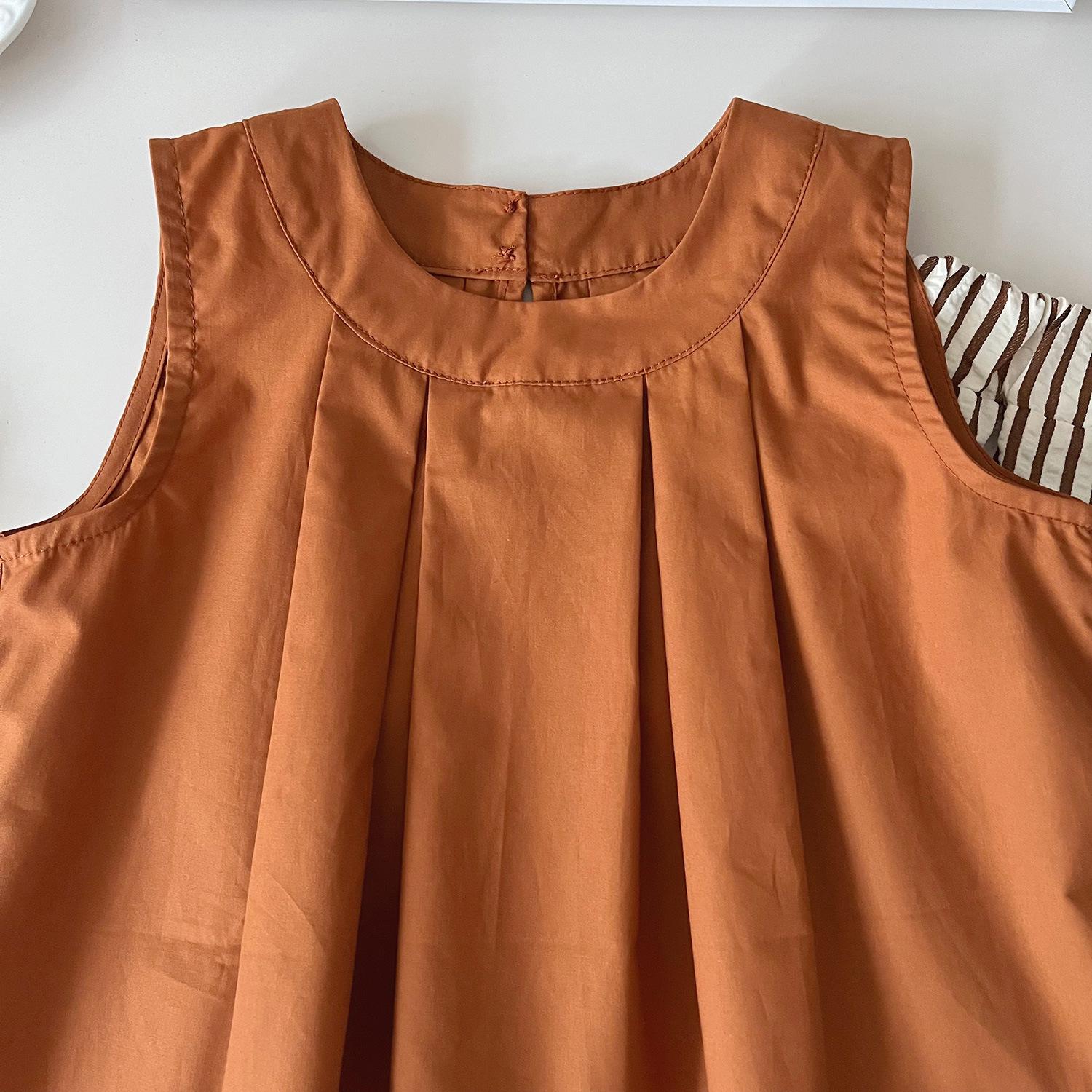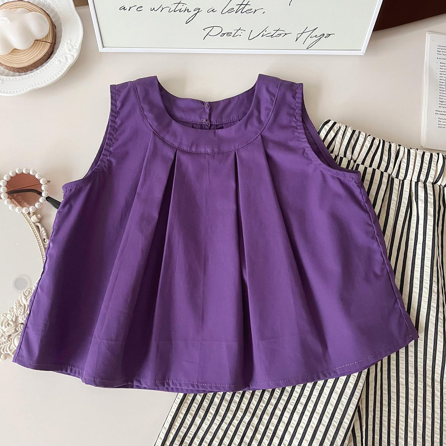 Traje de niña, novedad de verano 2024, estilo coreano, top sin mangas para niños, pantalones anchos a rayas, conjunto de dos piezas para el cabello
