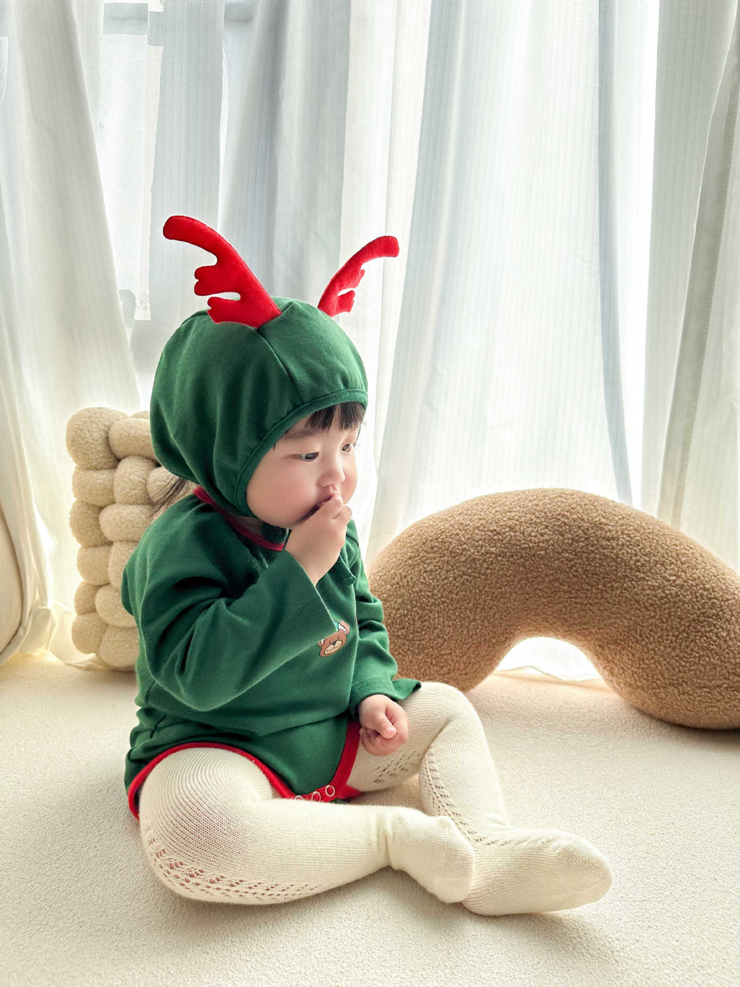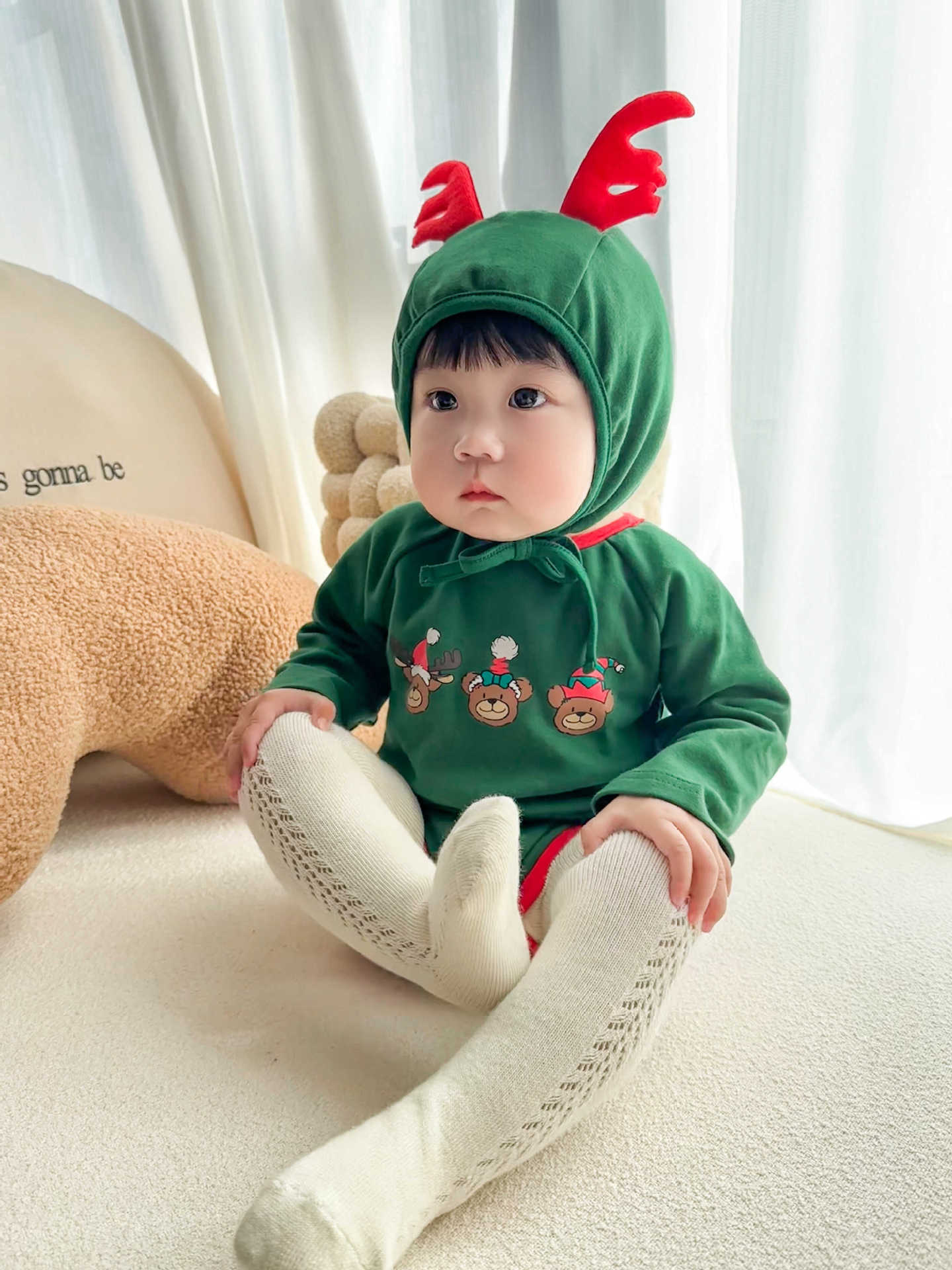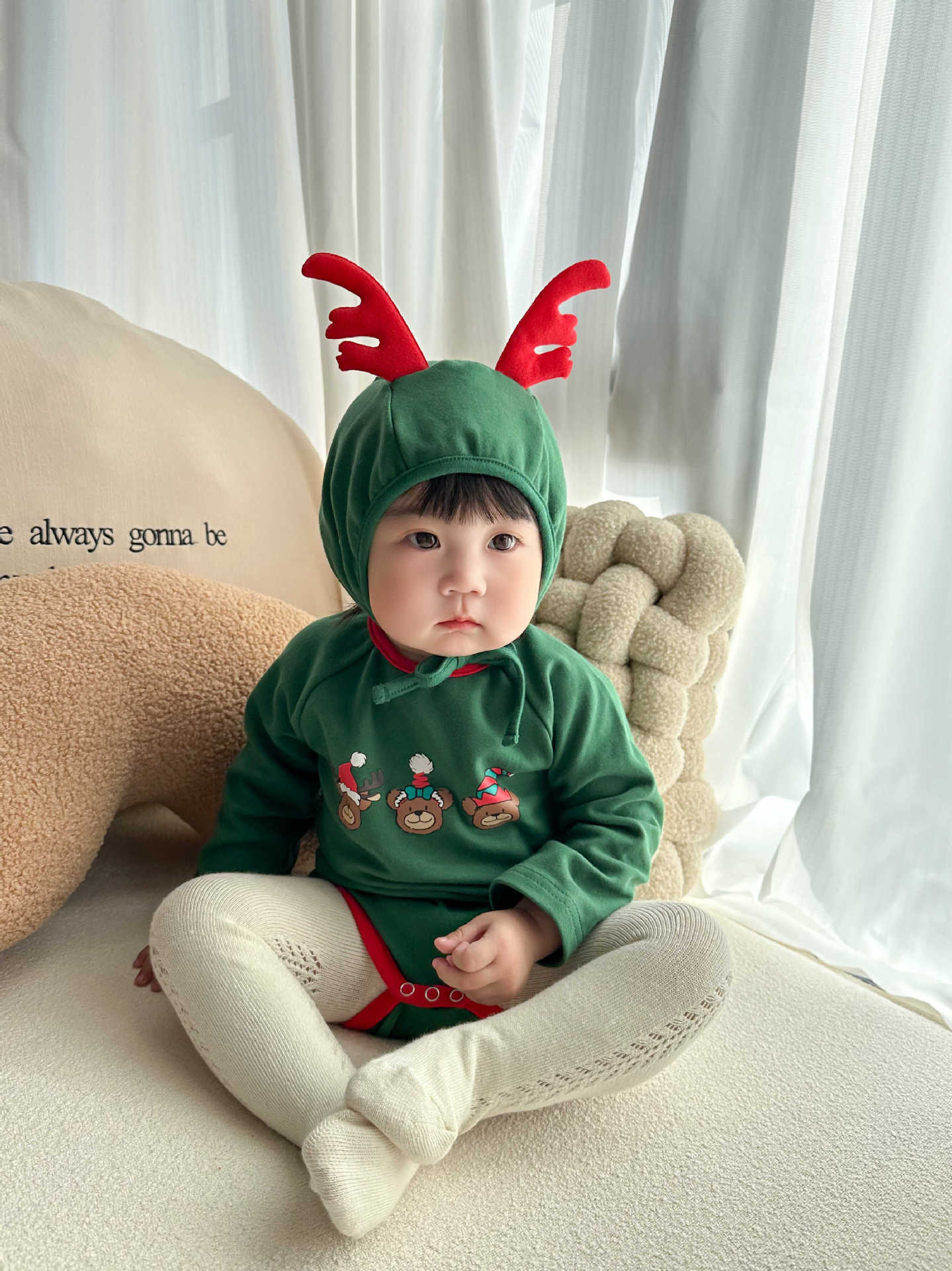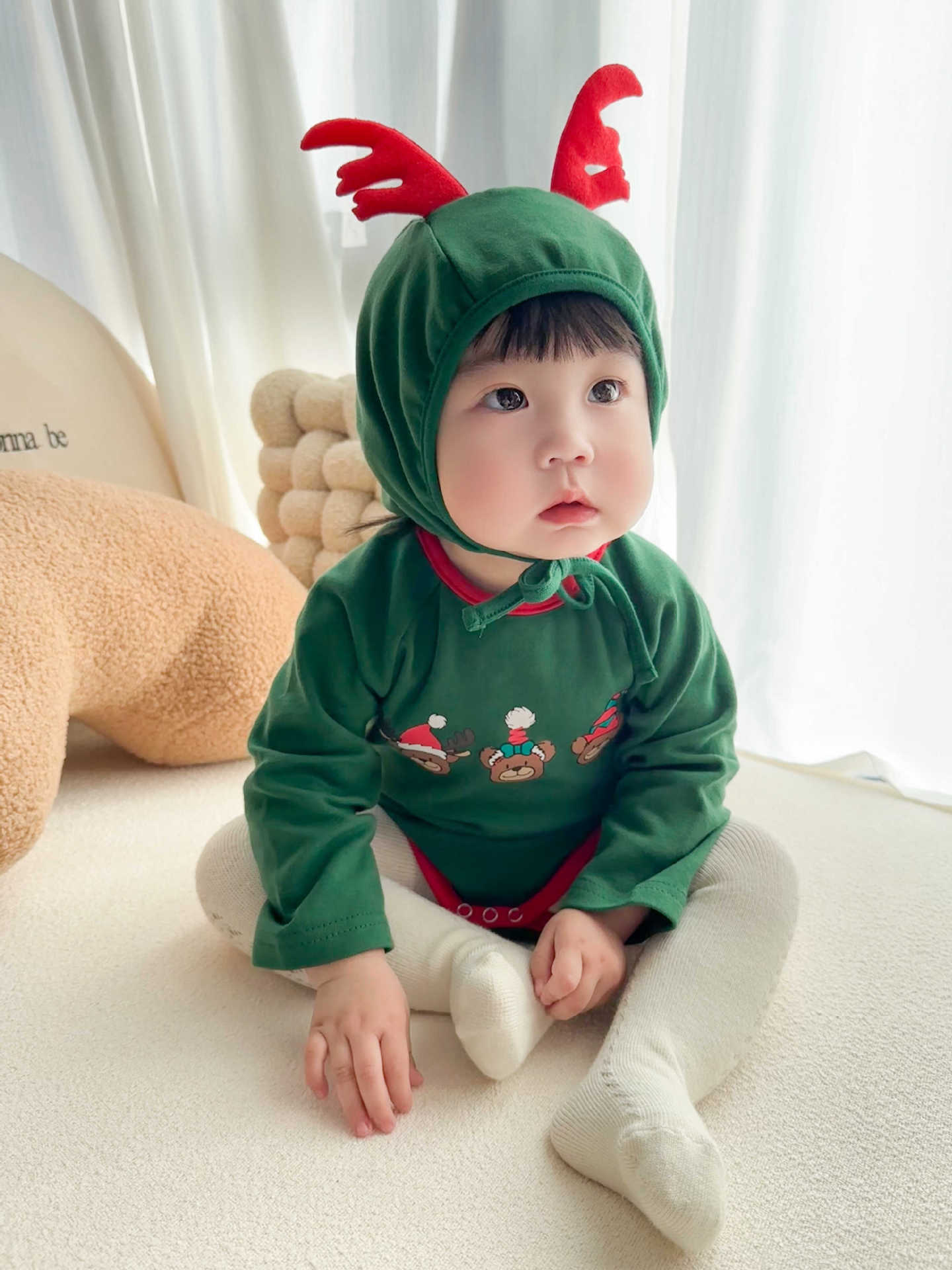 Mono de bebé de otoño e invierno, versión coreana, con estampado de cervatillo, color caqui, con temática navideña, abrigo de bebé.