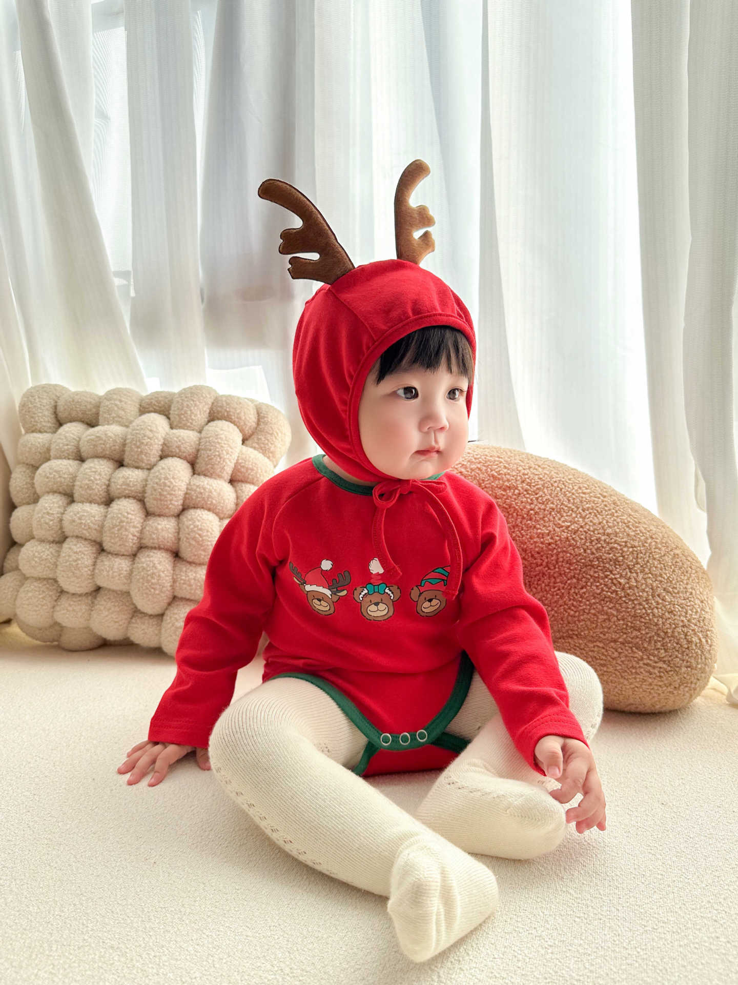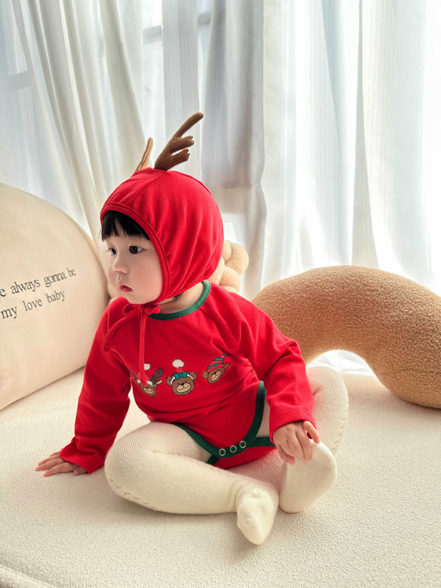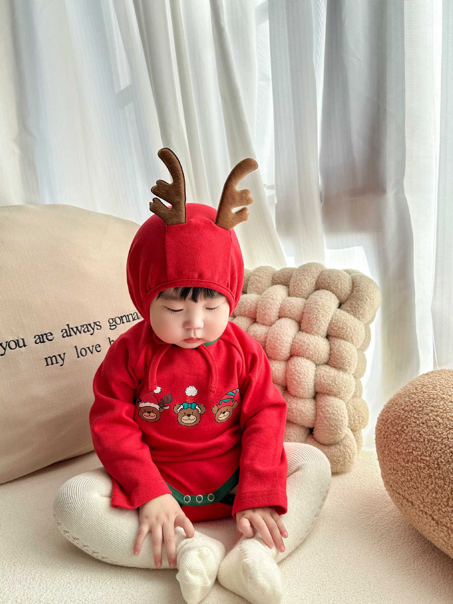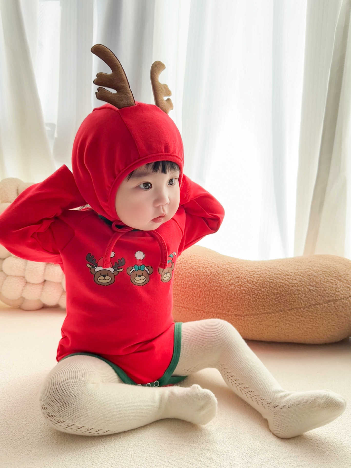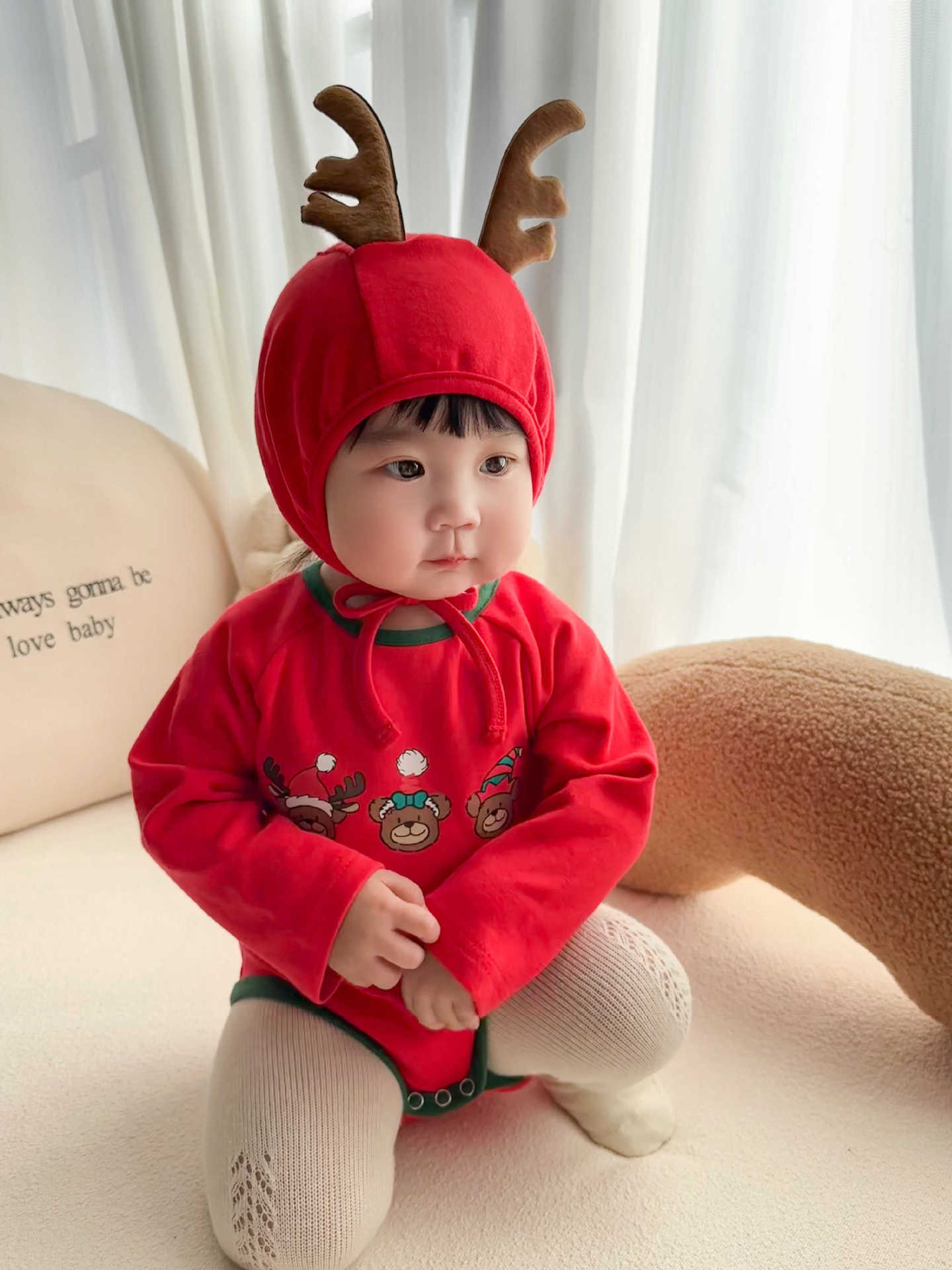 Mono de bebé de otoño e invierno, versión coreana, con estampado de cervatillo, color caqui, con temática navideña, abrigo de bebé.