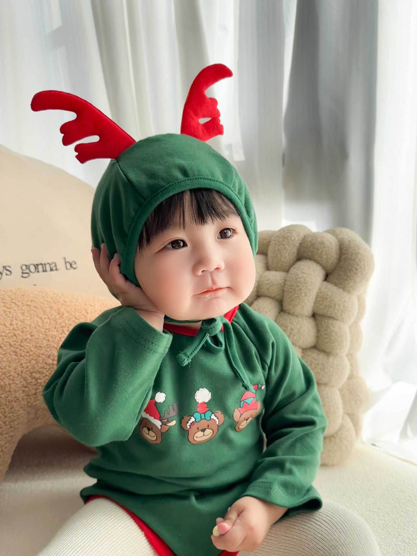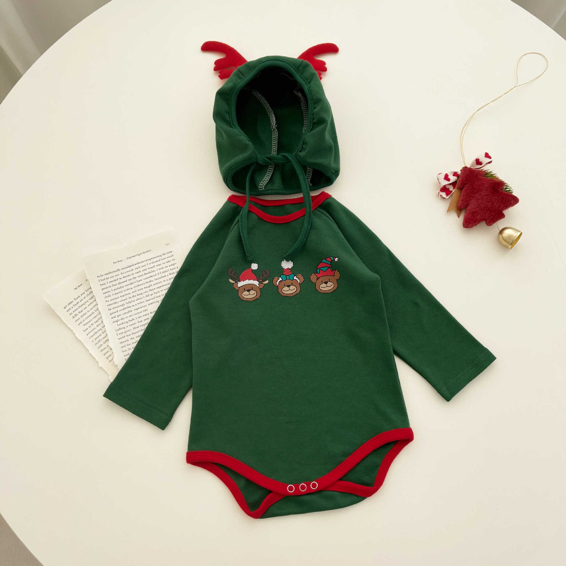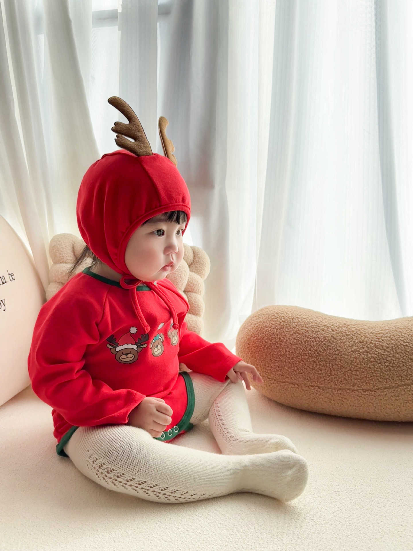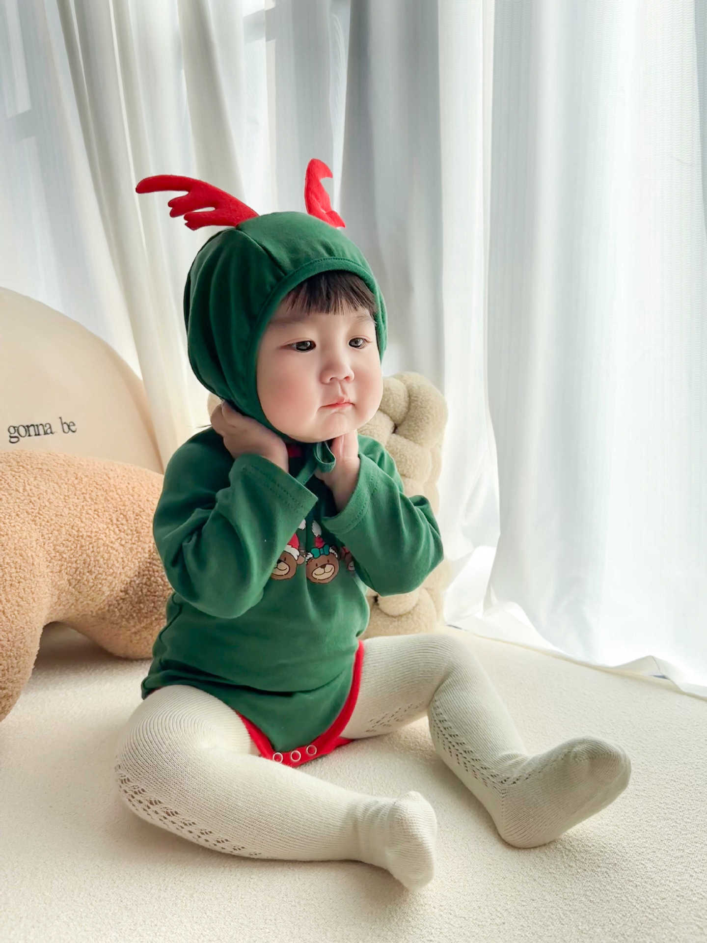 Mono de bebé de otoño e invierno, versión coreana, con estampado de cervatillo, color caqui, con temática navideña, abrigo de bebé.