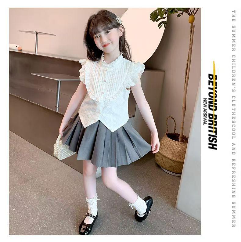 Vestido de Niña Vestido de Verano 2025 Nuevo Estilo Ropa de Niños Traje de Verano Falda Falda Plisada de Verano para Niñas