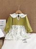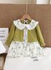 Vestido de niña primavera y otoño fino estilo occidental para niños, chaleco floral falso de dos piezas, falda de princesa coreana de manga larga para bebé