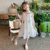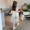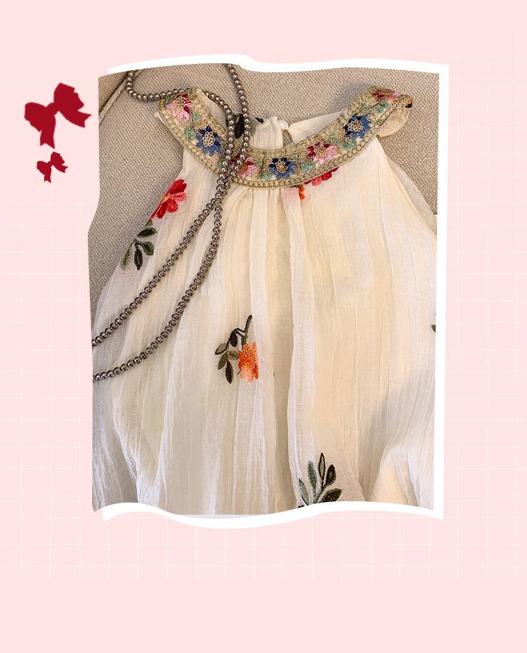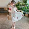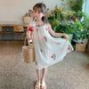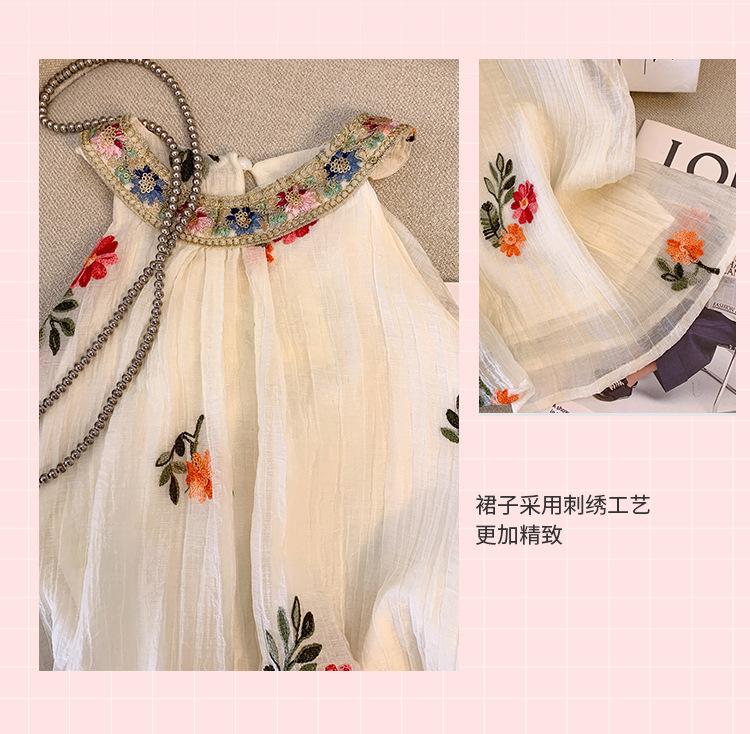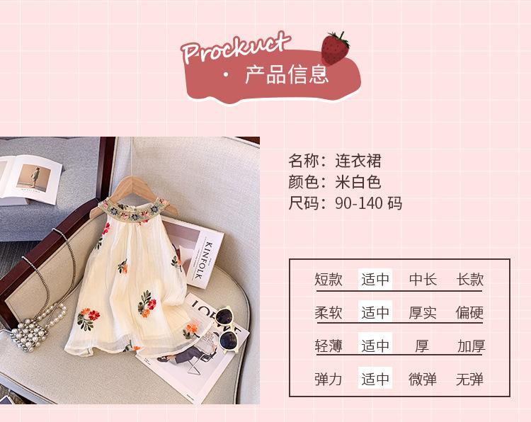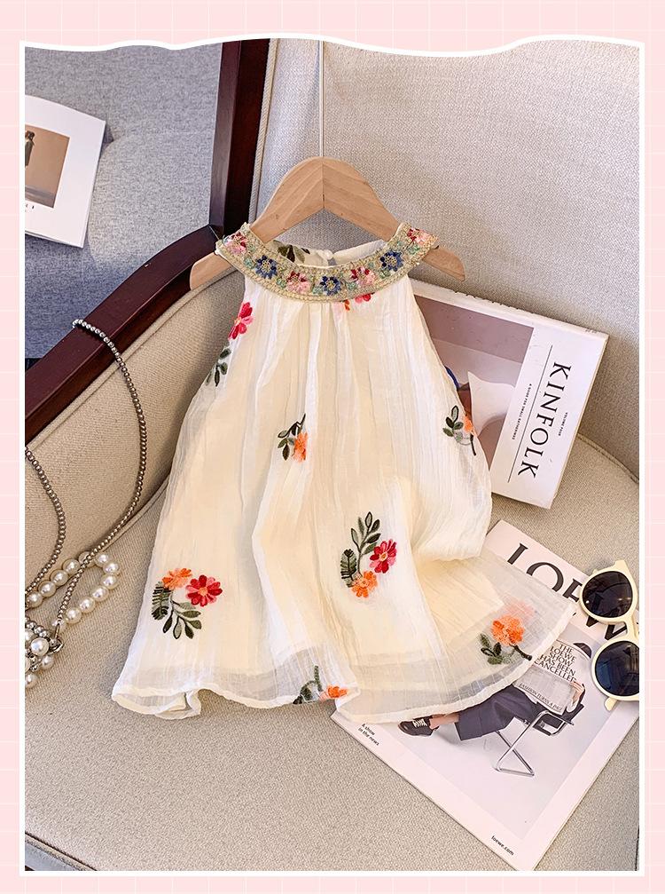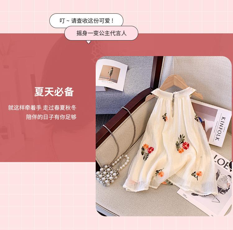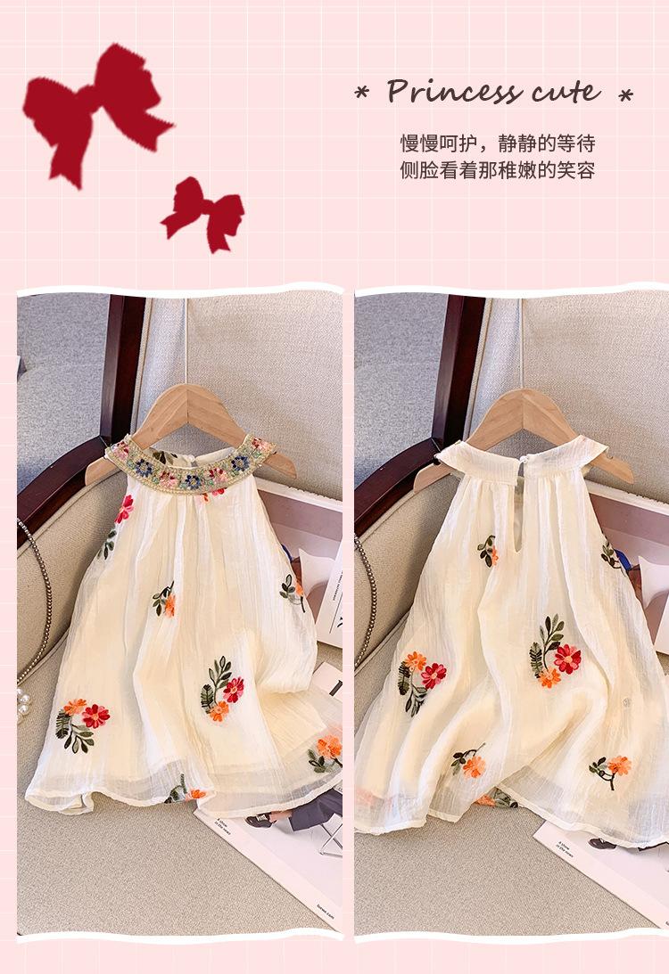 Vestido de verano para niñas, falda de línea A bordada con cuello colgante para niñas, falda de moda infantil, una generación de cabello