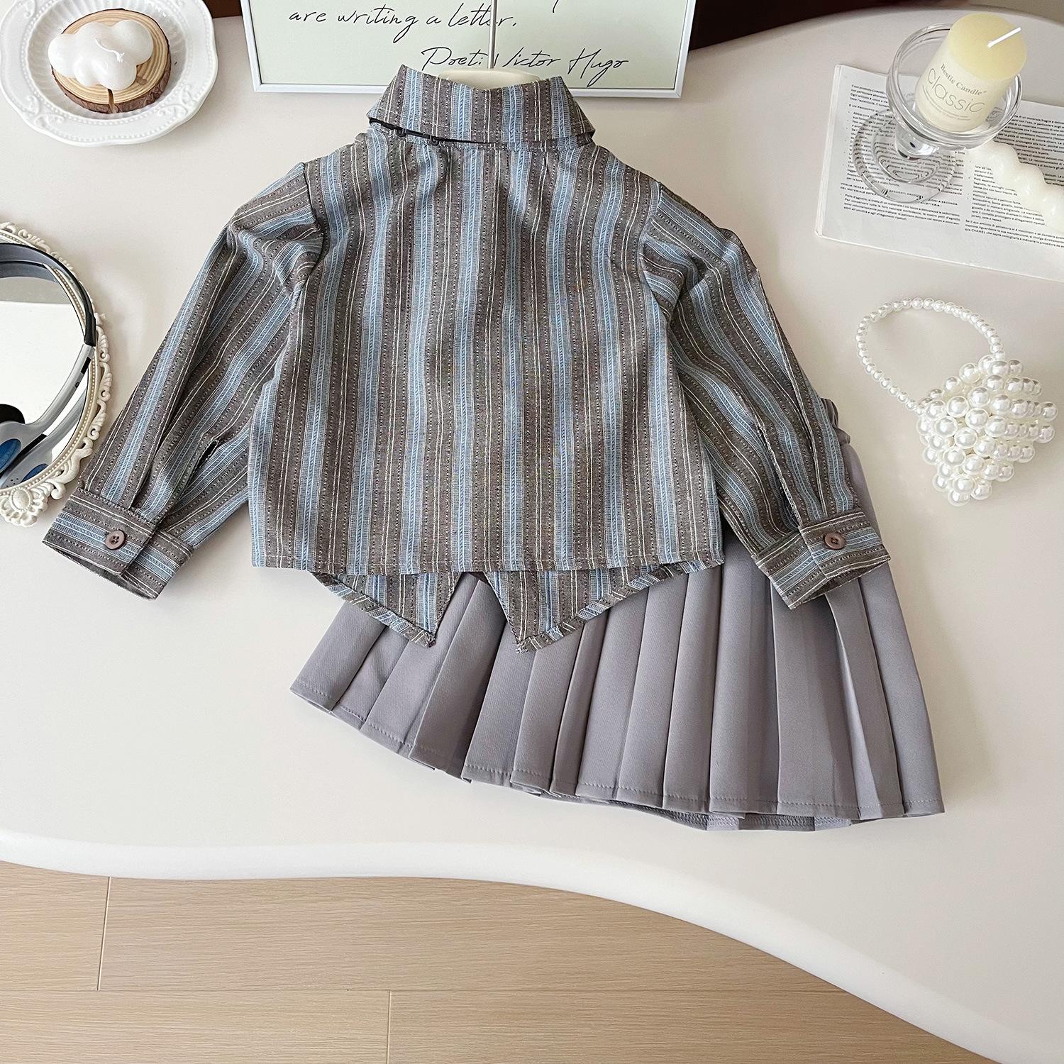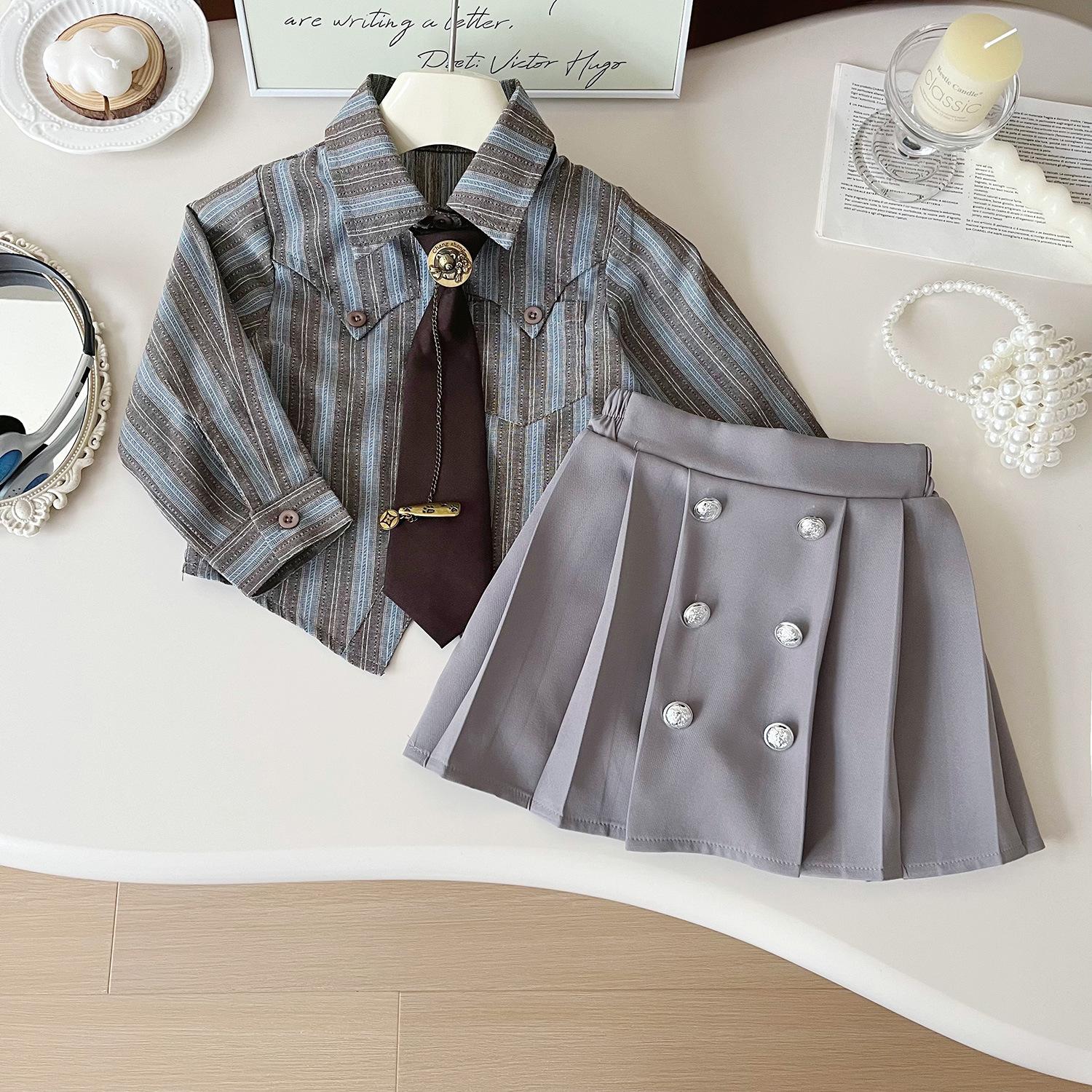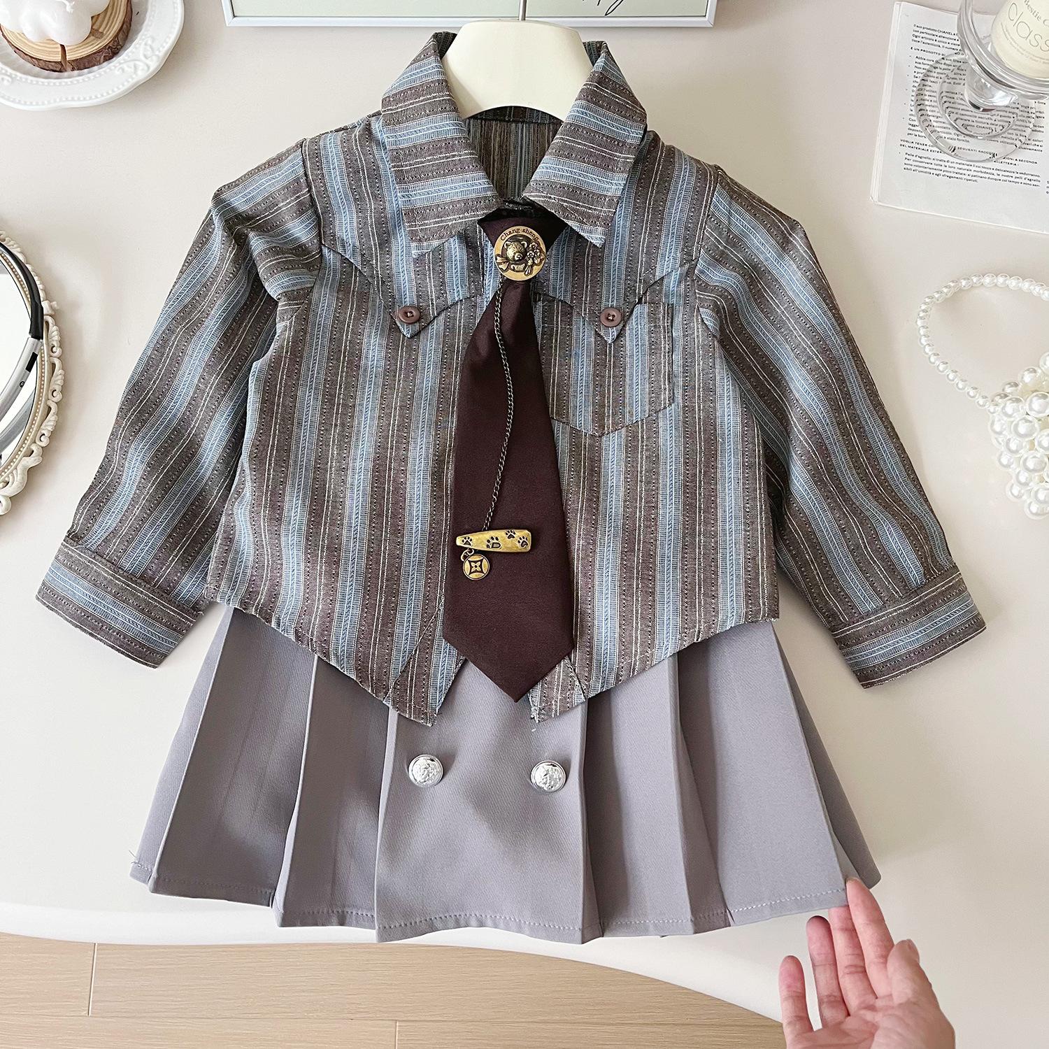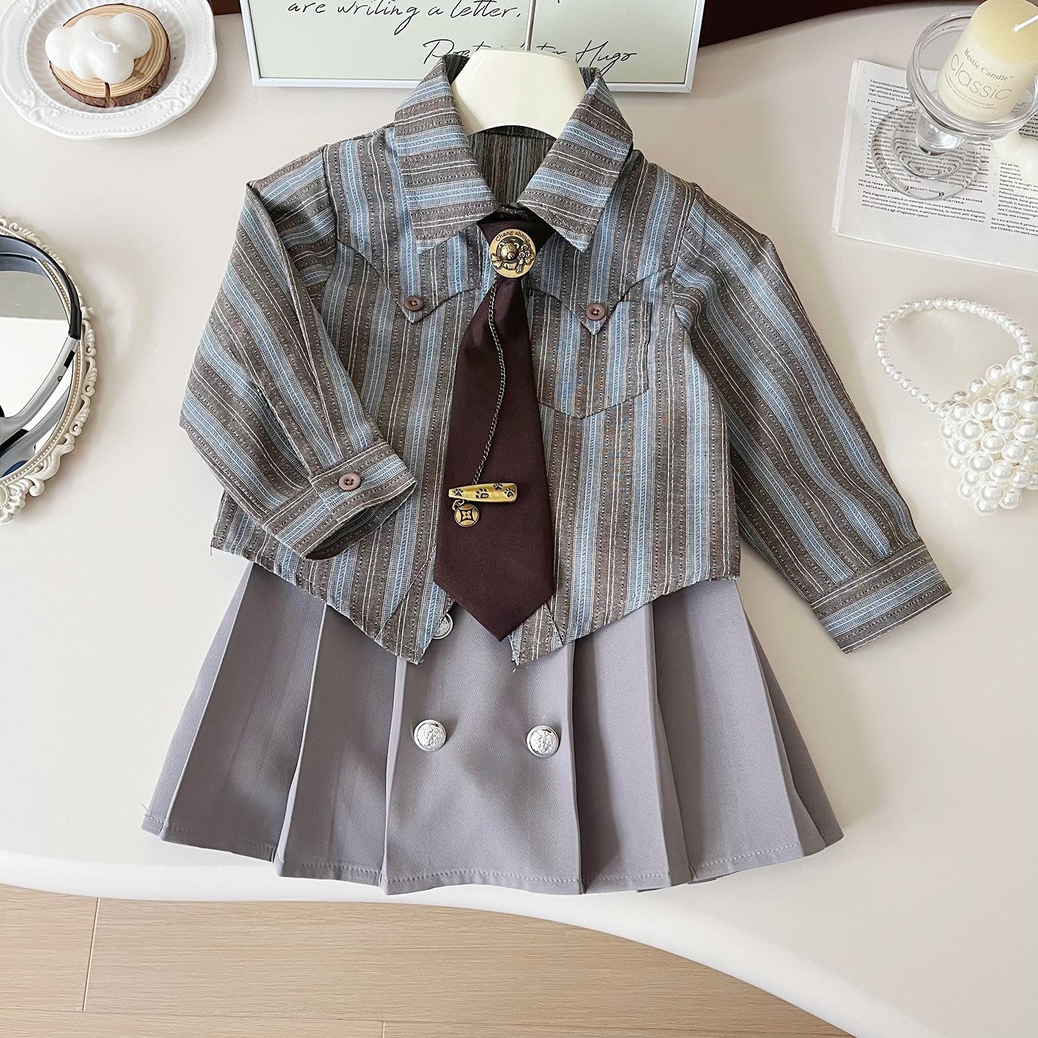 Traje de niña Otoño 2024 Nuevo estilo coreano Estilo universitario Camisa Falda traje Moda bebé Conjunto de dos piezas