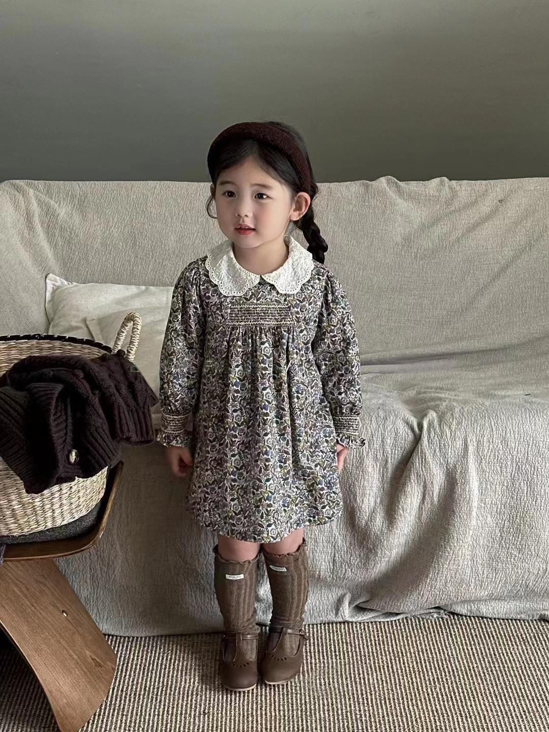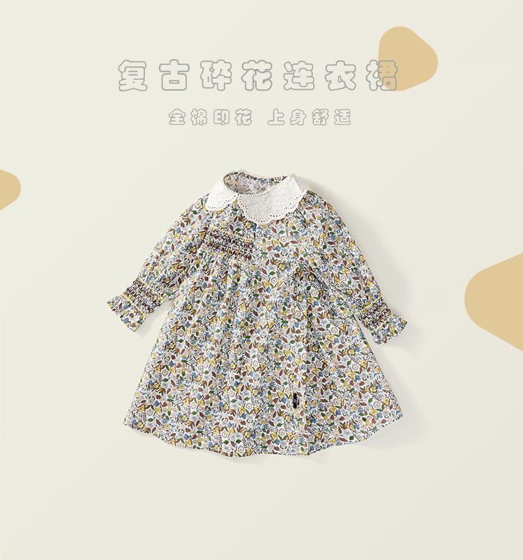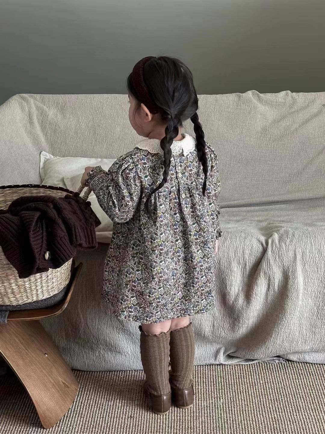 MDD - Ropa infantil para niñas, vestido floral, otoño 2024, nuevo estilo retro coreano para niñas, falda de manga larga
