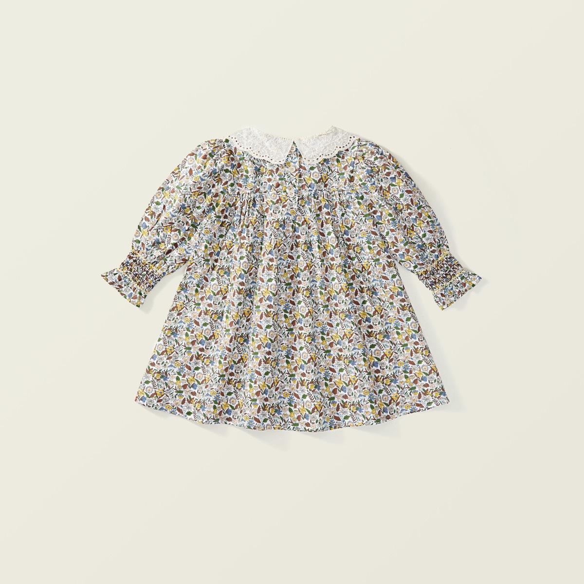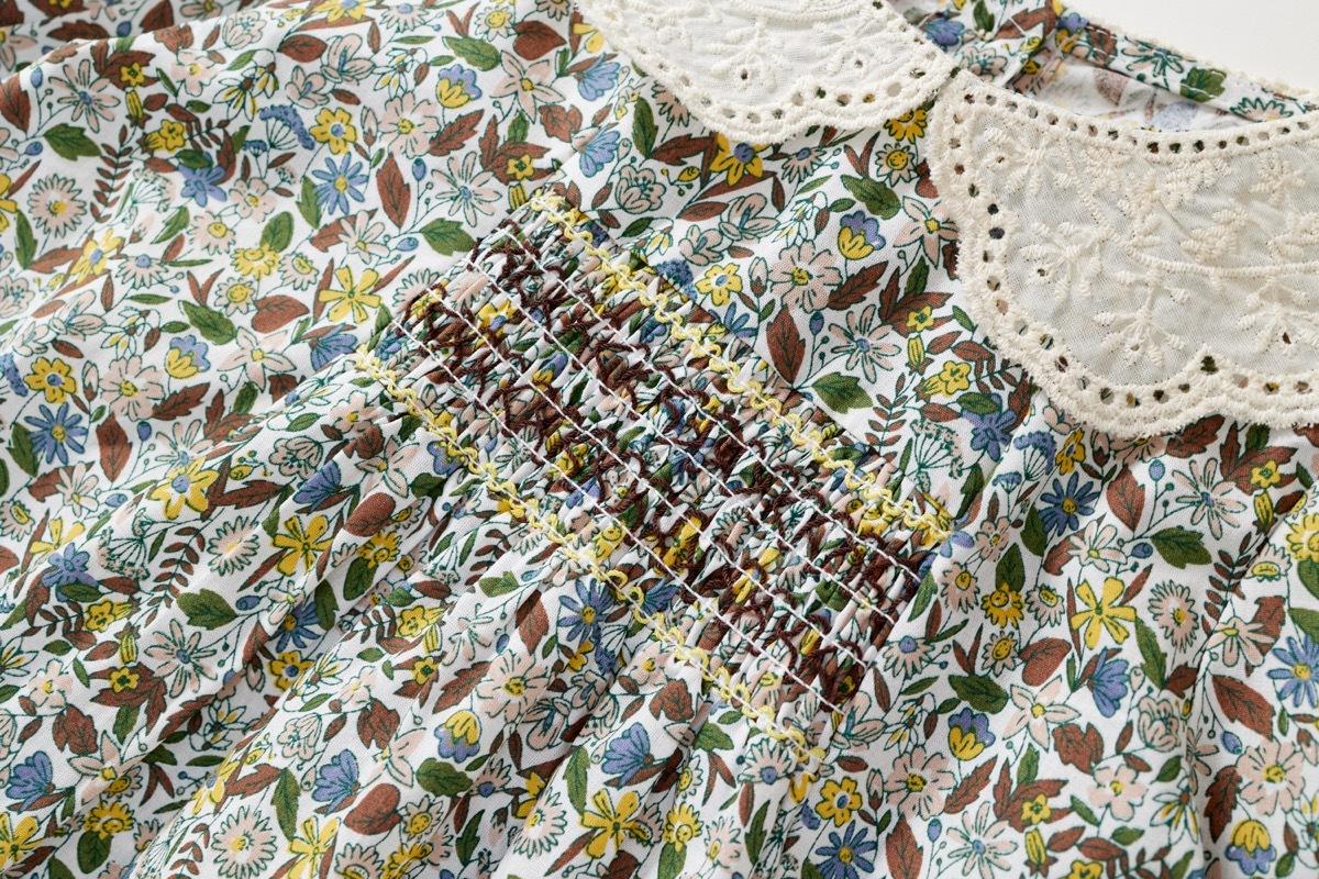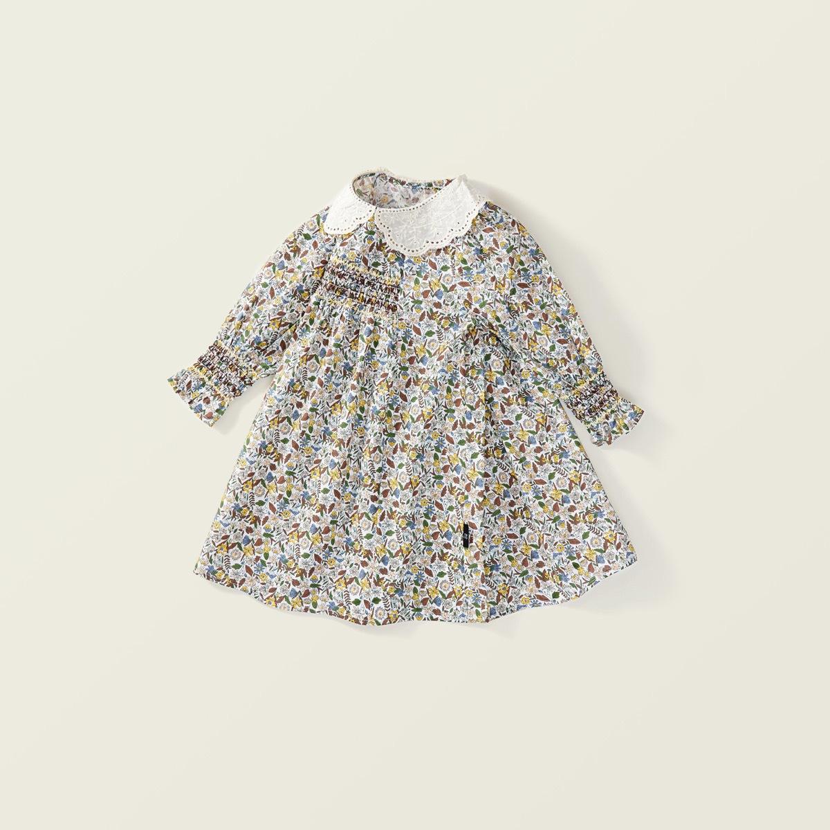 MDD - Ropa infantil para niñas, vestido floral, otoño 2024, nuevo estilo retro coreano para niñas, falda de manga larga