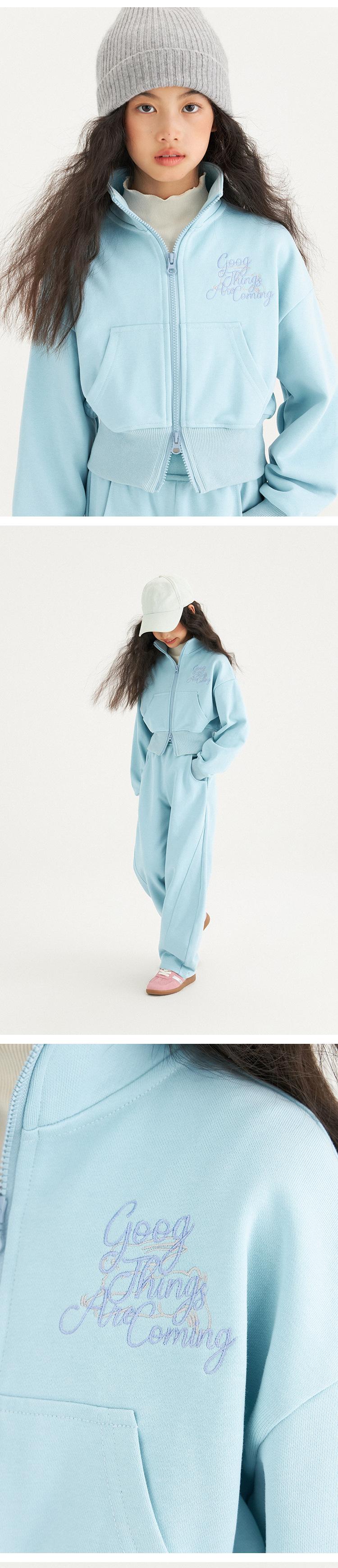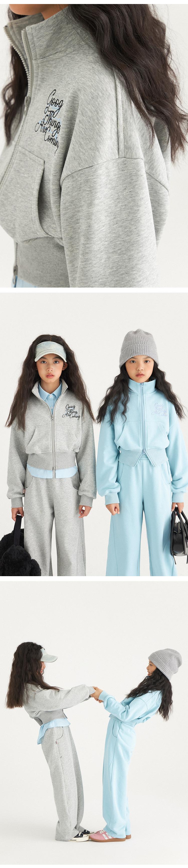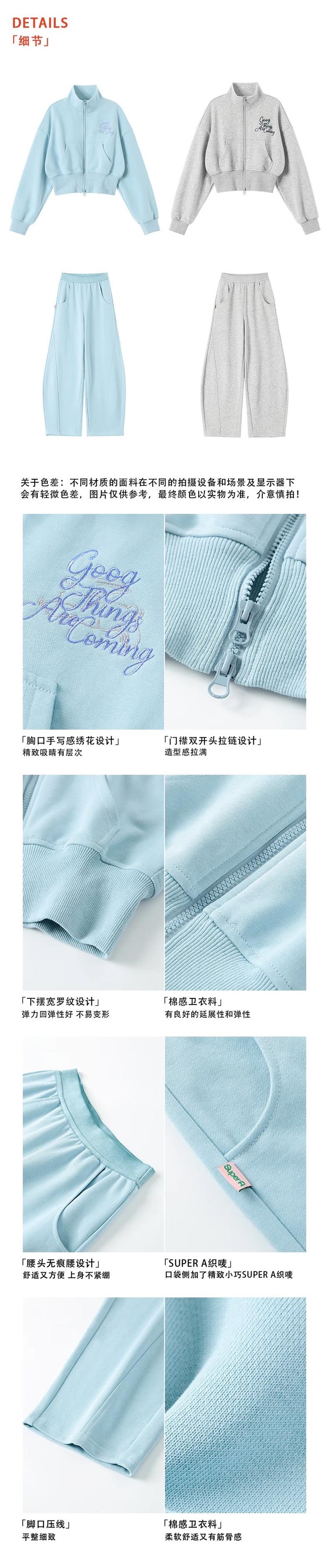 Double zip stand collar suit-gray, Double zipper stand collar suit-light blue
