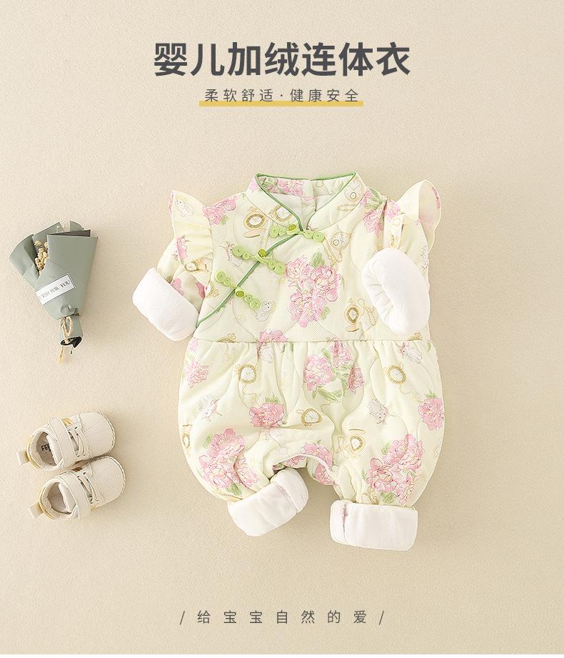 Ropa de otoño e invierno Ropa de bebé Invierno Niña Princesa Lindo Mono acolchado de algodón Traje de escalada acolchado de algodón fino estilo chino