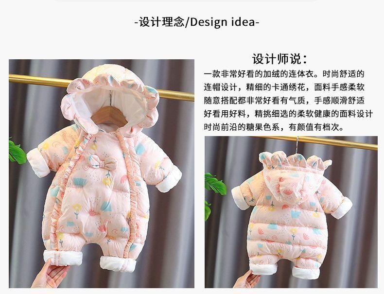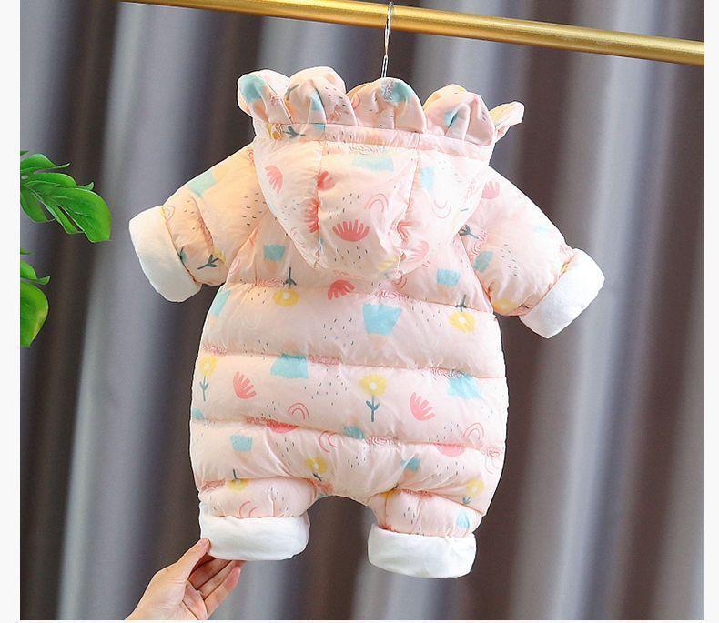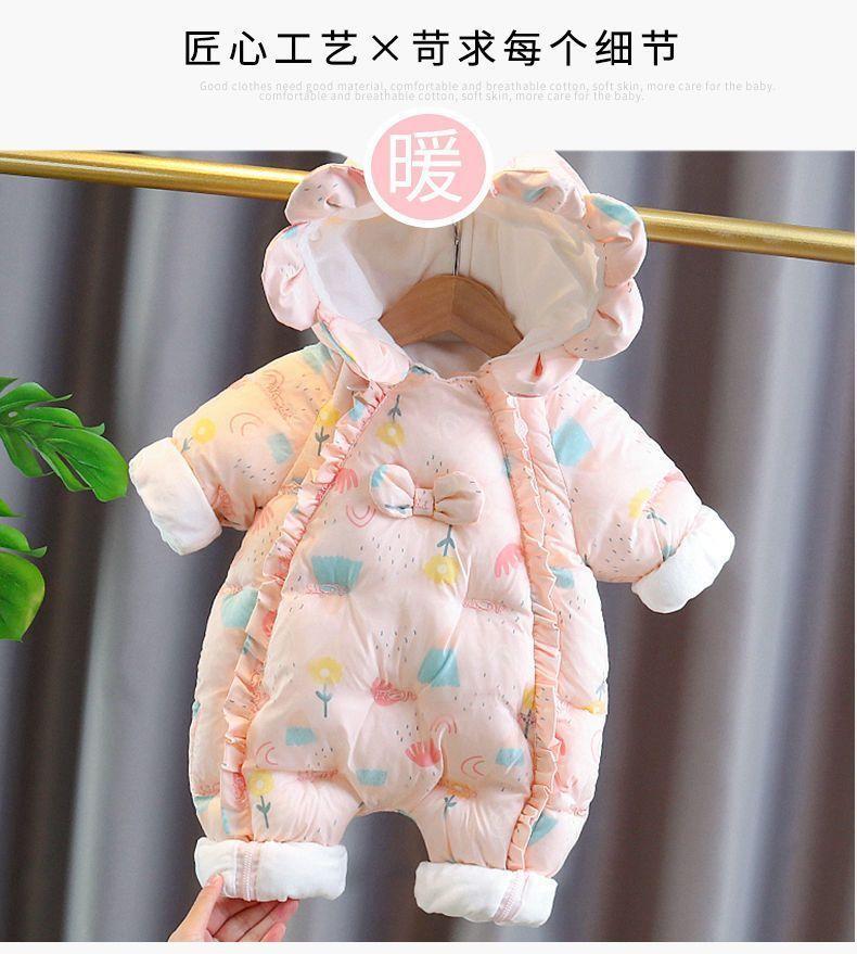 Ropa de una pieza para bebé Ropa de otoño e invierno Ropa para bebé recién nacida Super linda Princesa con forro polar Engrosada Cien días de edad Abrigo acolchado de algodón Ropa
