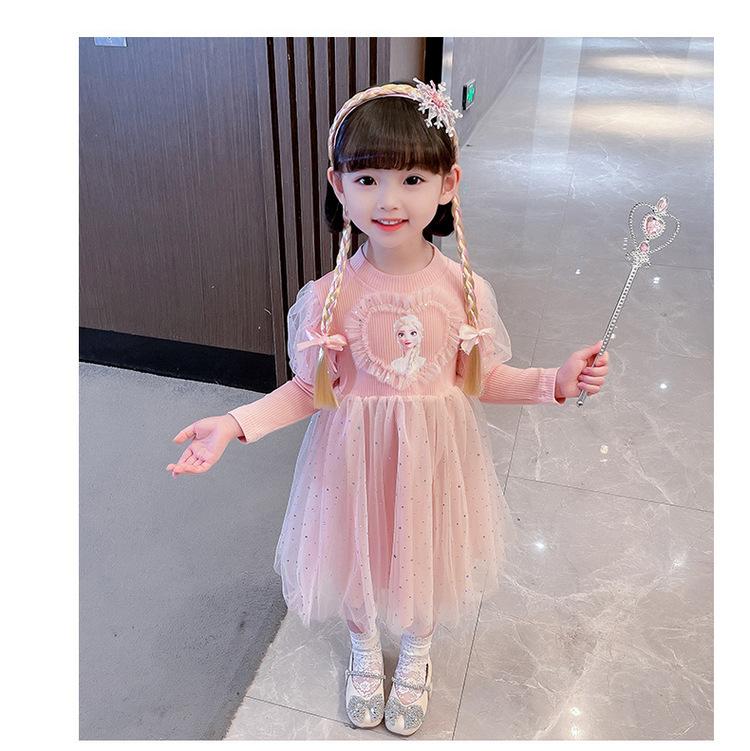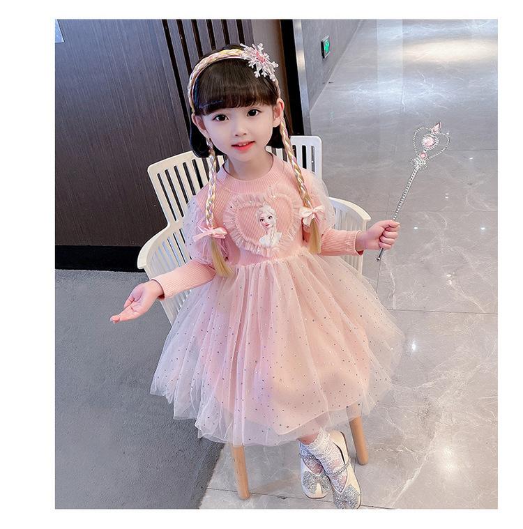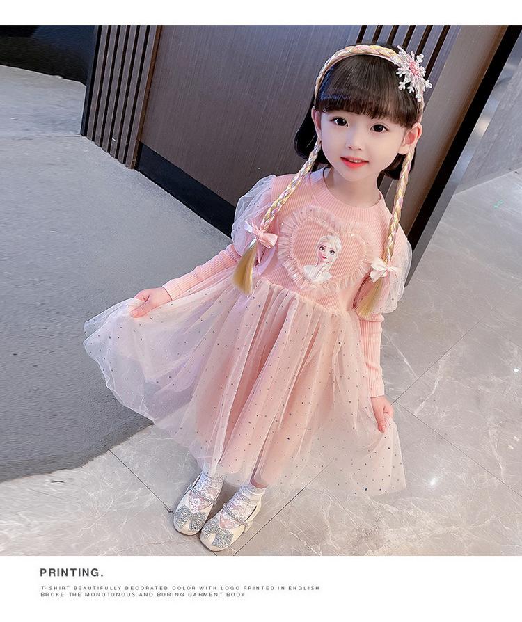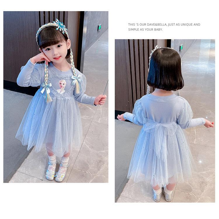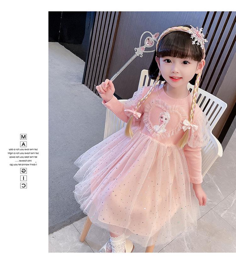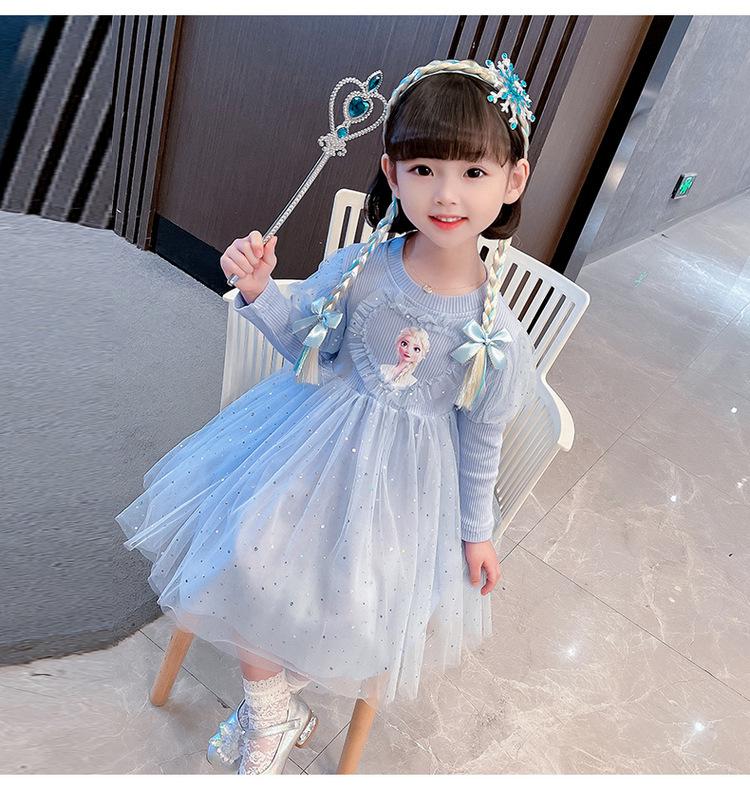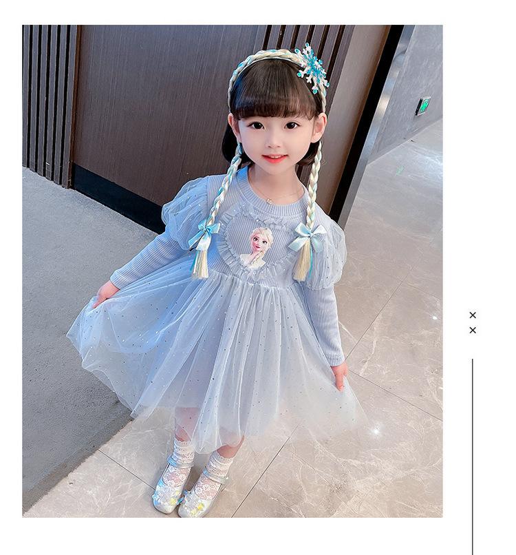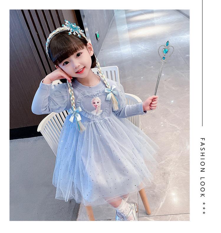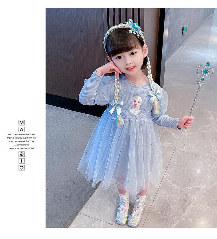 Niñas 3 Niños Vestido de Princesa Elsa Otoño Manga Larga Vestido de Frozen Niños 5 Cumpleaños Infantil Vestido de Malla Vestido de Elsa