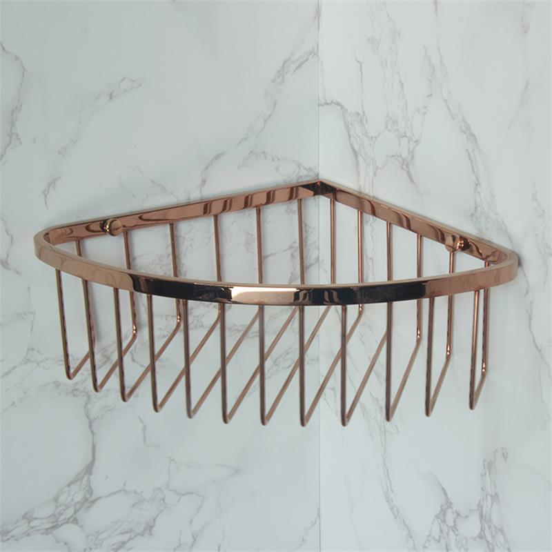 Kaiping Youjia Baño Acero Inoxidable 304 Oro Rosa Estante de Esquina para Baño Cesta Triangular para Baño Estante de Almacenamiento Cesta de Malla 0394
