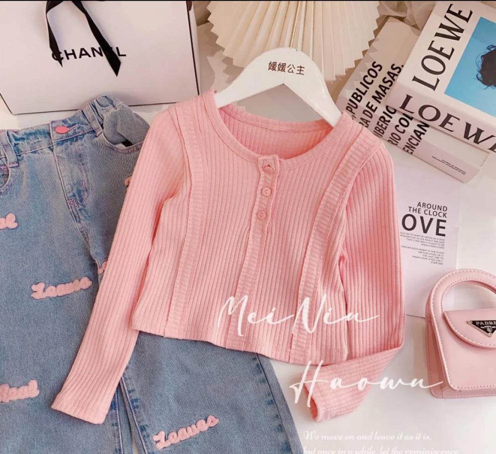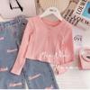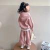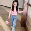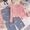 Trajes de niña primavera 2023 nuevo estilo coreano niñas manga larga cuello redondo cintura superior jeans traje de dos piezas