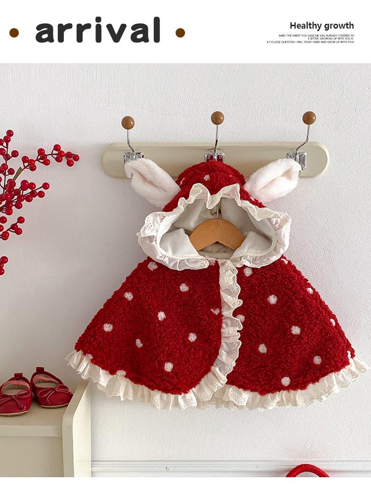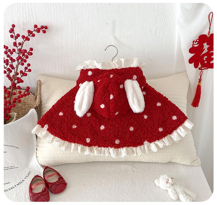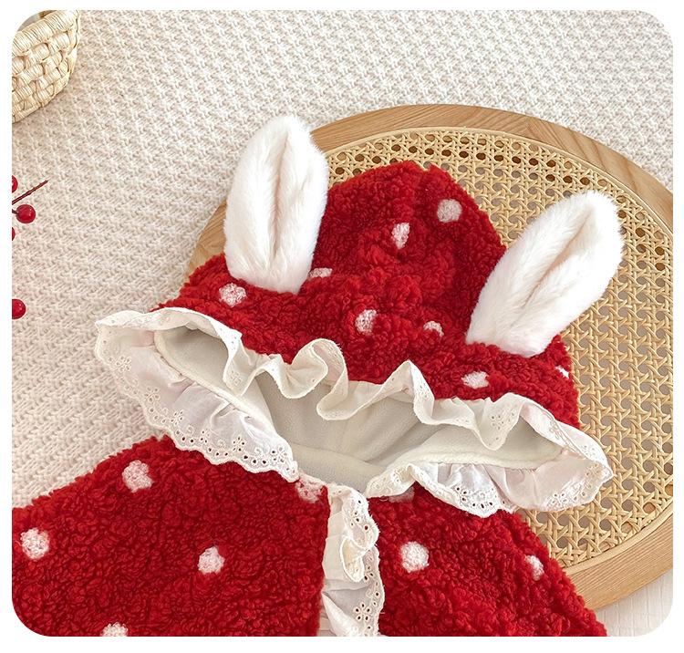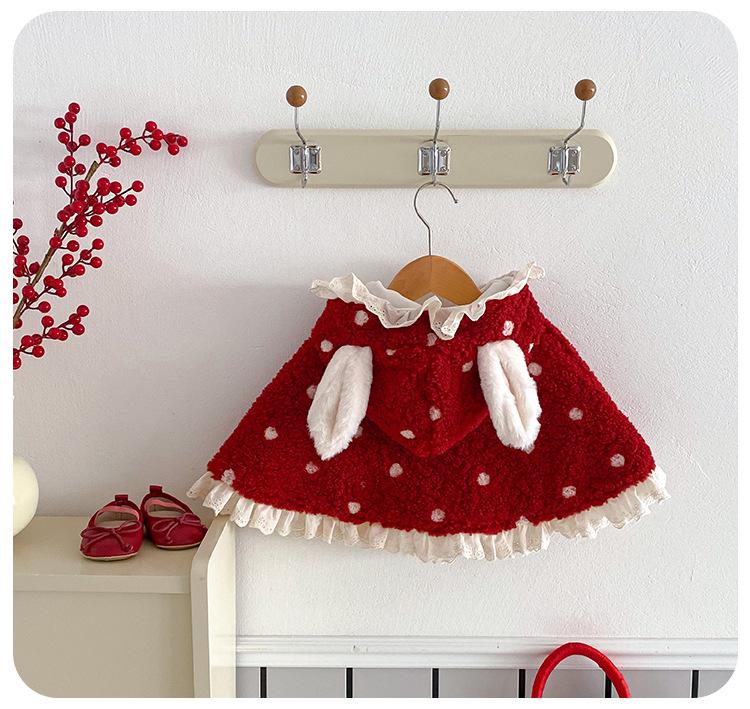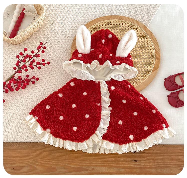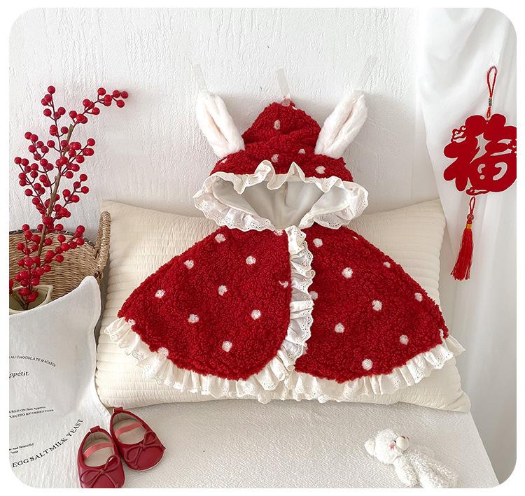 Capa de bebé otoño e invierno nueva niña recién nacida bebé encaje orejas de conejo capa saliente a prueba de viento princesa forrado de vellón chal
