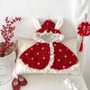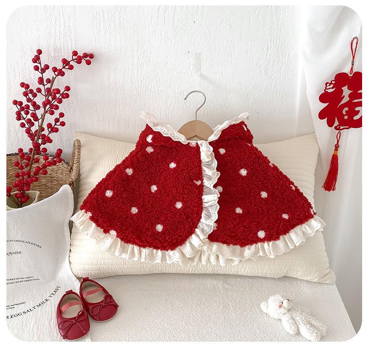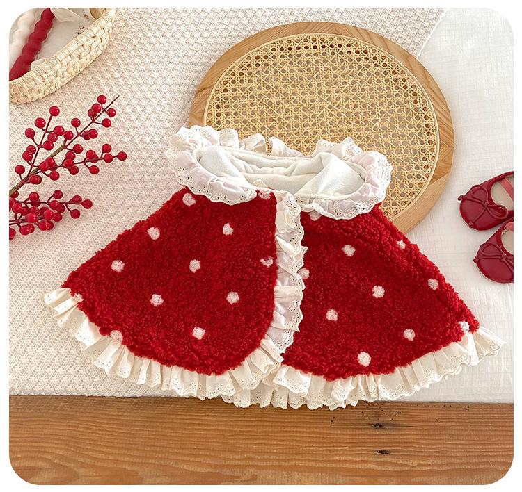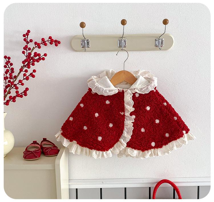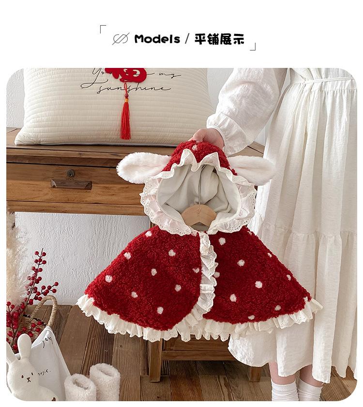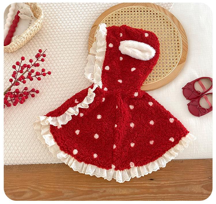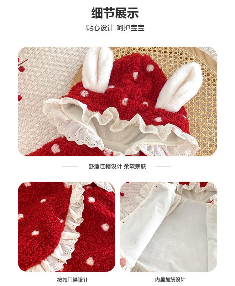 Capa de bebé otoño e invierno nueva niña recién nacida bebé encaje orejas de conejo capa saliente a prueba de viento princesa forrado de vellón chal