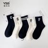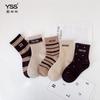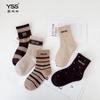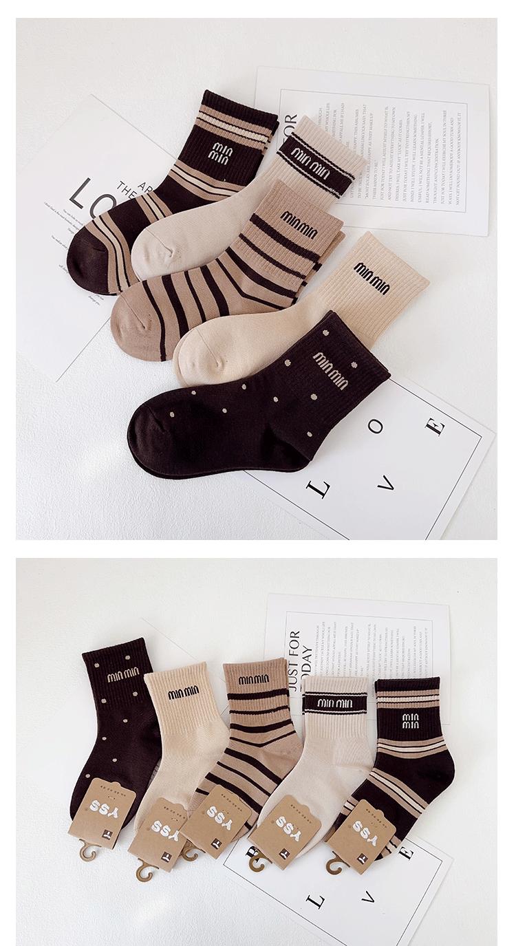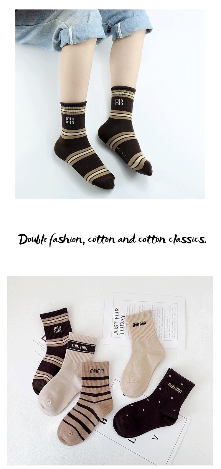Calcetines Yi Par para Niños Otoño e Invierno Nuevos Calcetines de Tubo Medio con Letras Estilo Coreano Algodón Peinado café Calcetines para Niños Marca de Moda Calcetines Deportivos