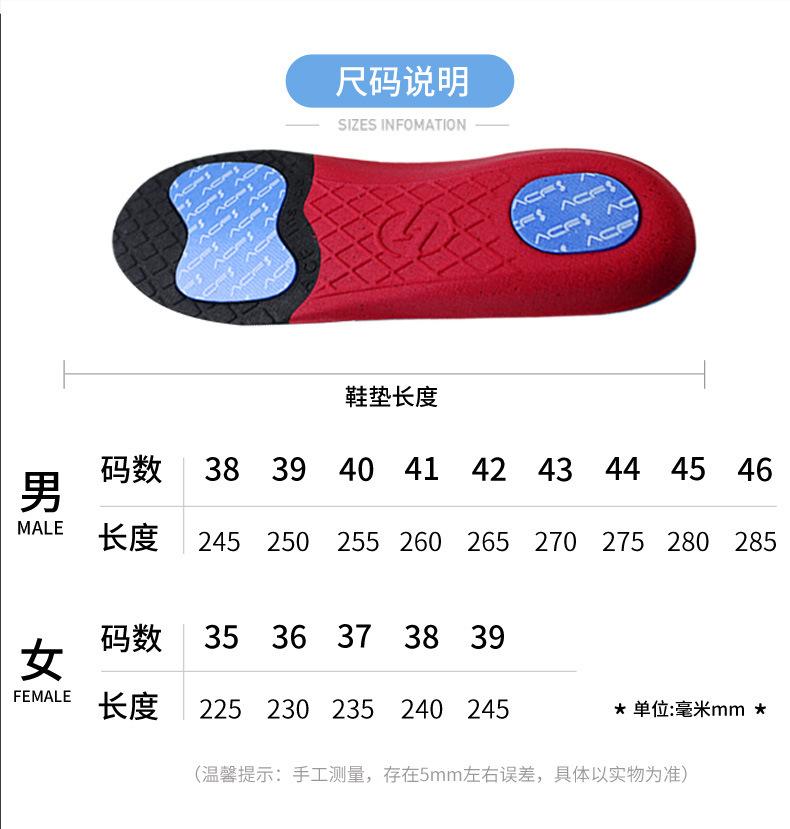 Plantilla especial deportiva ACF para deportes profesionales, para hombres y mujeres, con amortiguación de impactos, engrosada, absorción del sudor, desodorante, antibacteriana y transpirable.