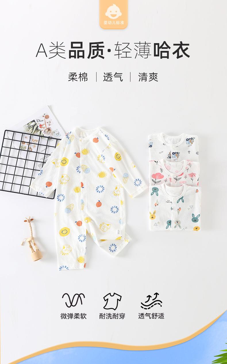 Mameluco de Manga Larga para Recién Nacido Pijama de Algodón Puro para Bebé Ropa para Aire Acondicionado Ropa Delgada y Transpirable para Bebé Ropa para Trepar Hassel Ropa de Verano