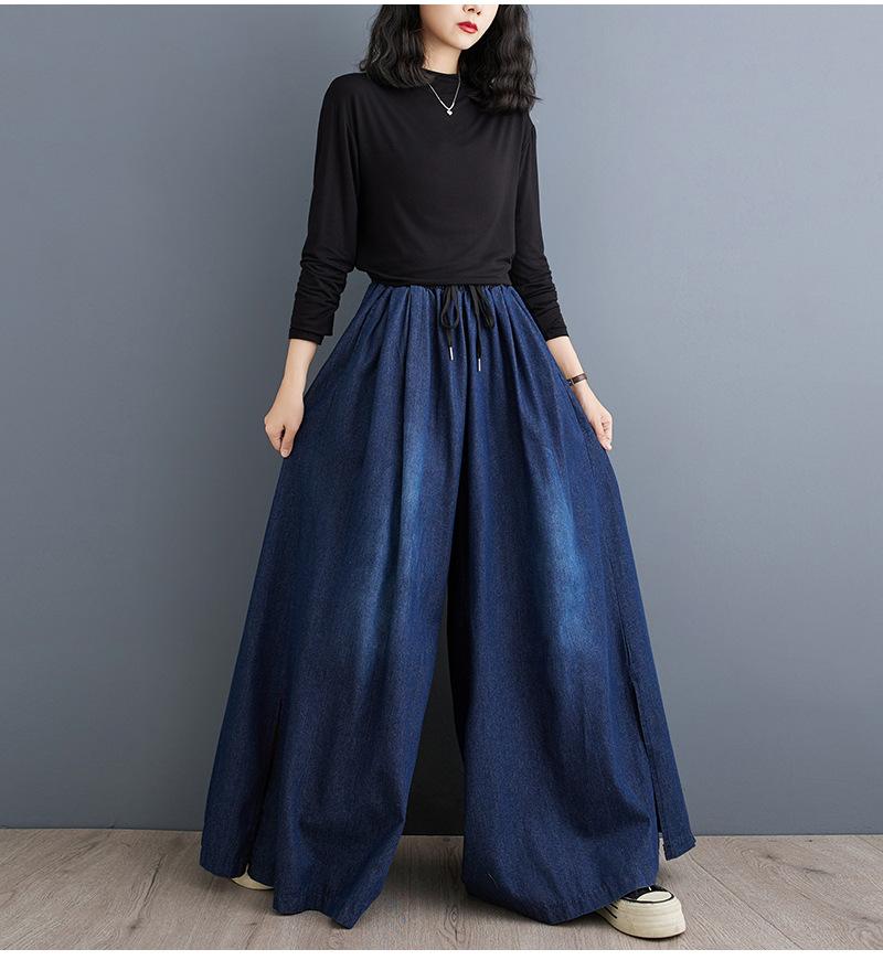Pantalones de pierna ancha para mujer, nuevos pantalones casuales con aberturas simples y artísticas, pantalones de pierna ancha rectos de cintura alta.