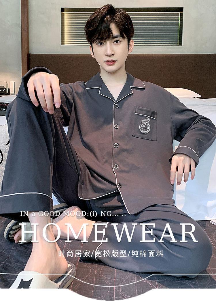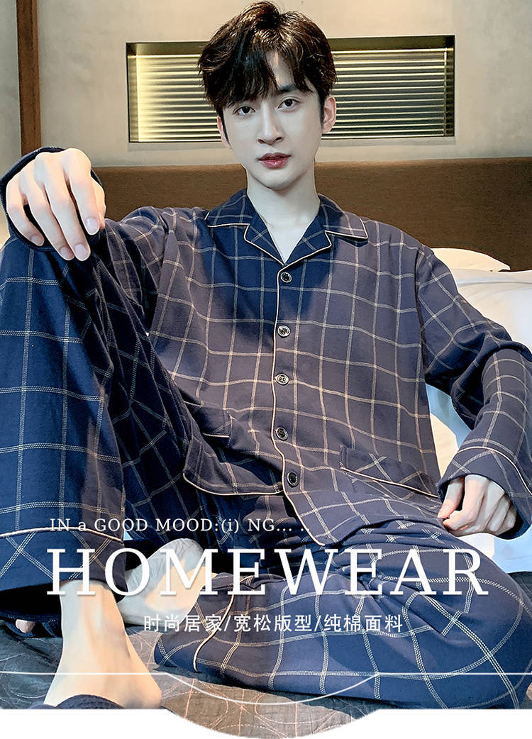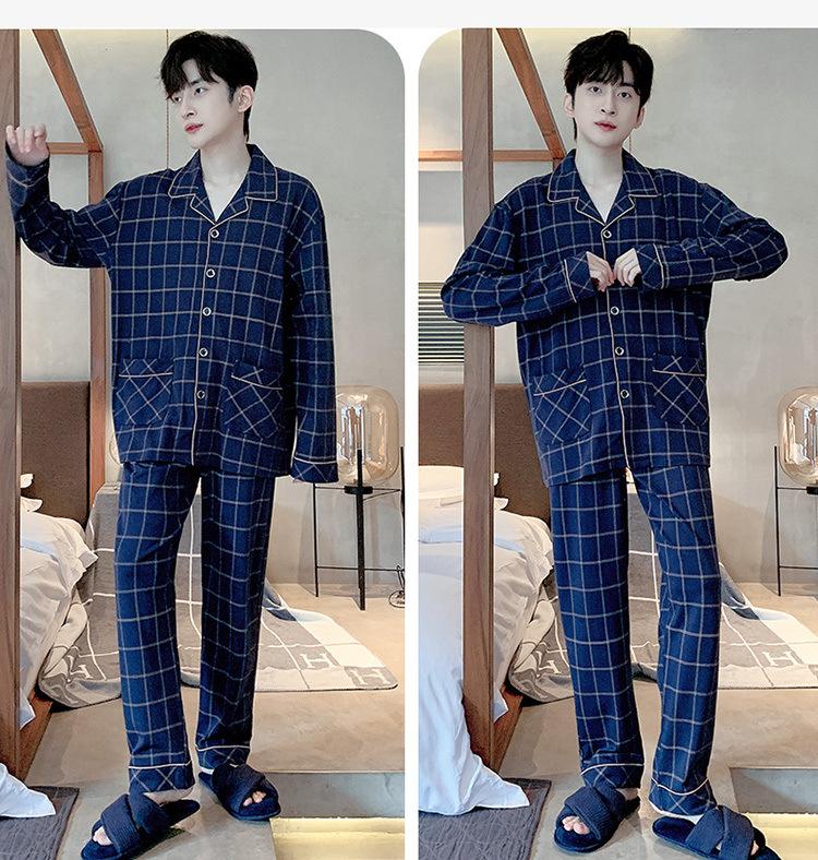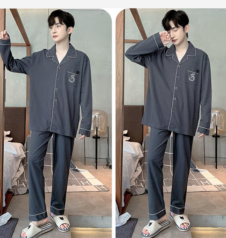 Compra Pijama nuevo para hombre primavera y otoño 6040 algodón manga larga pantalón cárdigan ropa de casa casual para hombre ropa de casa para exterior al por mayor en Joom.pro