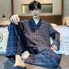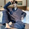 Pijama nuevo para hombre primavera y otoño 6040 algodón manga larga pantalón cárdigan ropa de casa casual para hombre ropa de casa para exterior