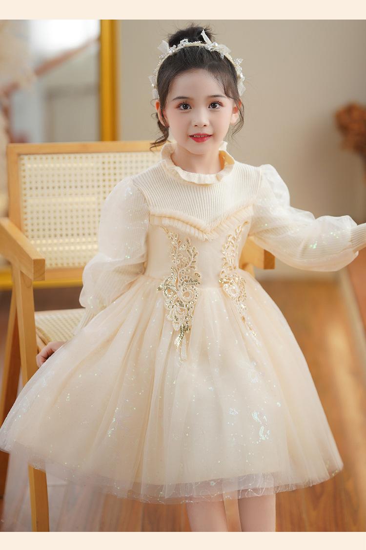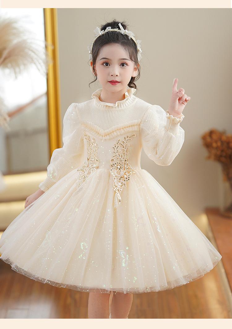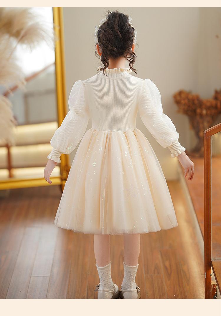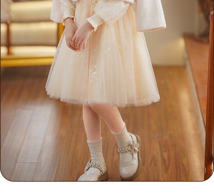 Vestido de niña Falda de otoño 2024 Nuevo Lana Lentejuelas Falda de tul abullonada para niños Falda de princesa Styky para niña