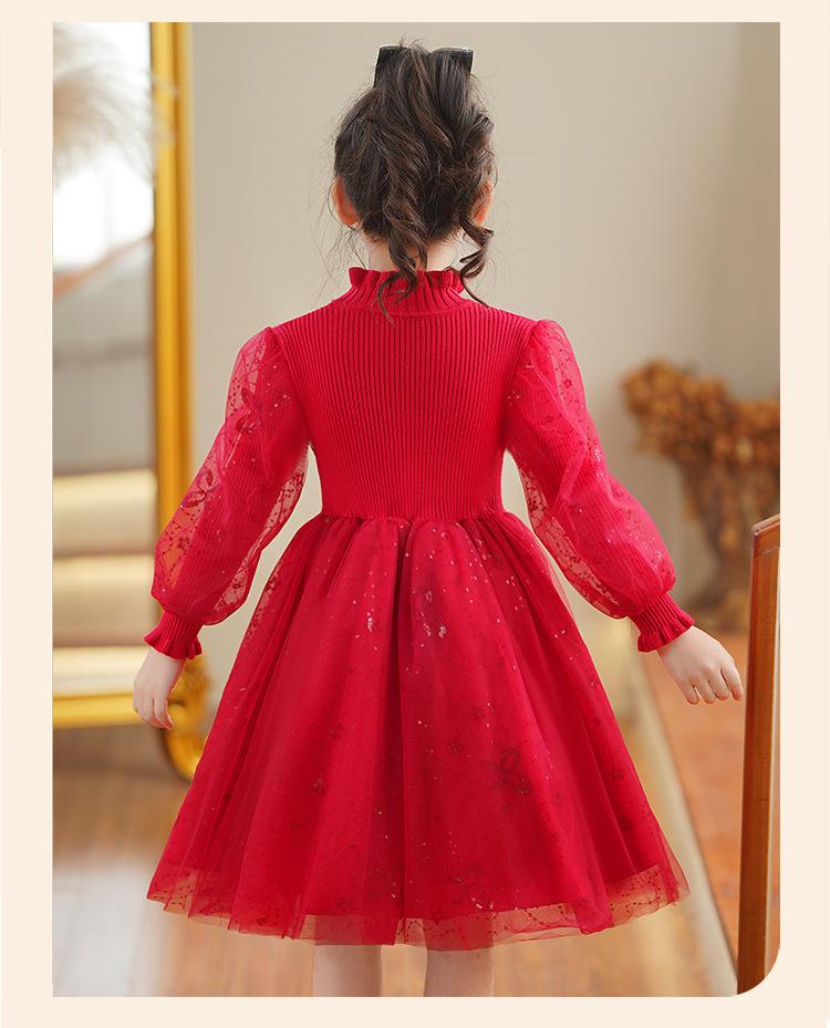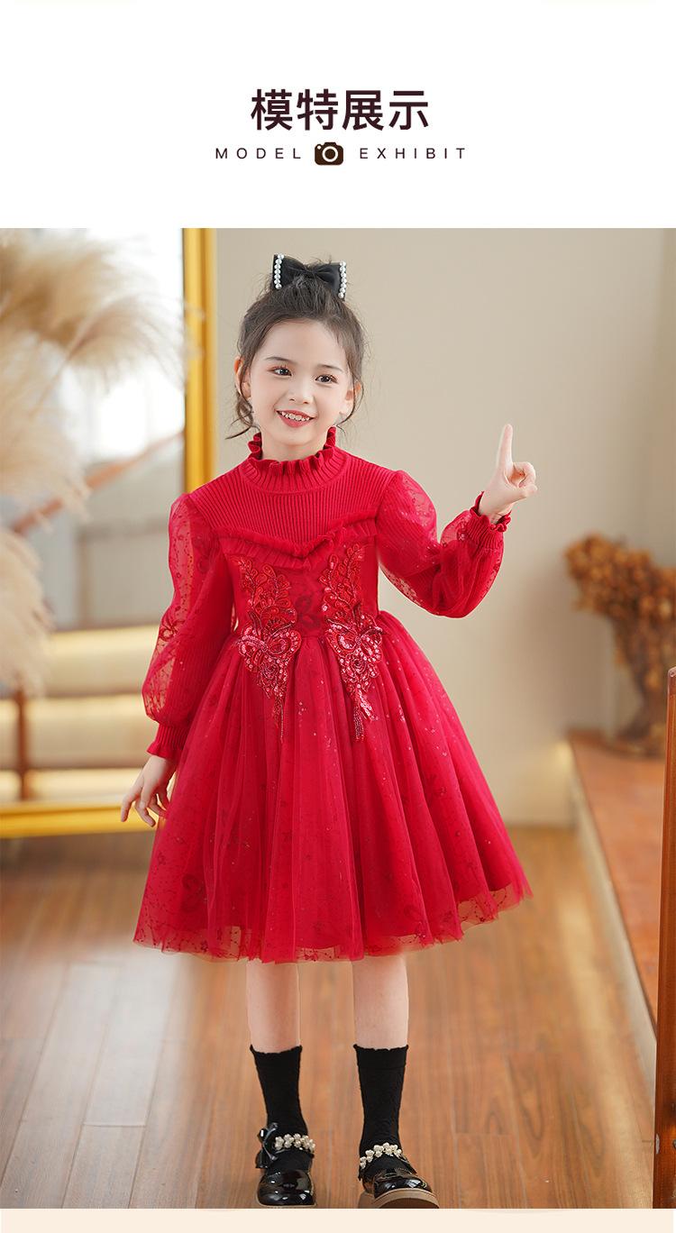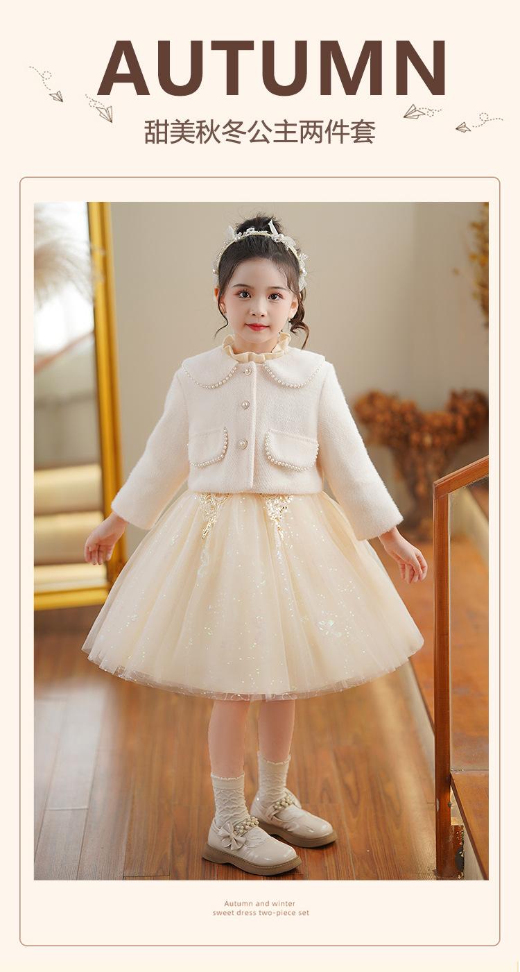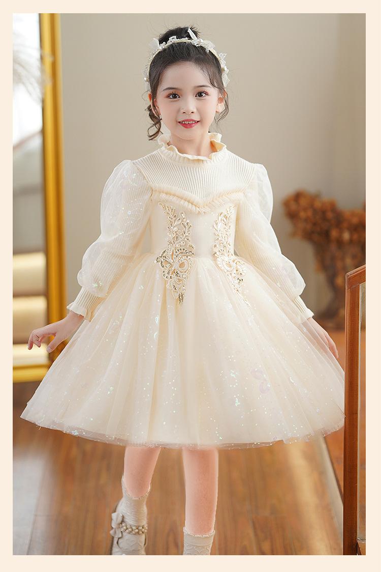 Vestido de niña Falda de otoño 2024 Nuevo Lana Lentejuelas Falda de tul abullonada para niños Falda de princesa Styky para niña