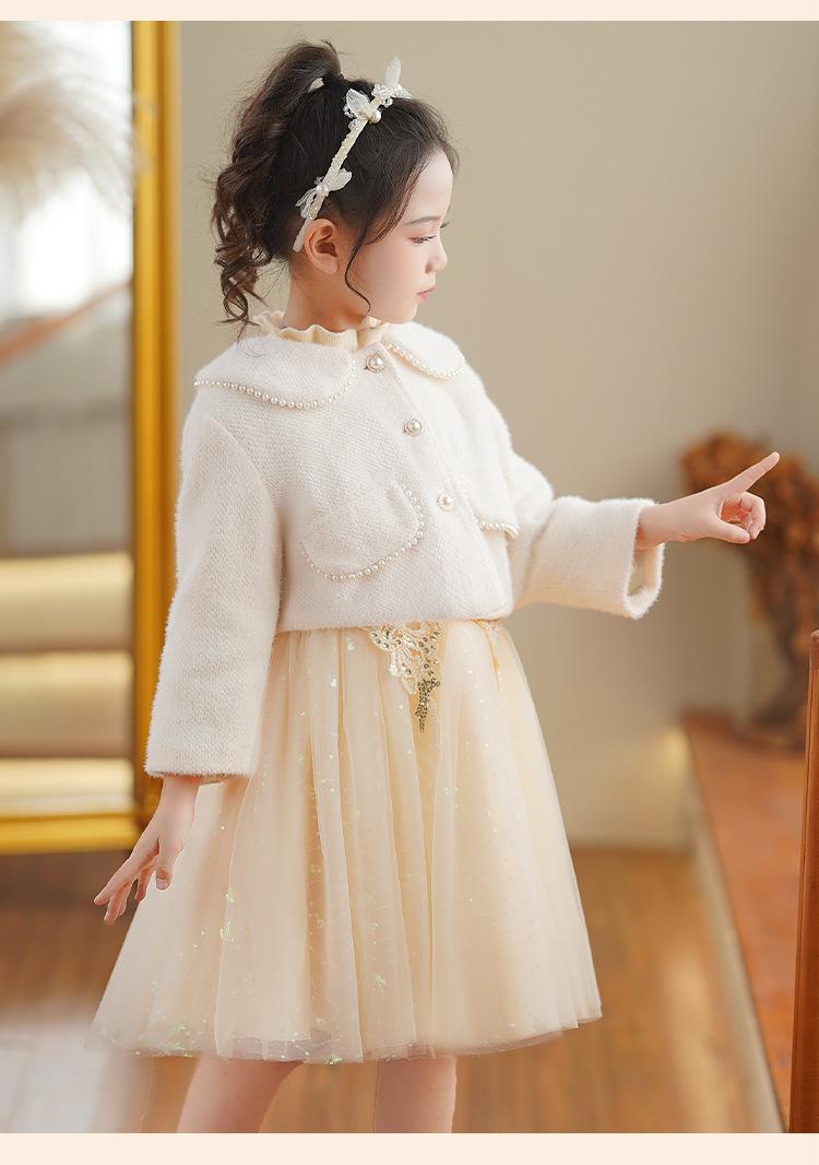 Champagne color skirt plus velvet + small fragrant jacket + pearl headband