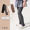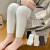 Leggings para niñas con forro polar, de color liso, de talla mediana y grande, con rayas verticales, pantalones de una pieza gruesos y cálidos para niños.