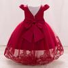 Vestido de niña con lazo, vestido de princesa con mangas voladoras, vestido de cola, vestido infantil abullonado, vestido de novia estilo occidental para niña de las flores