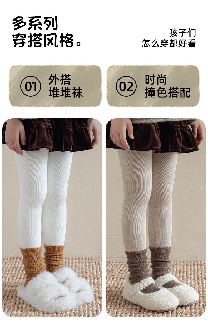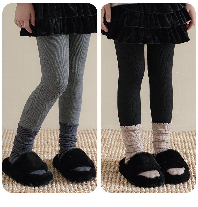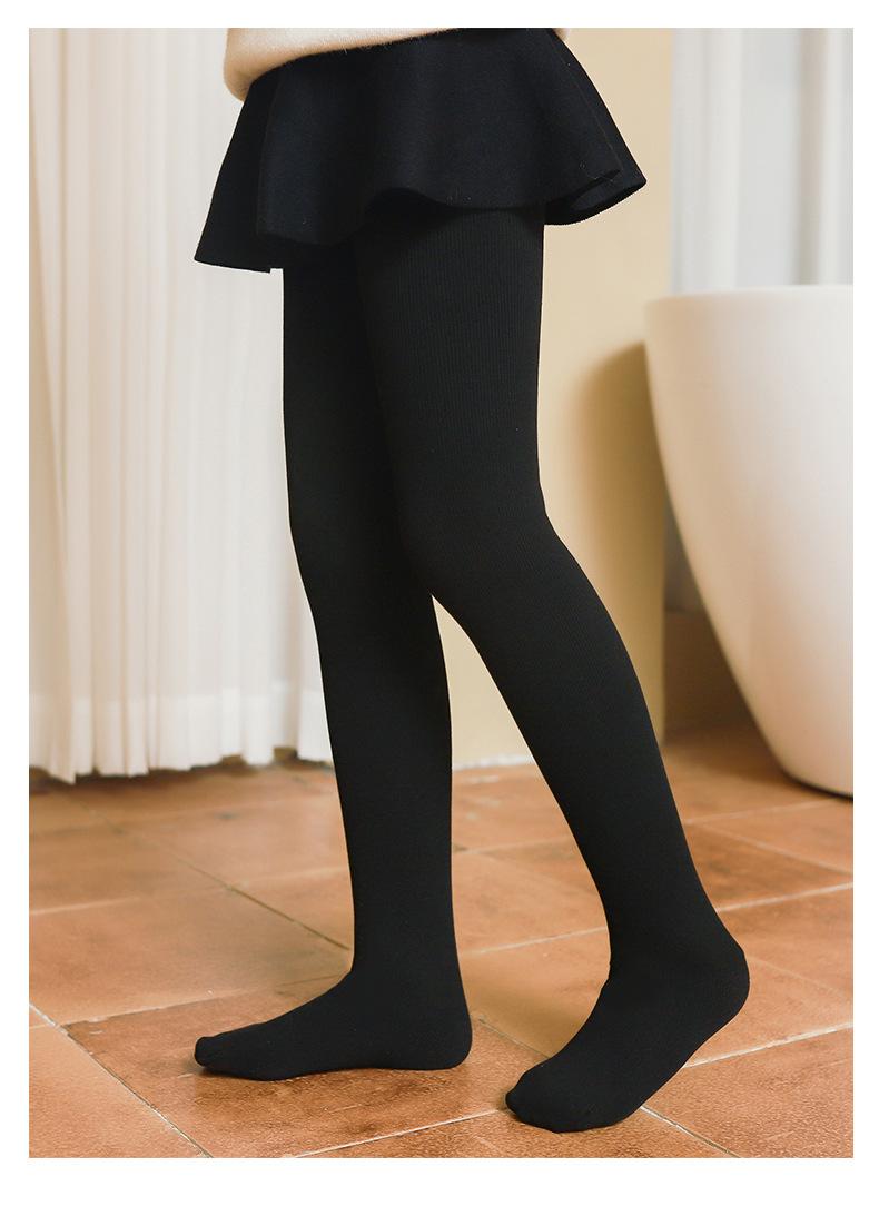Leggings para niñas con forro polar, pantalones gruesos y cálidos de una pieza para otoño e invierno, medias de algodón con rayas verticales de nueve puntos para niños