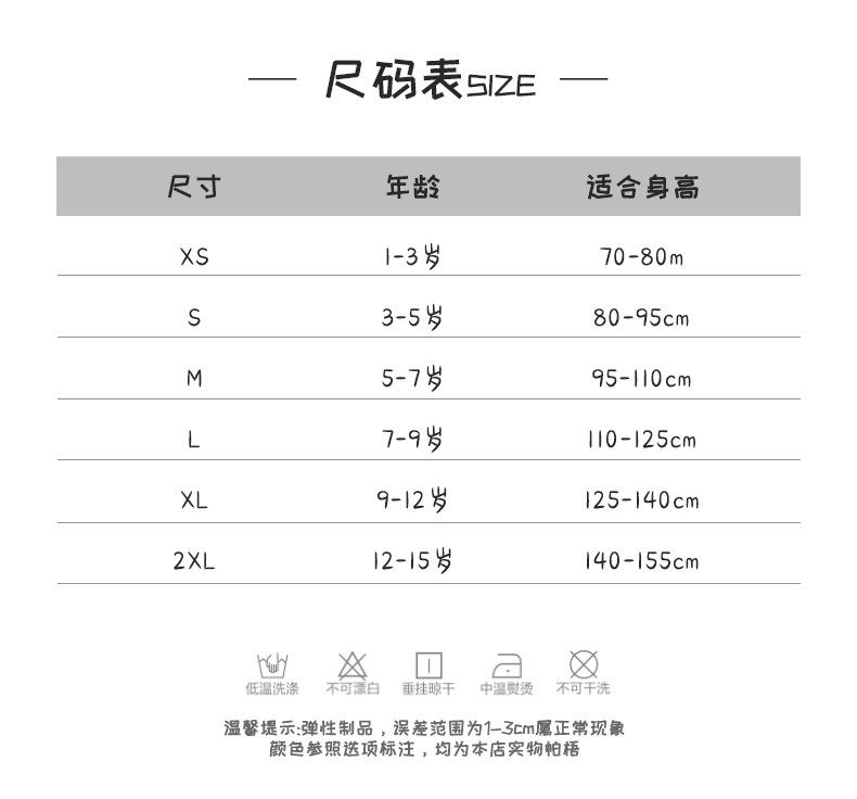 Xs size 70-80cm, S size 80-95cm, M size 95-110cm, L size 110-125cm, Xl size 125-140cm, Xxl code 140-155cm