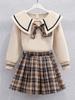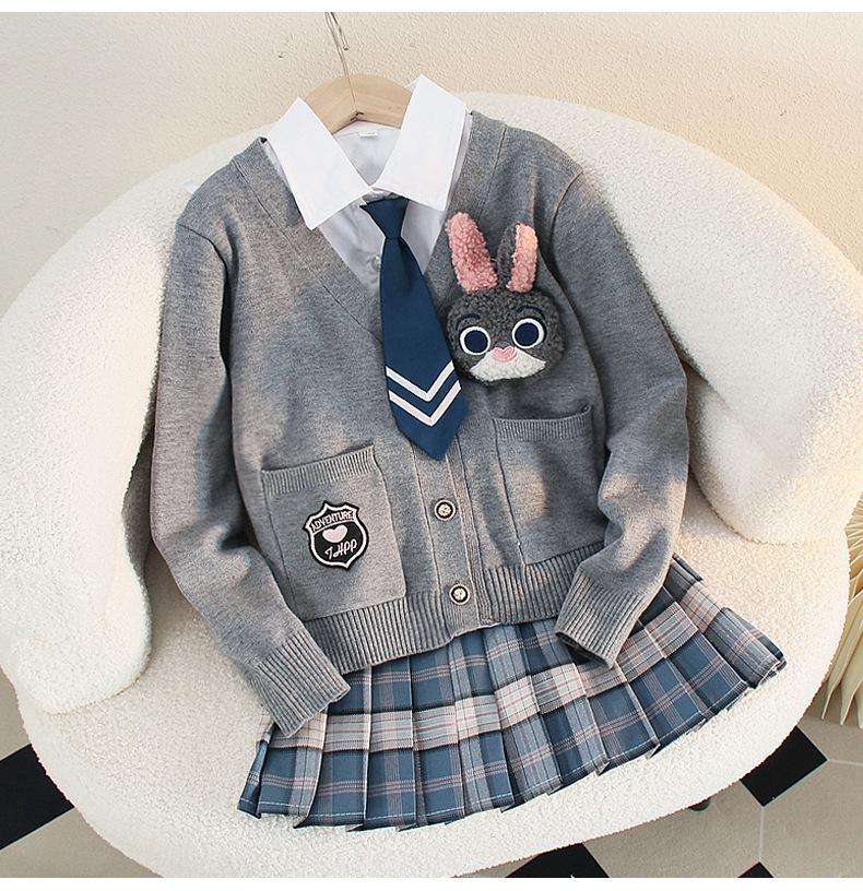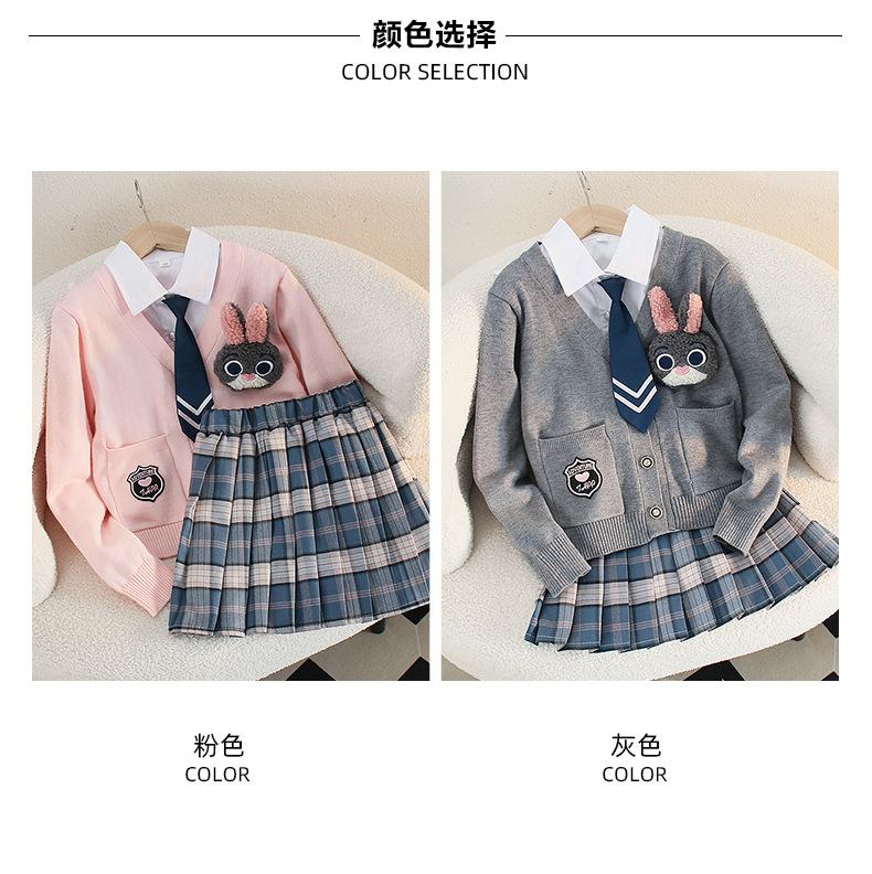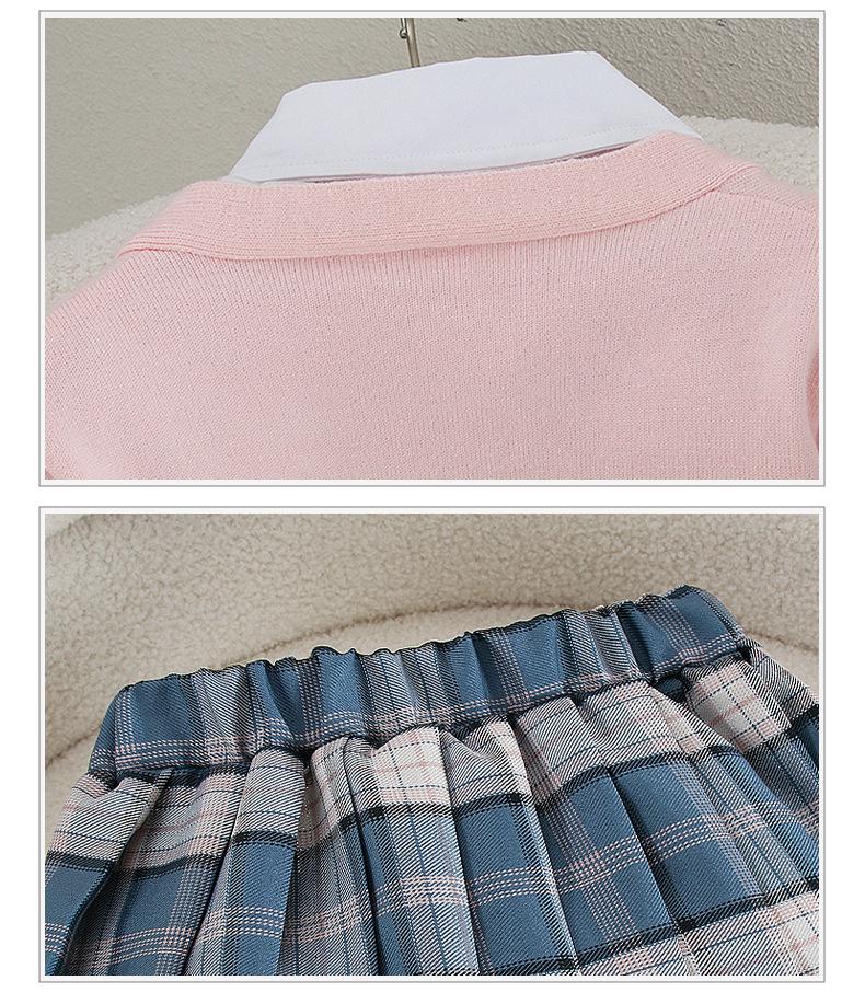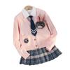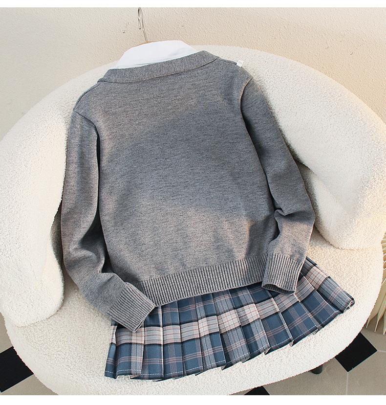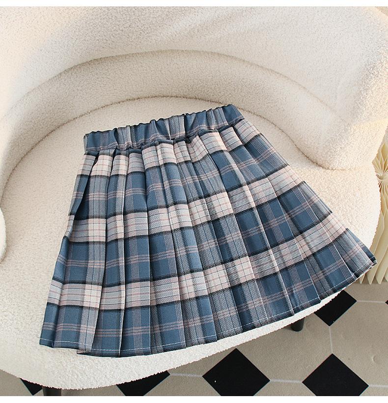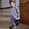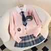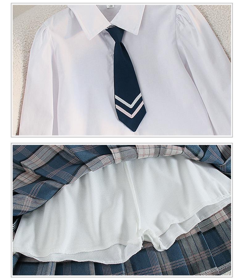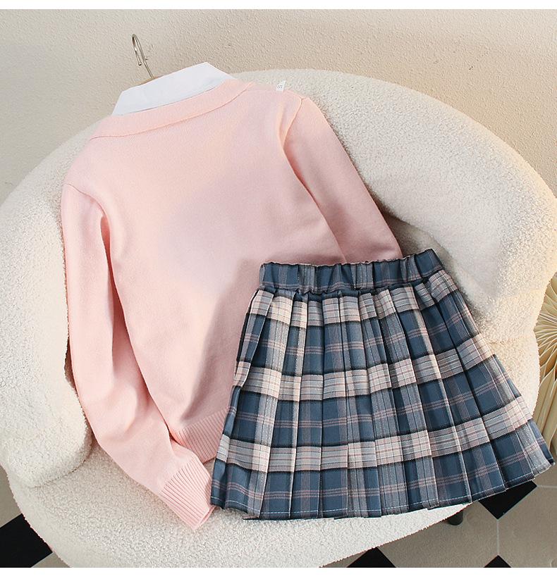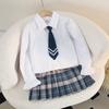 Falda de uniforme jk para niñas, ropa de otoño para niños, estudiantes de escuela primaria, primavera y otoño, estilo universitario, falda plisada a cuadros estilo occidental, conjunto de tres piezas