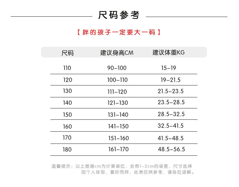 110 /suitable for height 90-100cm, 120 /suitable for height 101-110cm, 130 /suitable for height 111-120cm, 140...
