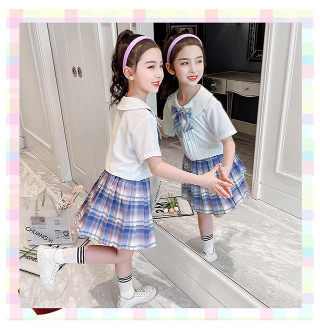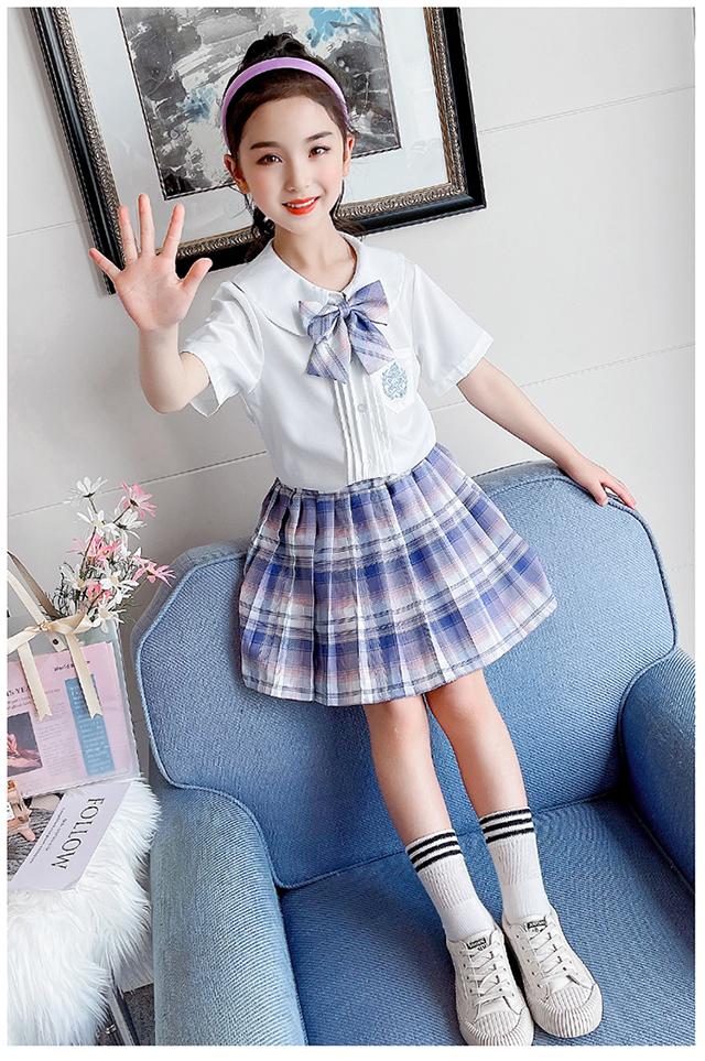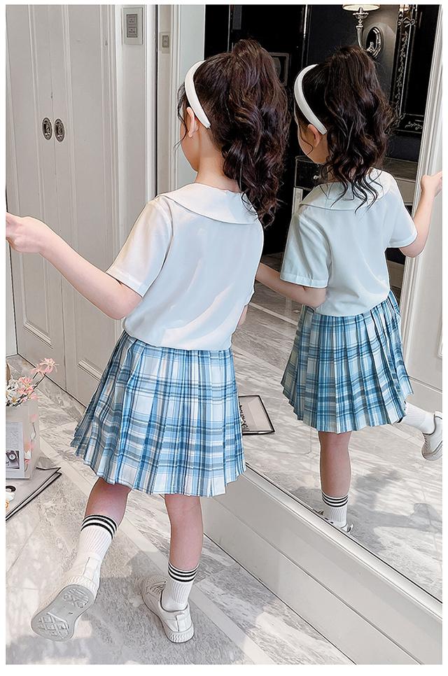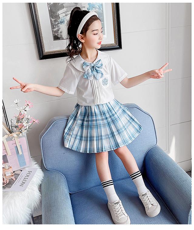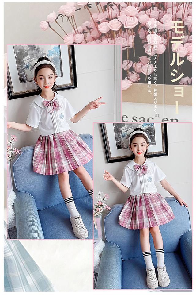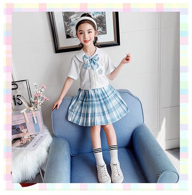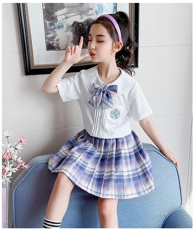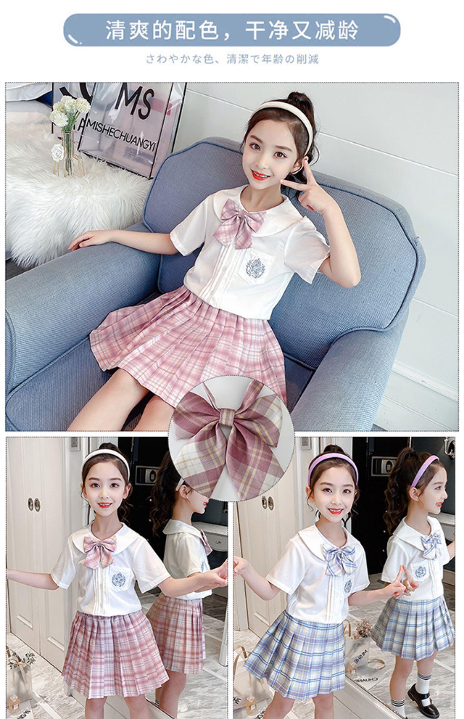 Conjunto de uniforme jk Falda 12 Verano infantil 8 Falda plisada a cuadros Manga corta Conjunto completo genuino Estilo universitario 9
