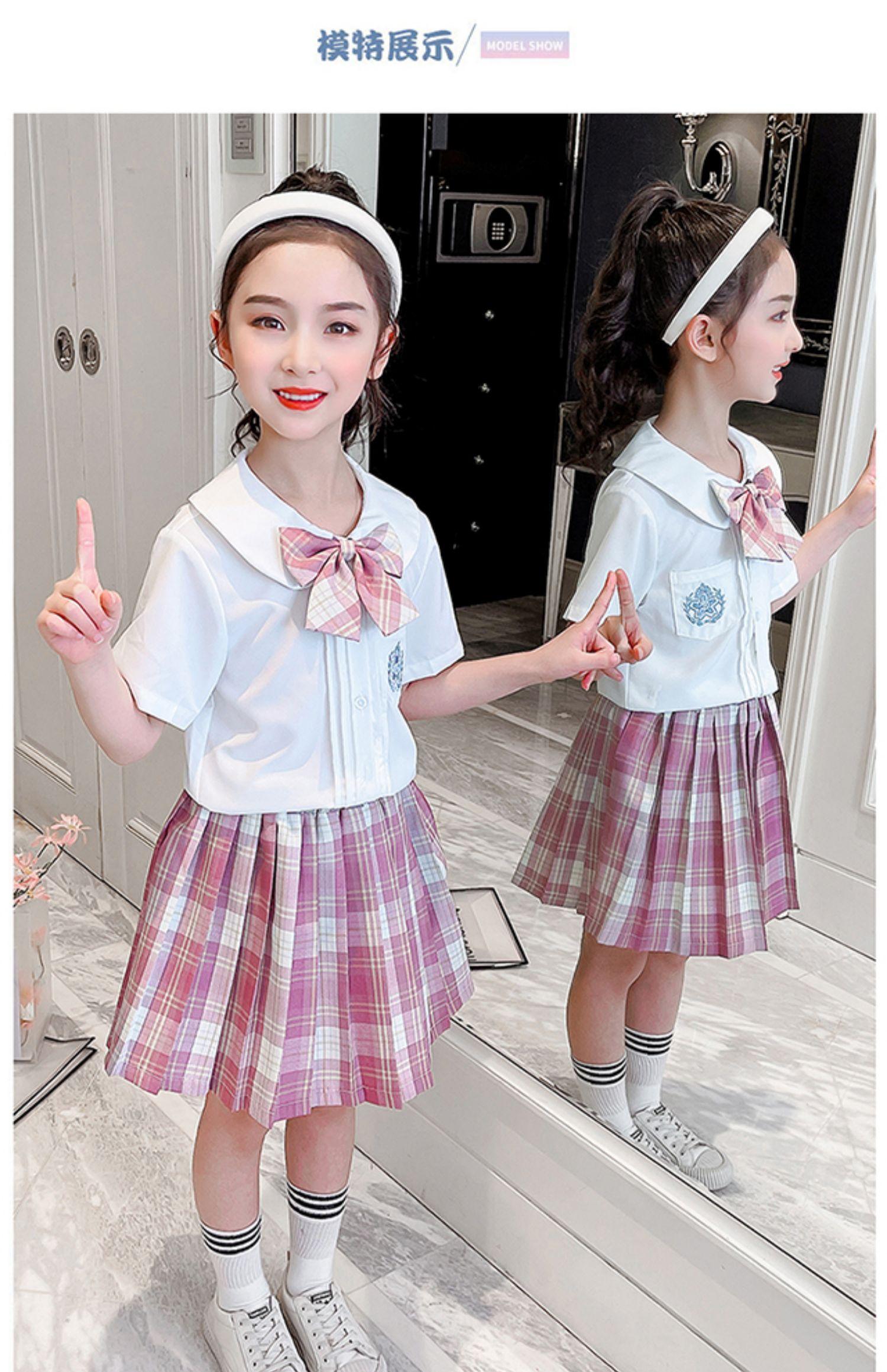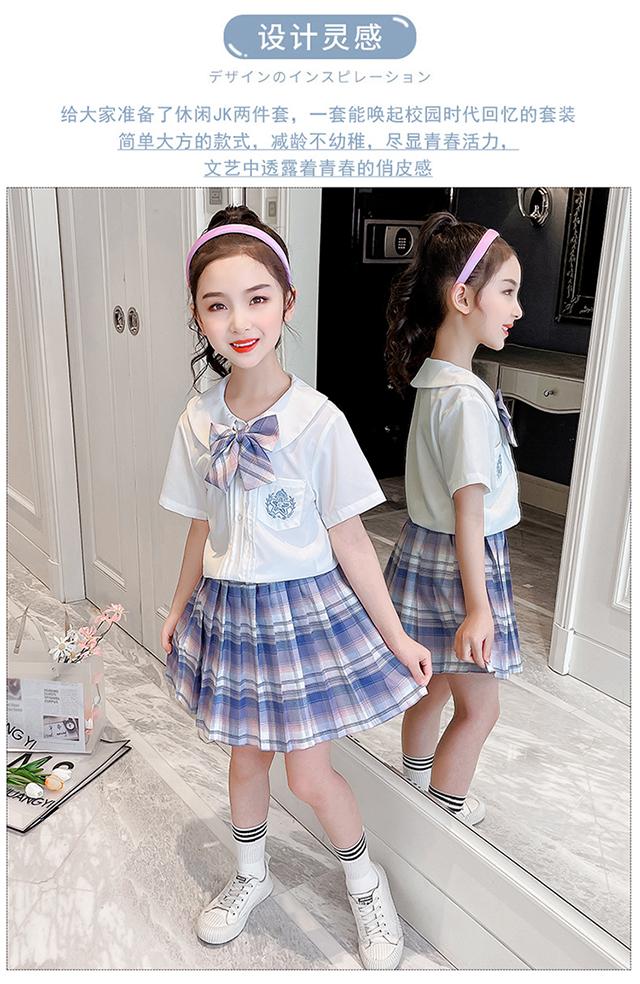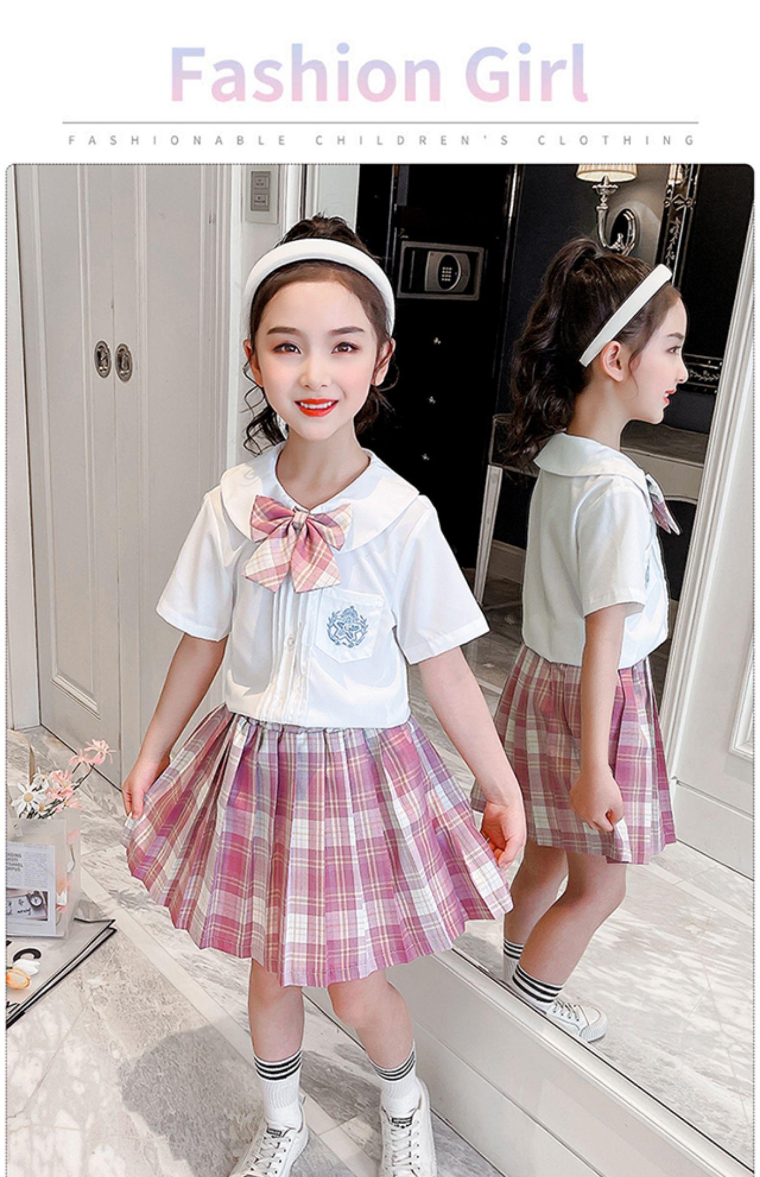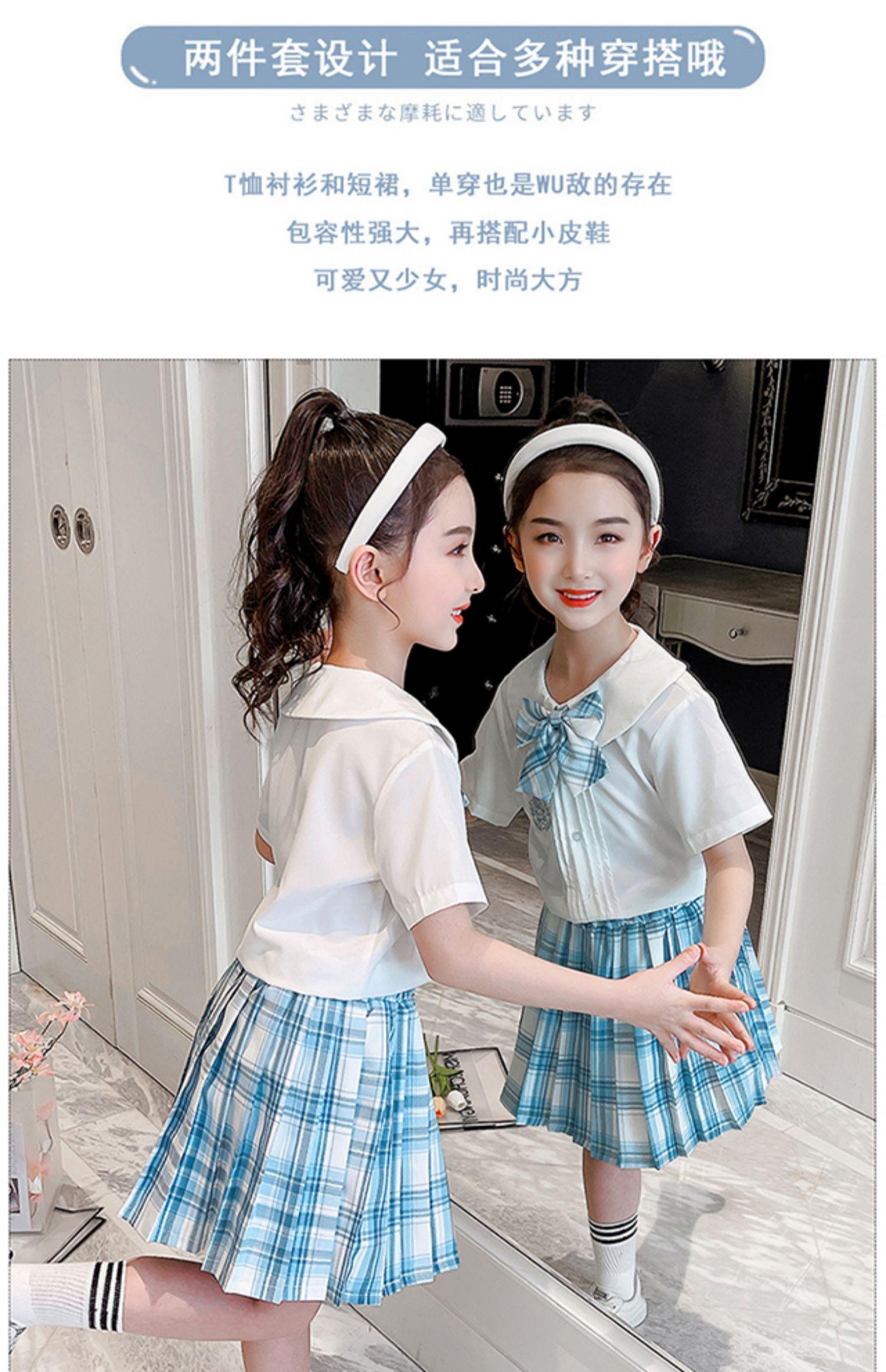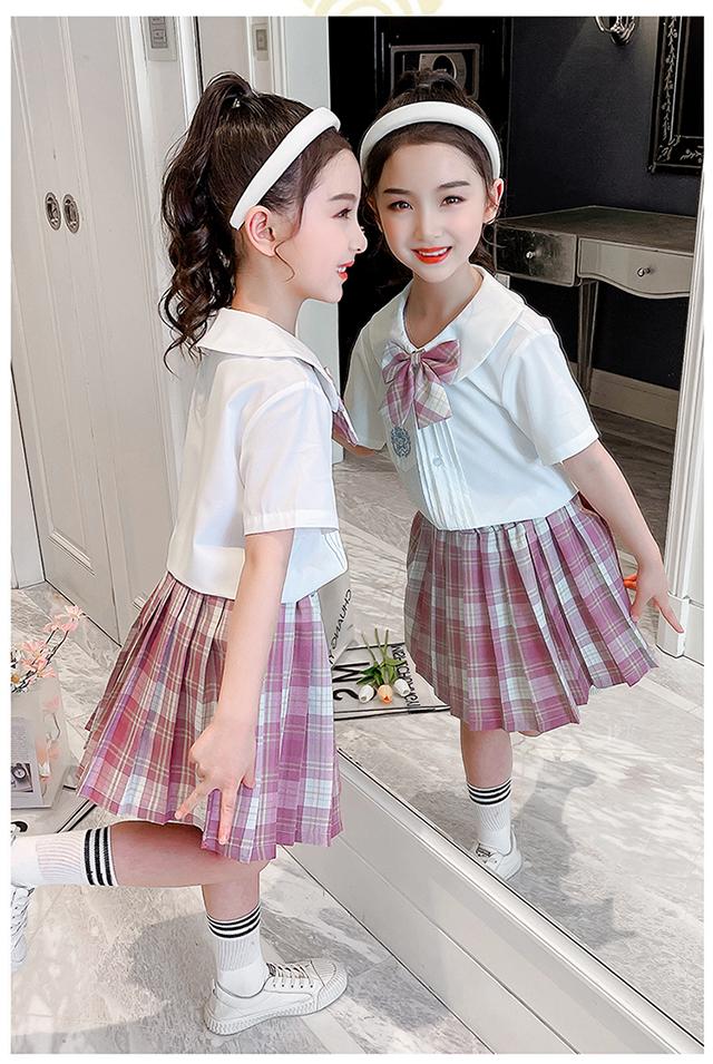 Conjunto de uniforme jk Falda 12 Verano infantil 8 Falda plisada a cuadros Manga corta Conjunto completo genuino Estilo universitario 9
