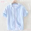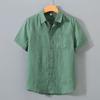 Camisa de manga corta de lino y algodón de color liso, novedad de verano 2025, camisa de lino para hombre, estilo nacional, estilo retro, informal, fina, de talla grande.