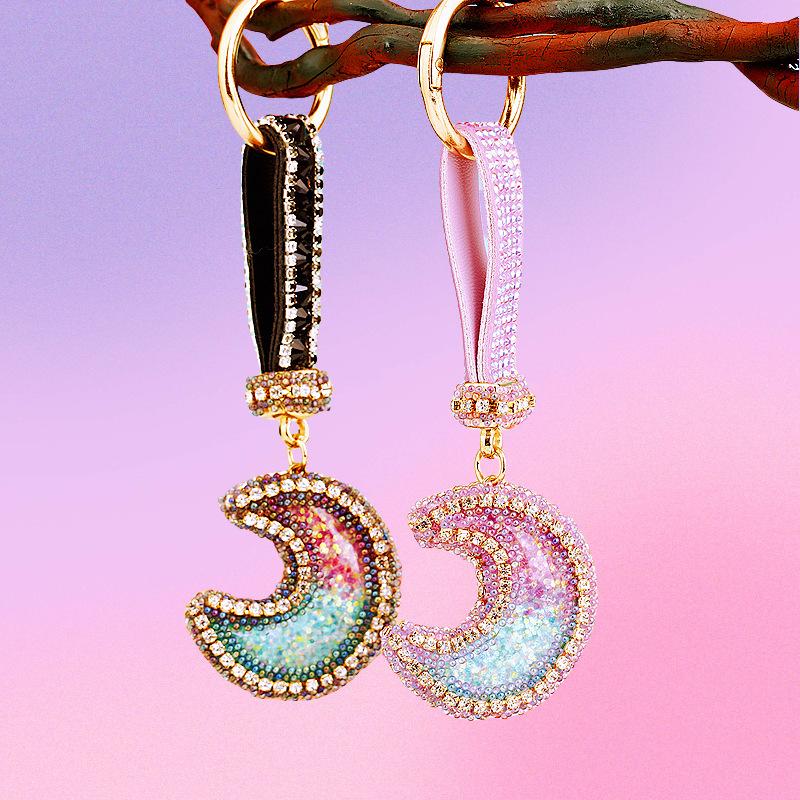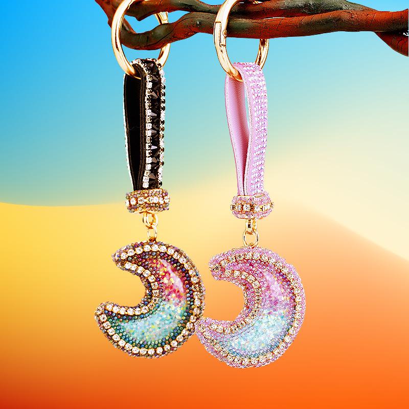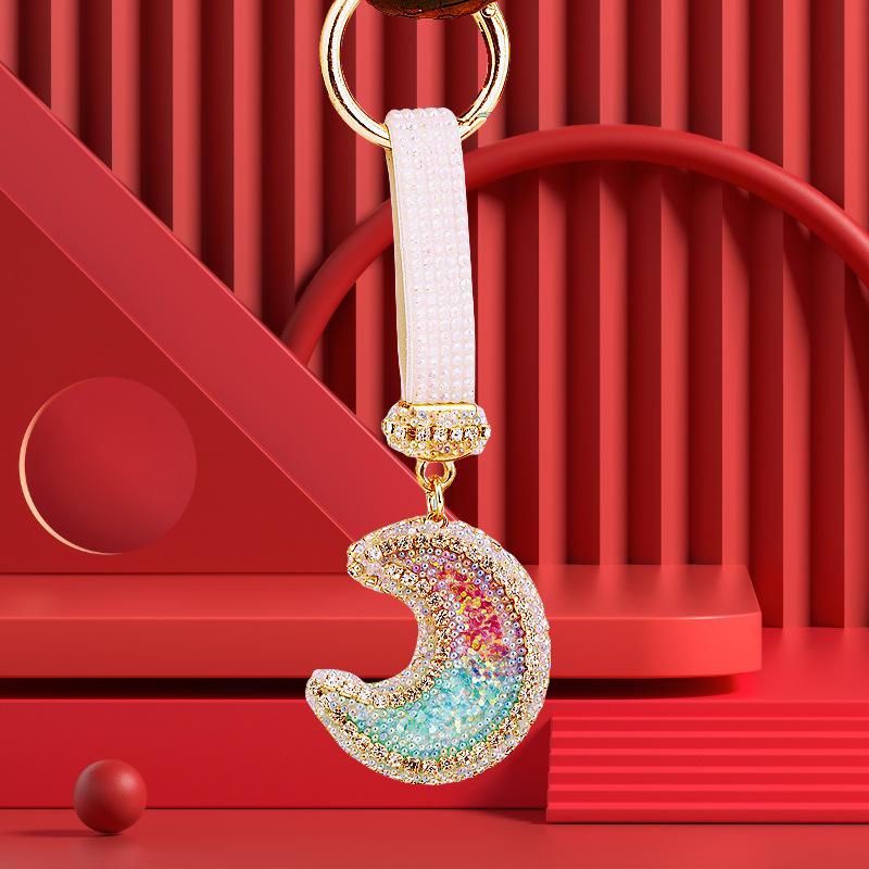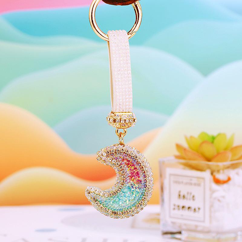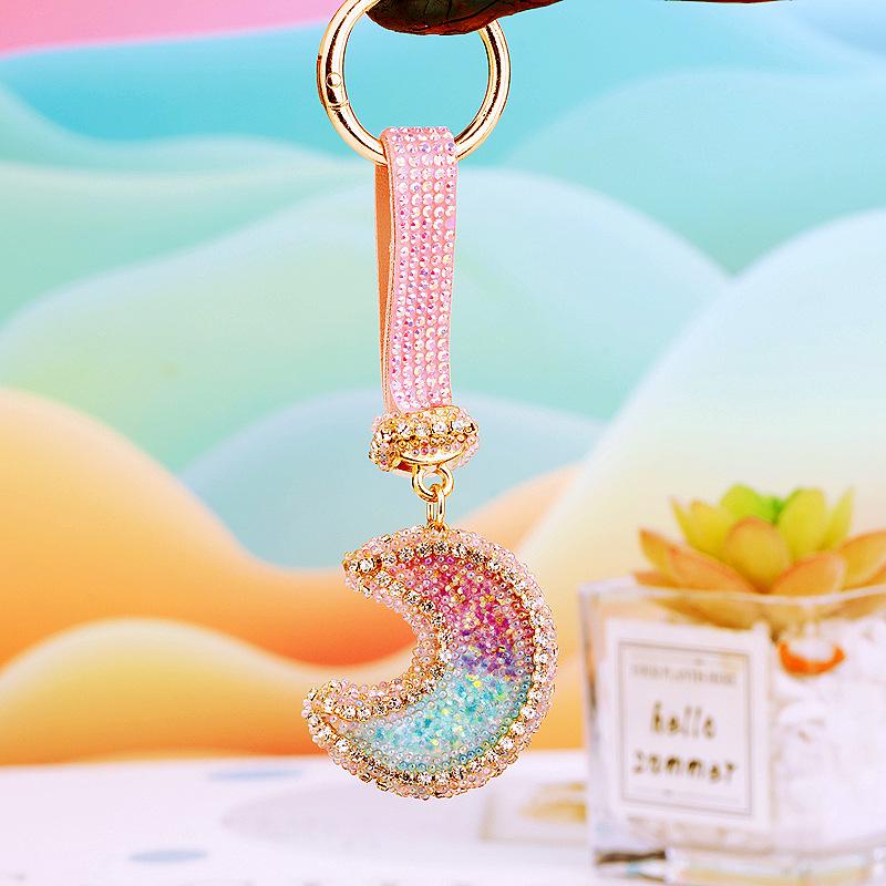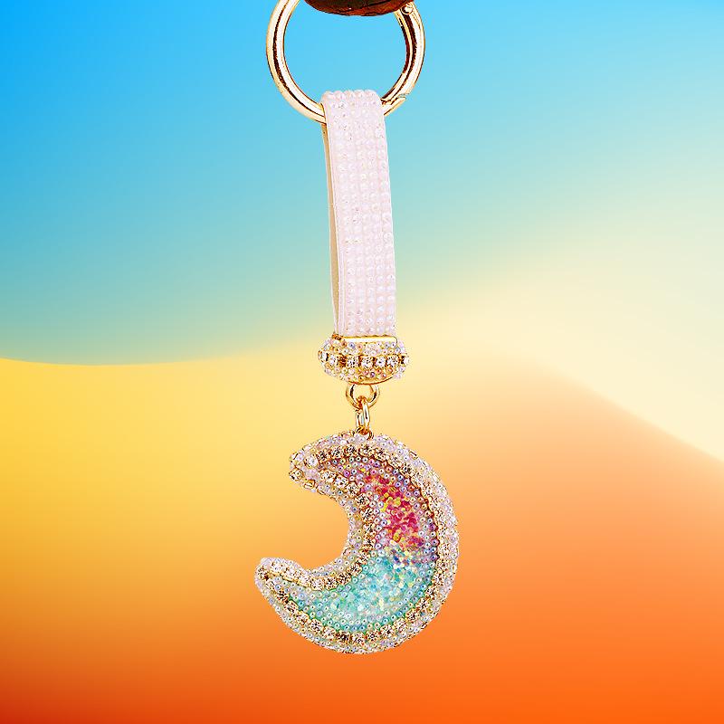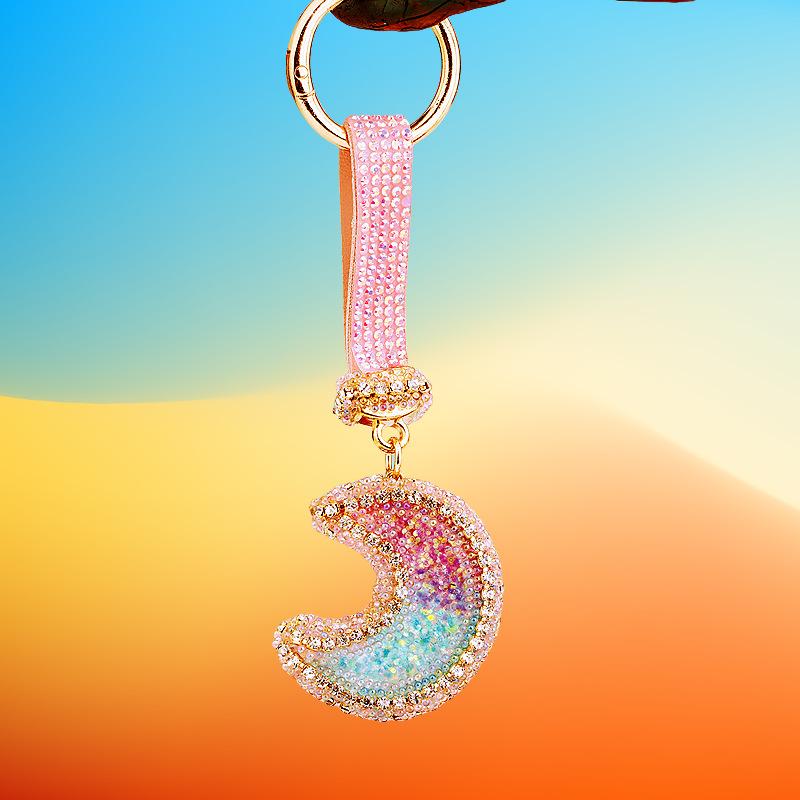 Compra Llavero de resina con forma de luna de diamante para coche, bonito colgante para bolso de mujer, llavero de moda transfronteriza, regalo al por mayor en Joom.pro