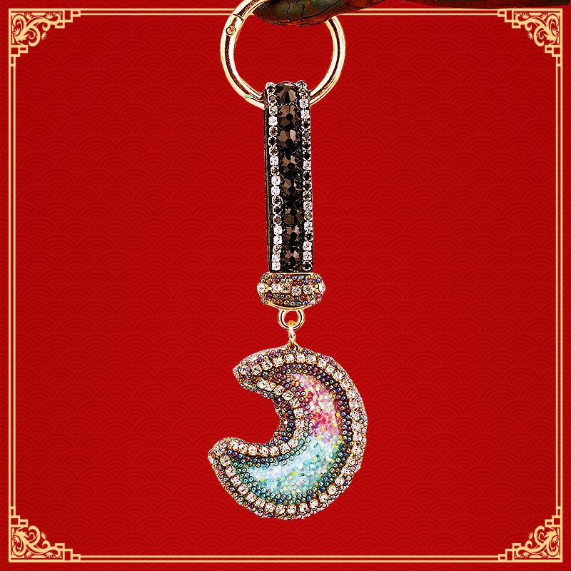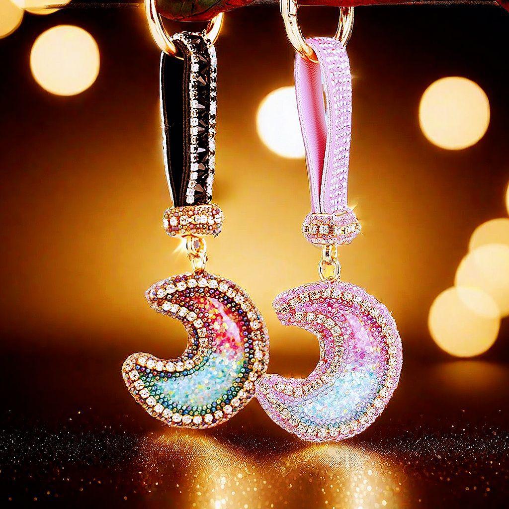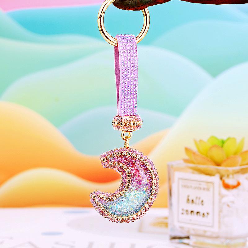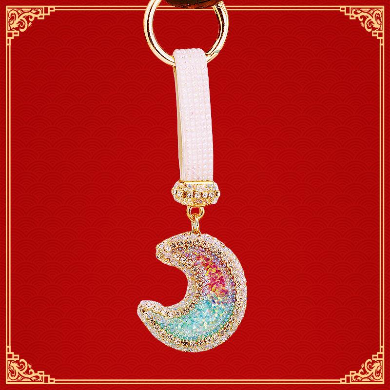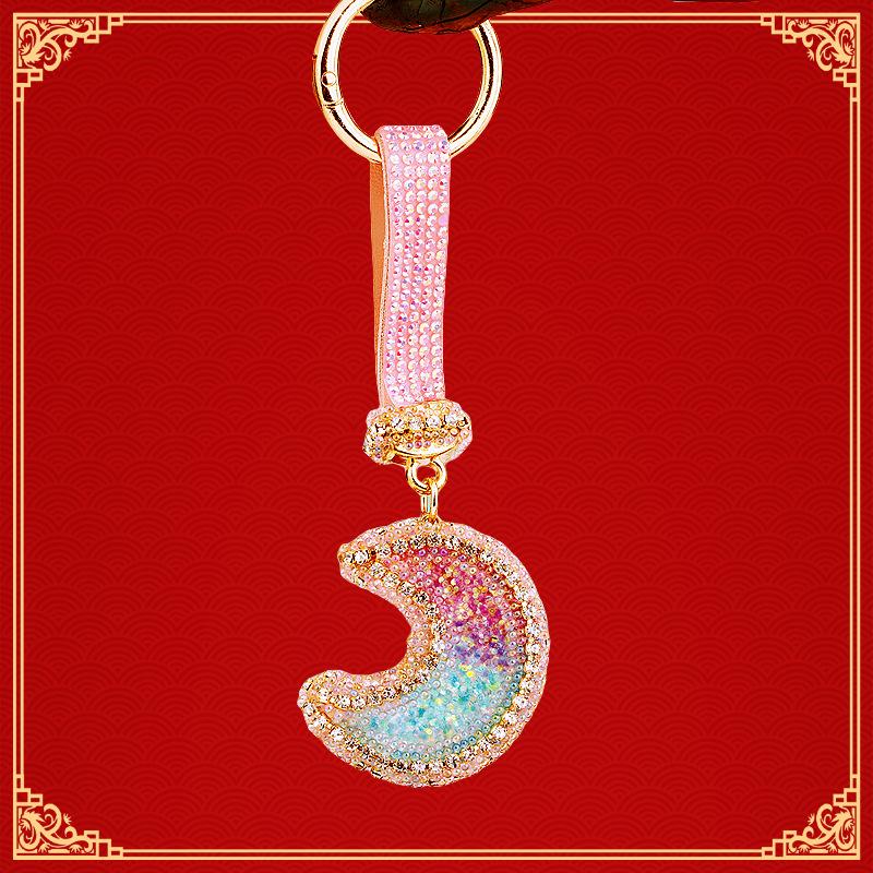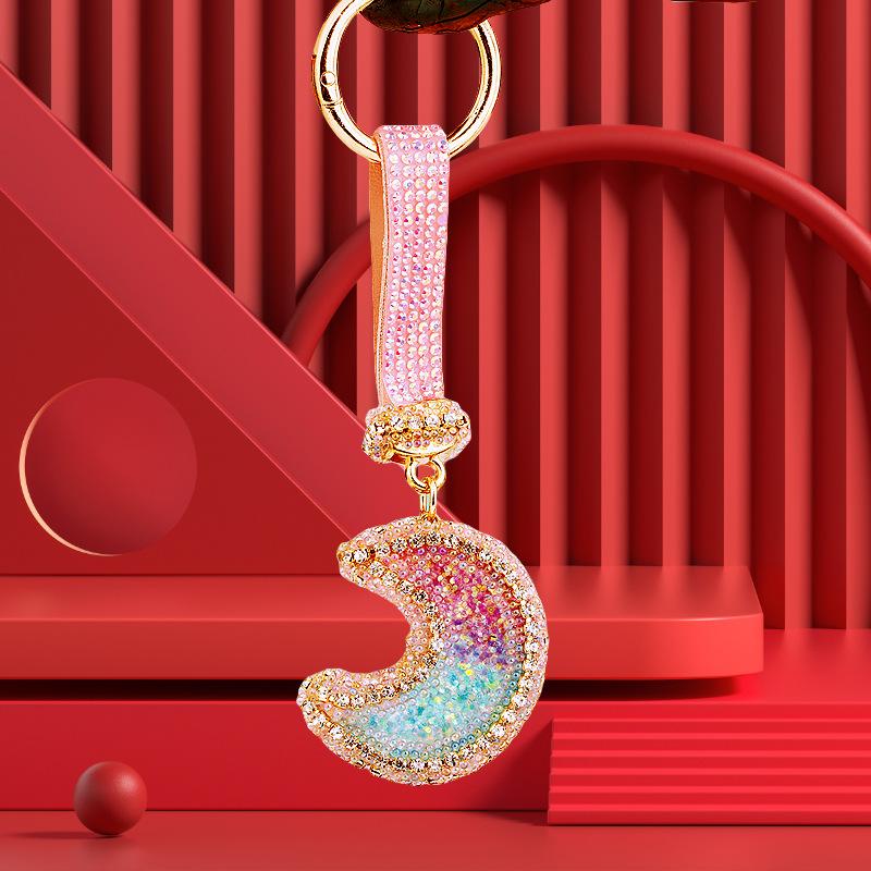 Compra Llavero de resina con forma de luna de diamante para coche, bonito colgante para bolso de mujer, llavero de moda transfronteriza, regalo al por mayor en Joom.pro