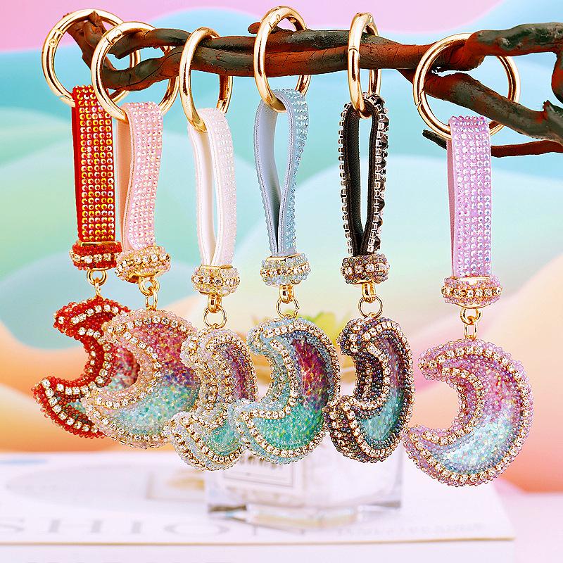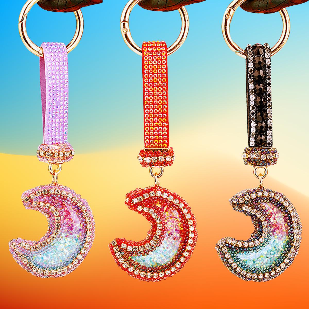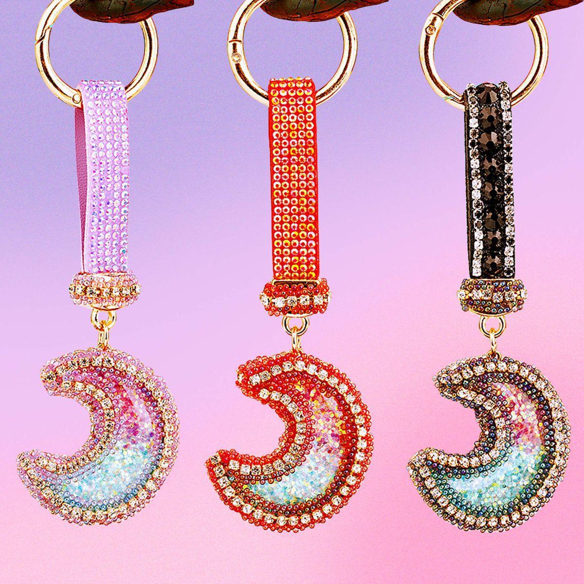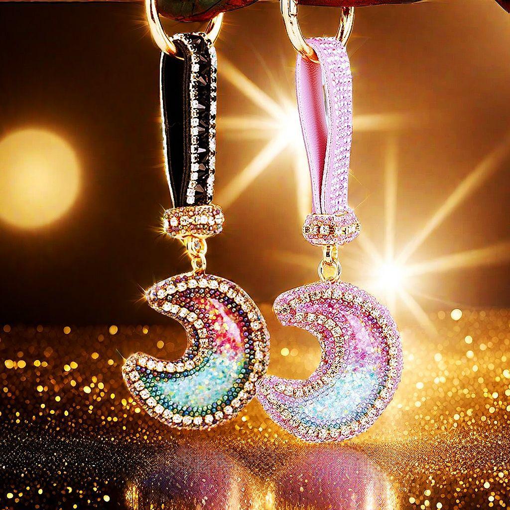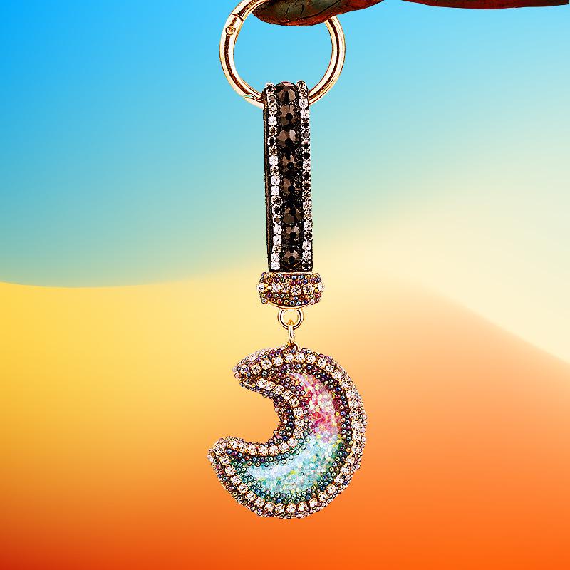 Compra Llavero de resina con forma de luna de diamante para coche, bonito colgante para bolso de mujer, llavero de moda transfronteriza, regalo al por mayor en Joom.pro