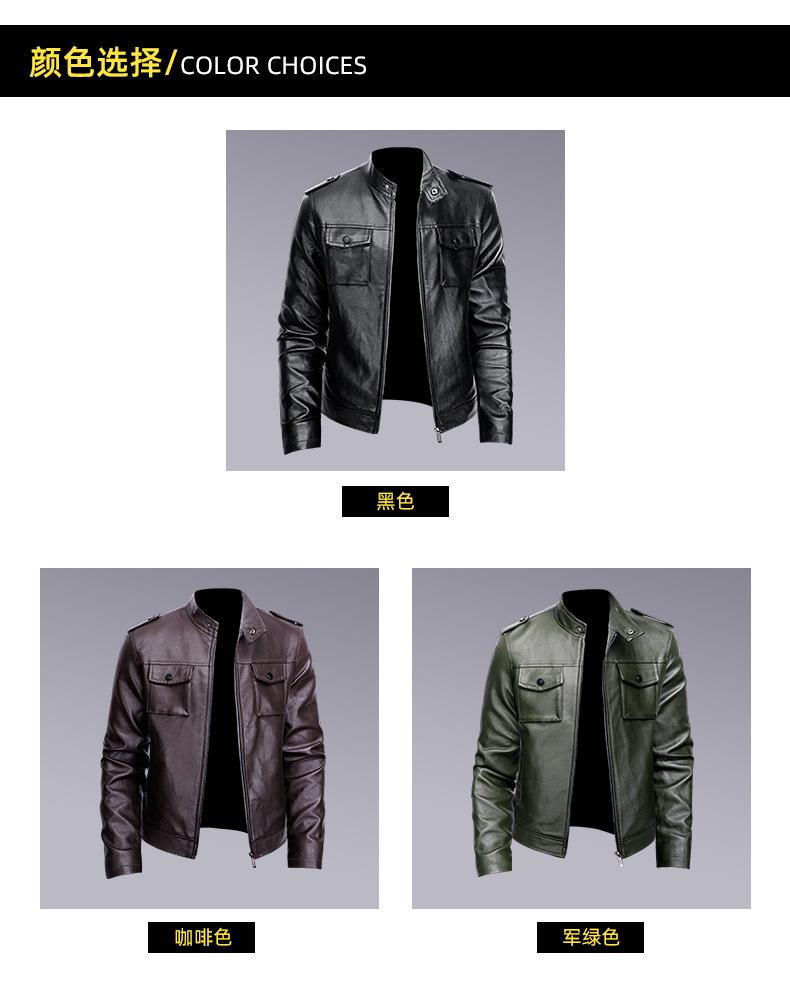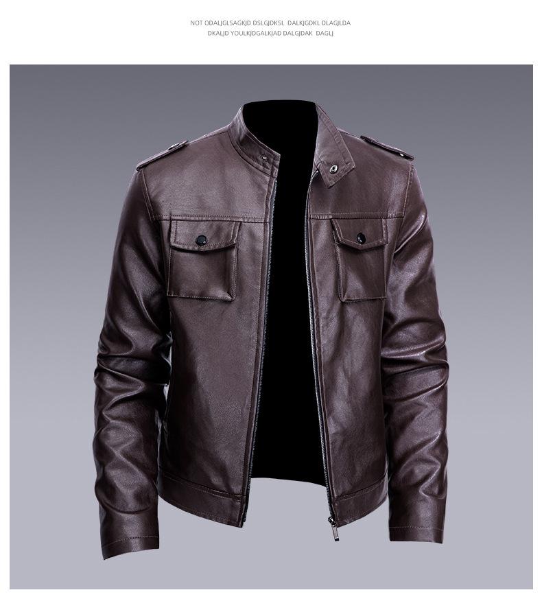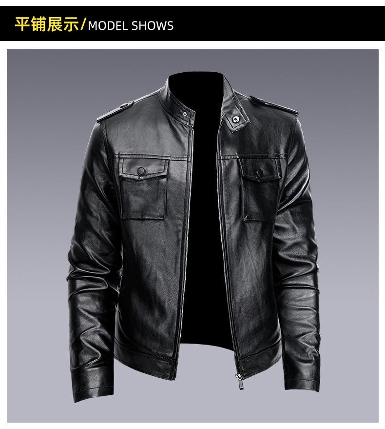 Chaqueta de cuero de motocicleta con cuello alto para hombre, nueva chaqueta de cuero PU informal de negocios para hombres europeos y americanos, otoño e invierno de 2021