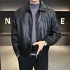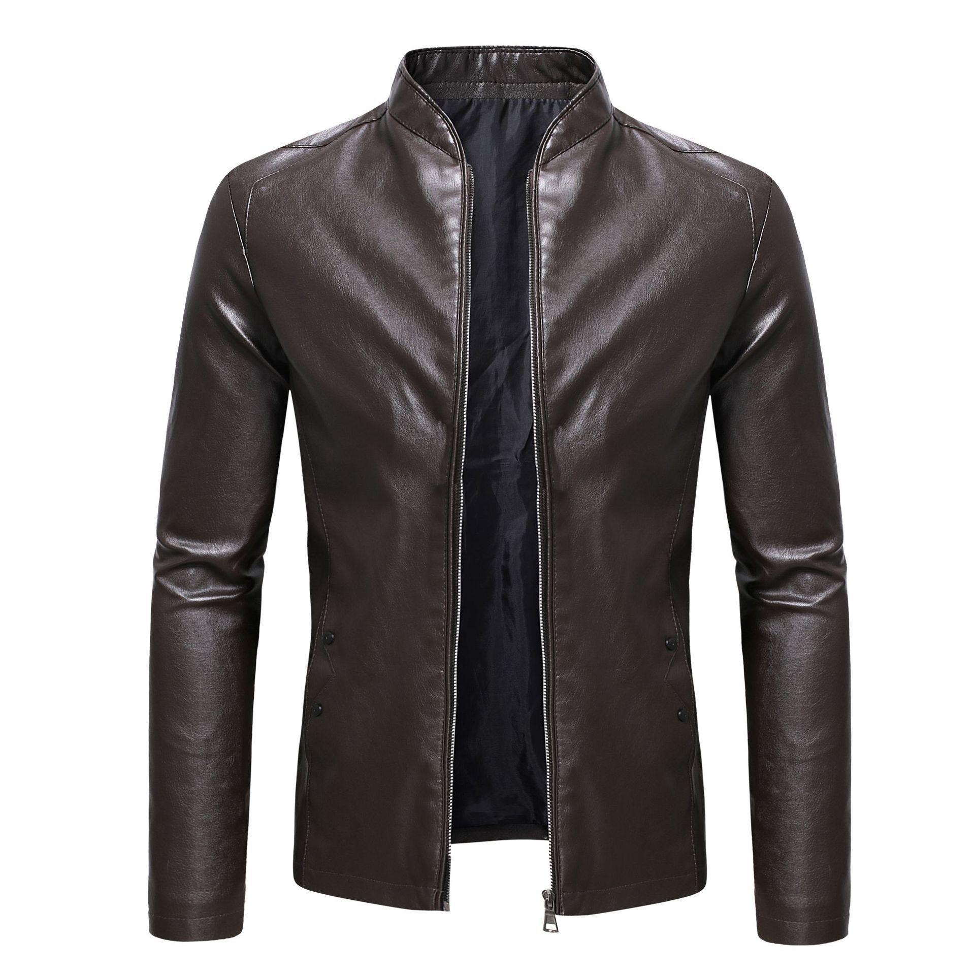 Chaqueta de cuero ajustada para hombre, nueva chaqueta de cuero de comercio exterior, estilo motociclista, juvenil, informal, de negocios, con cuello levantado, primavera de 2022
