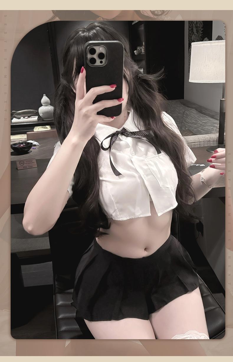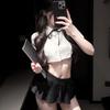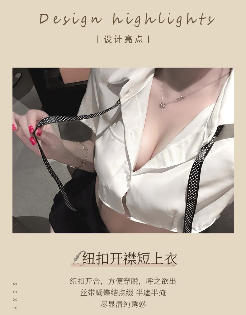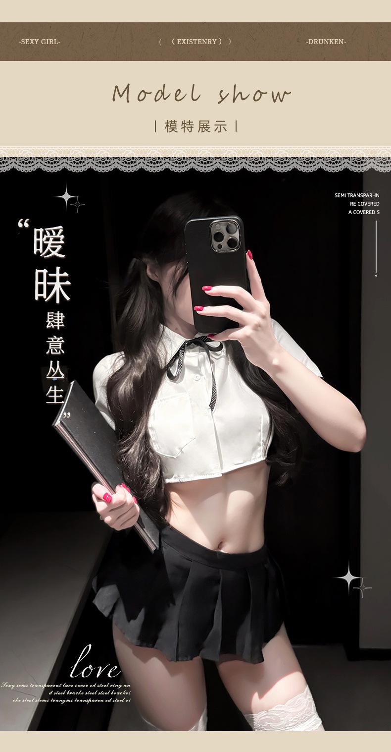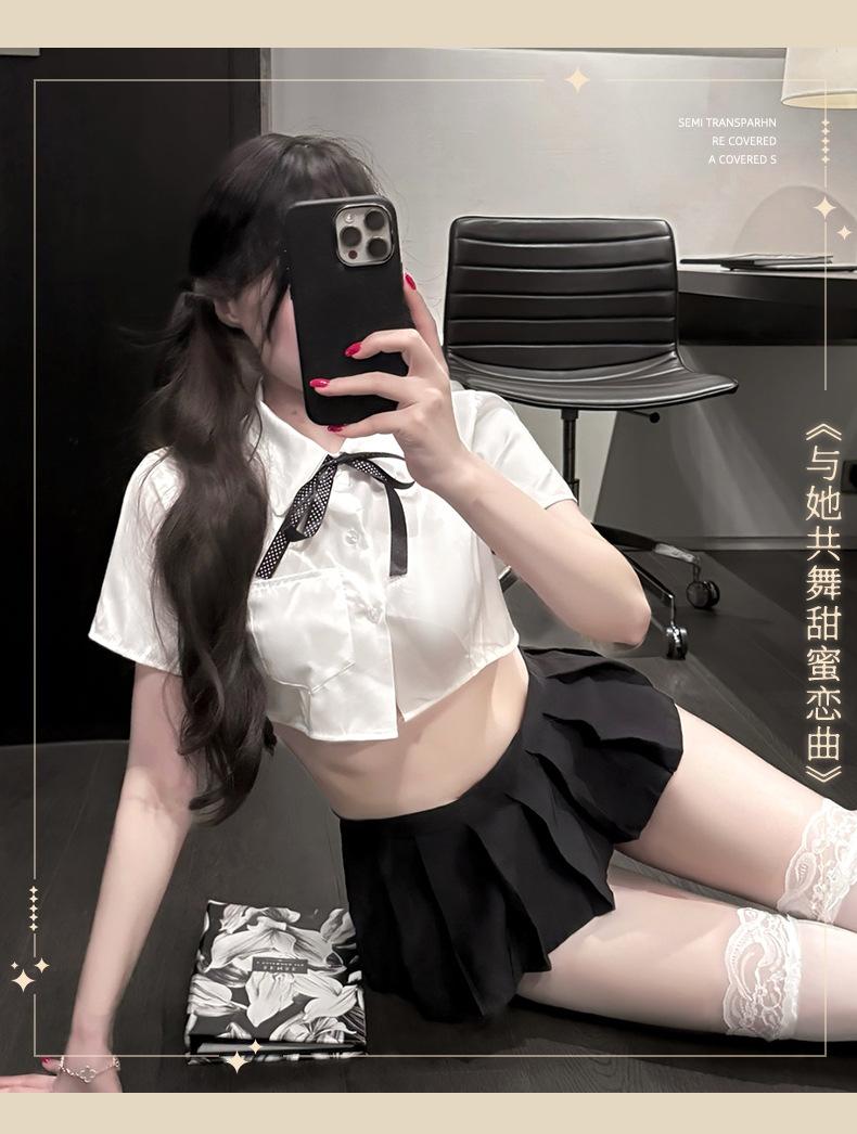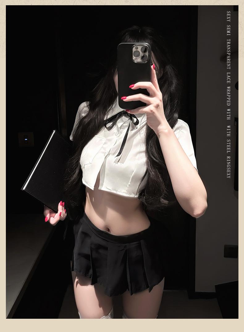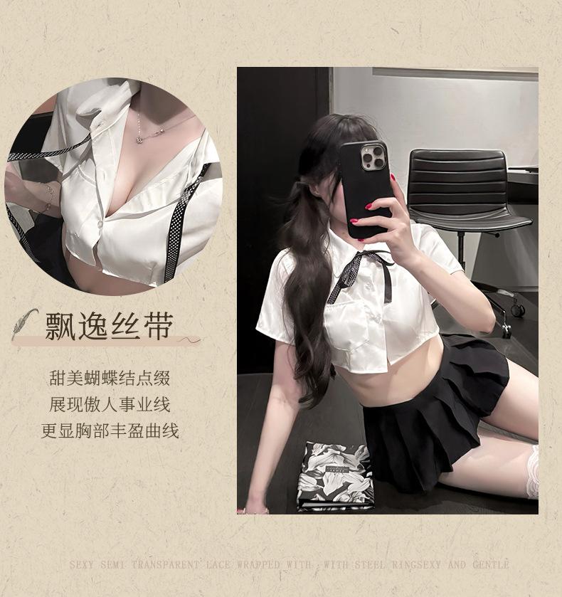 Lencería sexy secretaria sexy camisa de perspectiva corbata de moño uniforme tentación falda de cuadros británica
