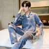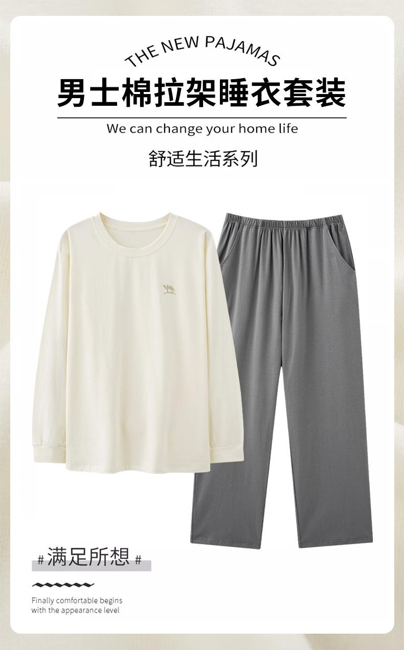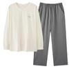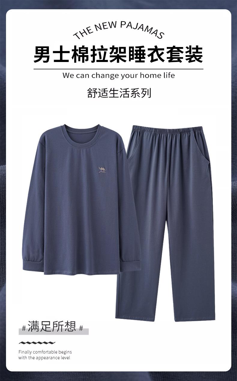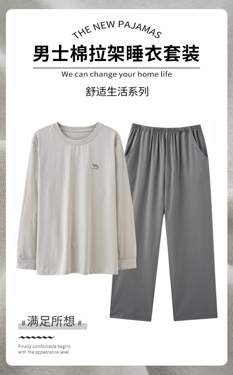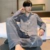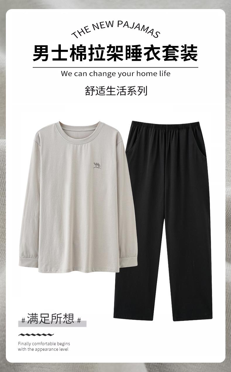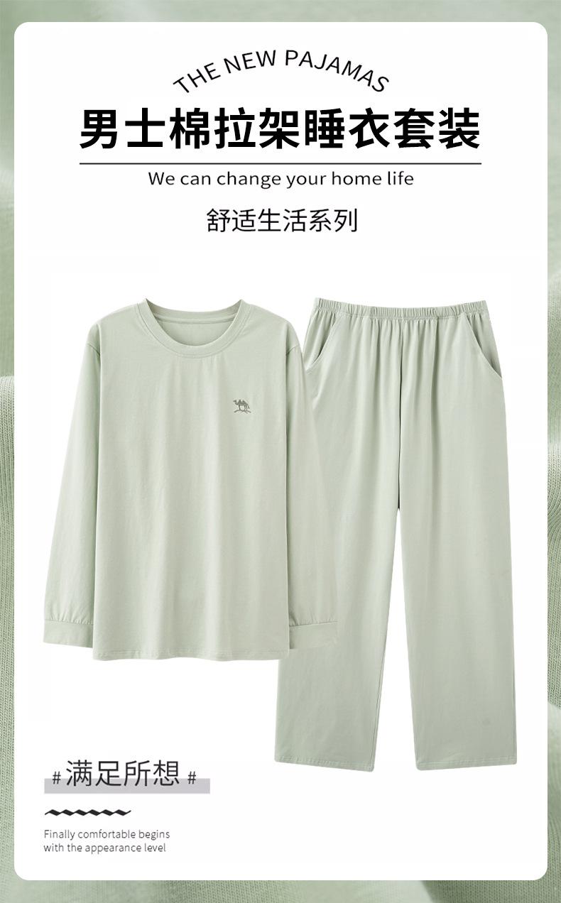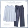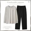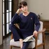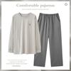 Pijama de otoño para hombre, de algodón, con pantalones de manga larga para uso exterior, sencillo, informal, cómodo, para el hogar, traje de color liso.