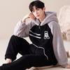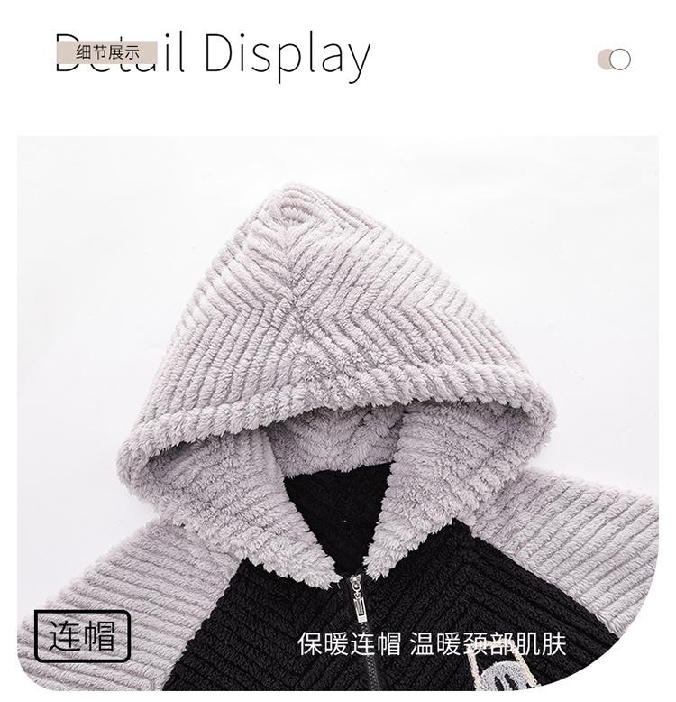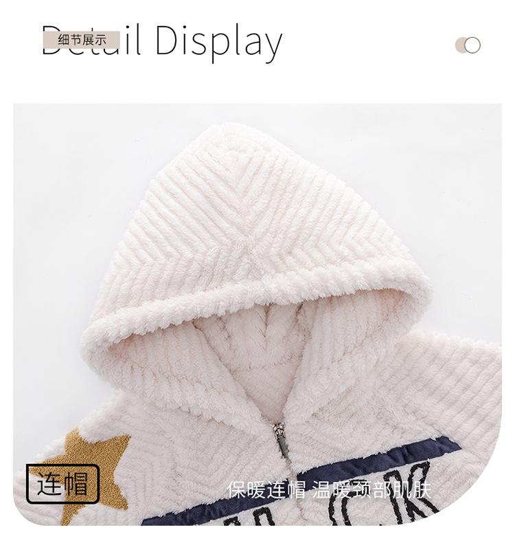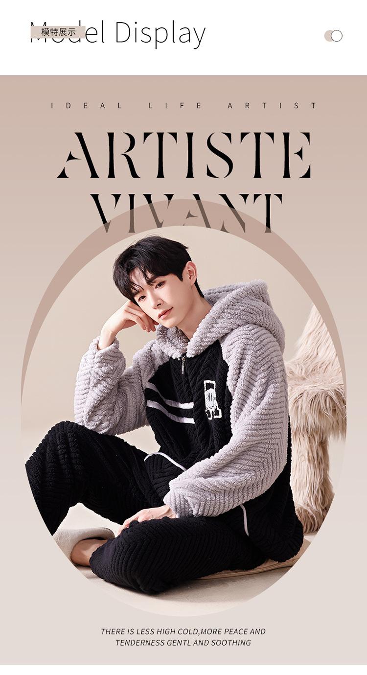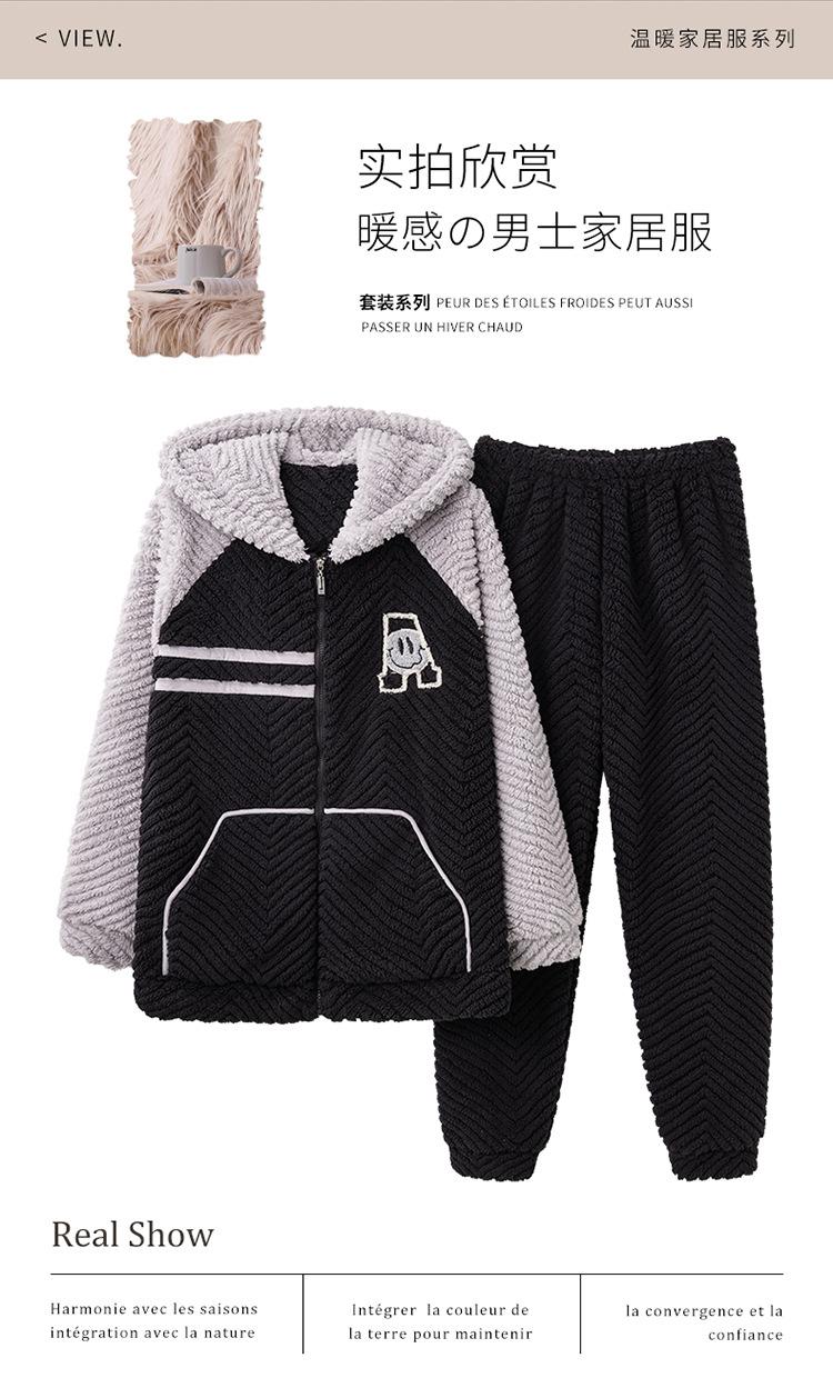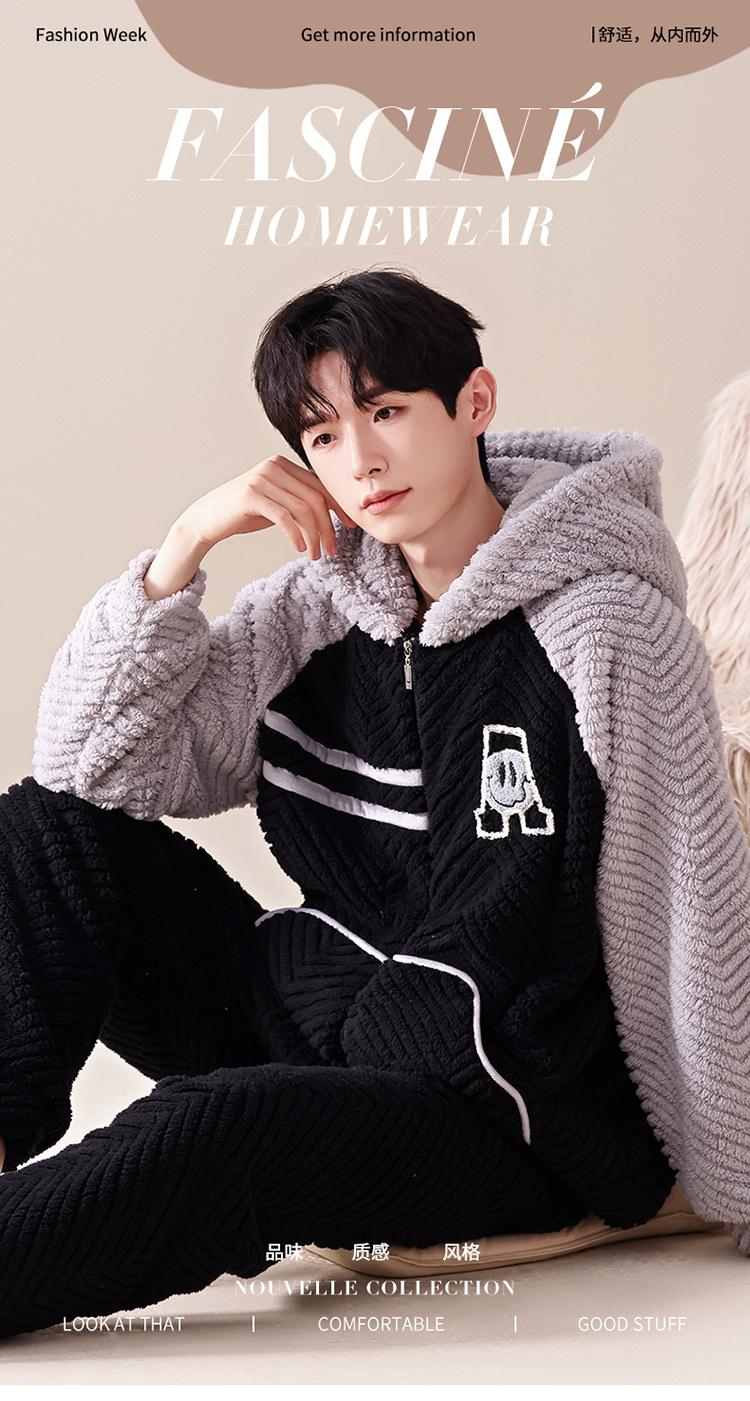 Pijama cálido de franela con forro polar para hombre, ropa de invierno con capucha y cremallera, forro polar coral grueso para el hogar.